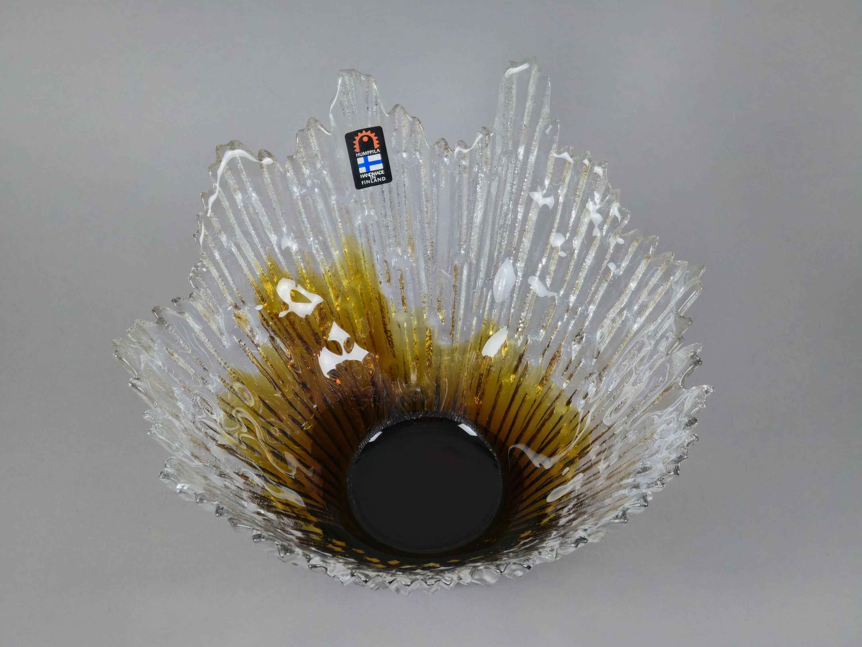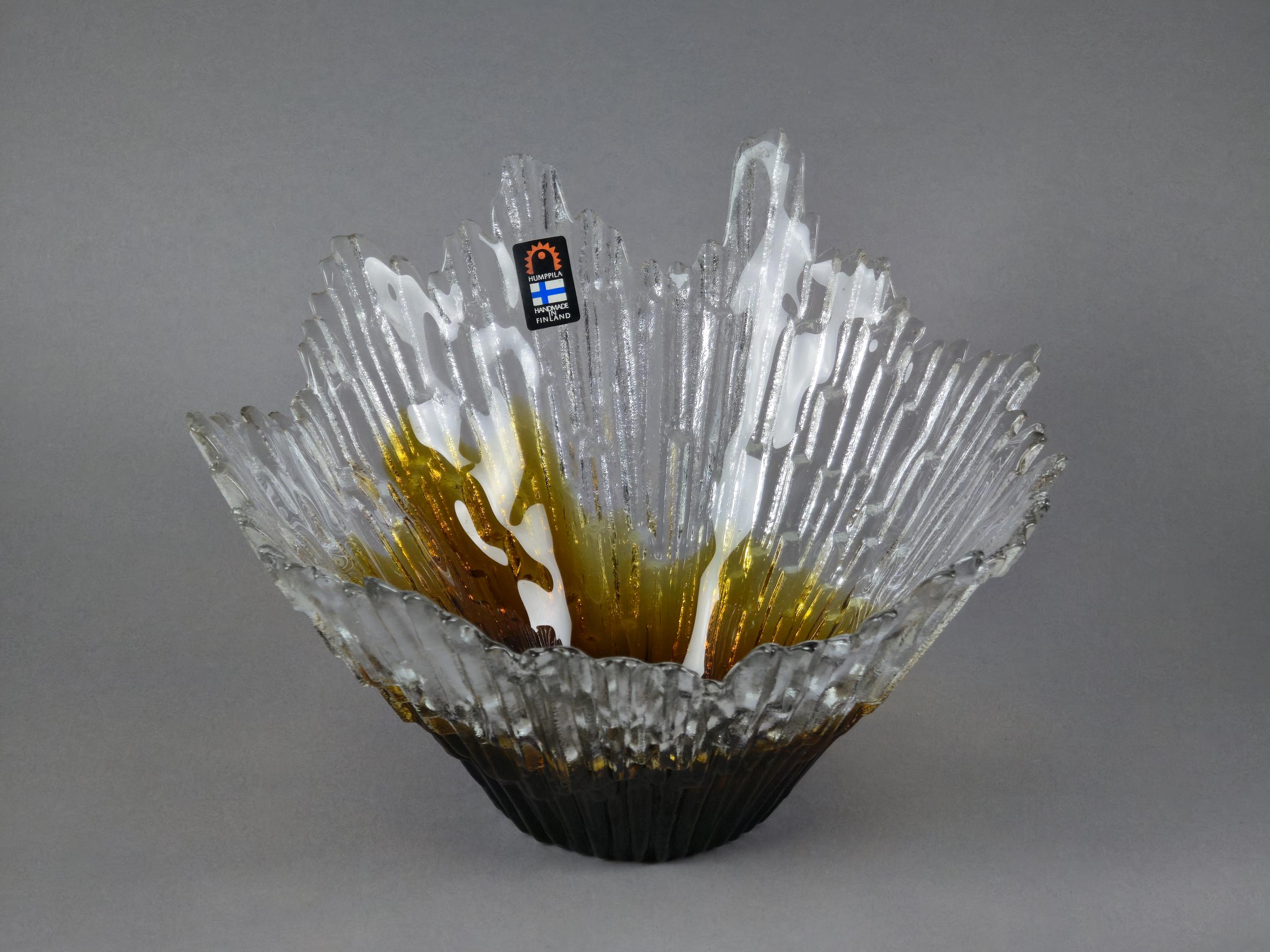 Vintage 1970s HUMPPILA LASI Revontulet "Northern Lights" Art Glass Bowl By Tauno Wirkkala.