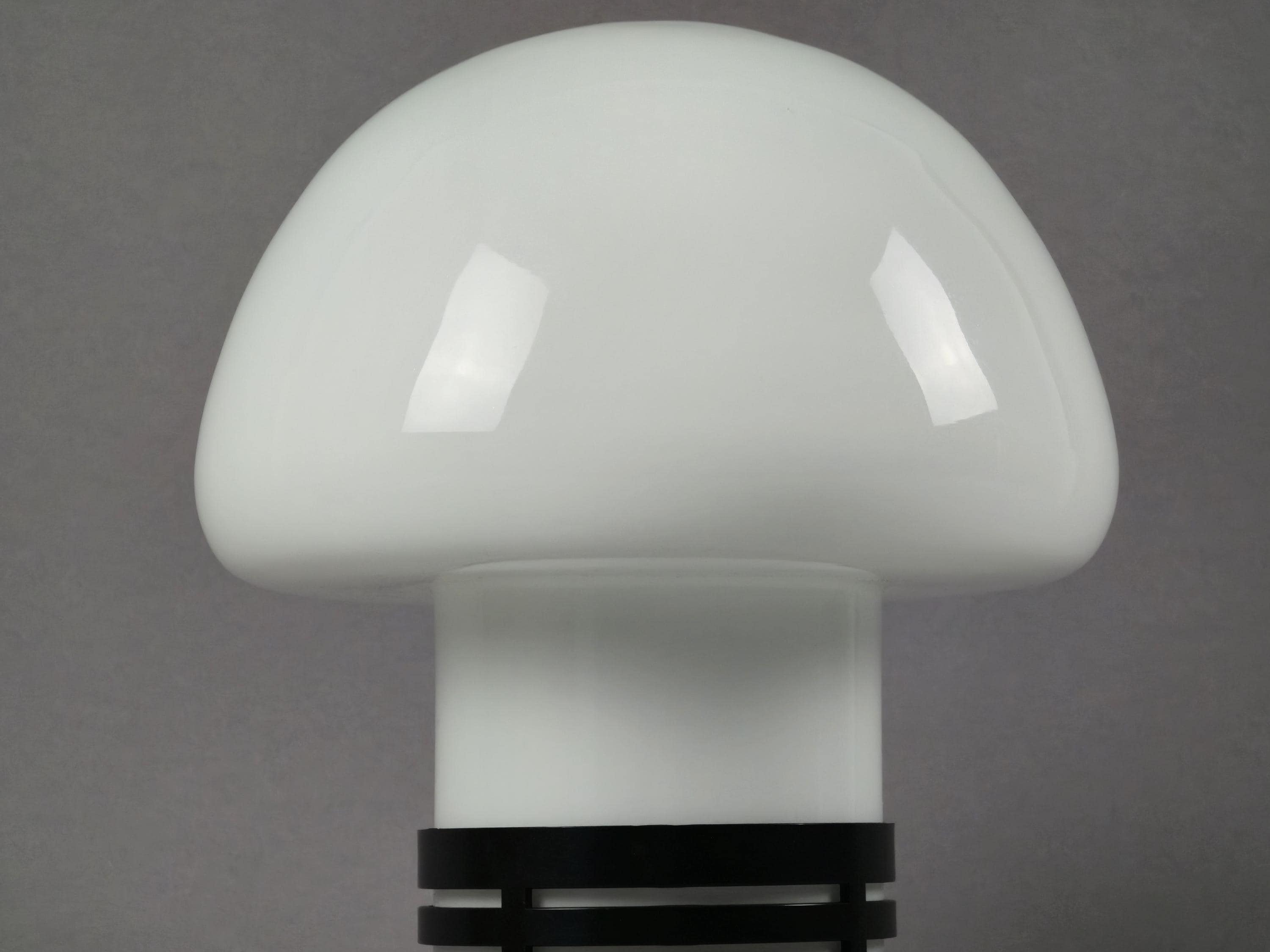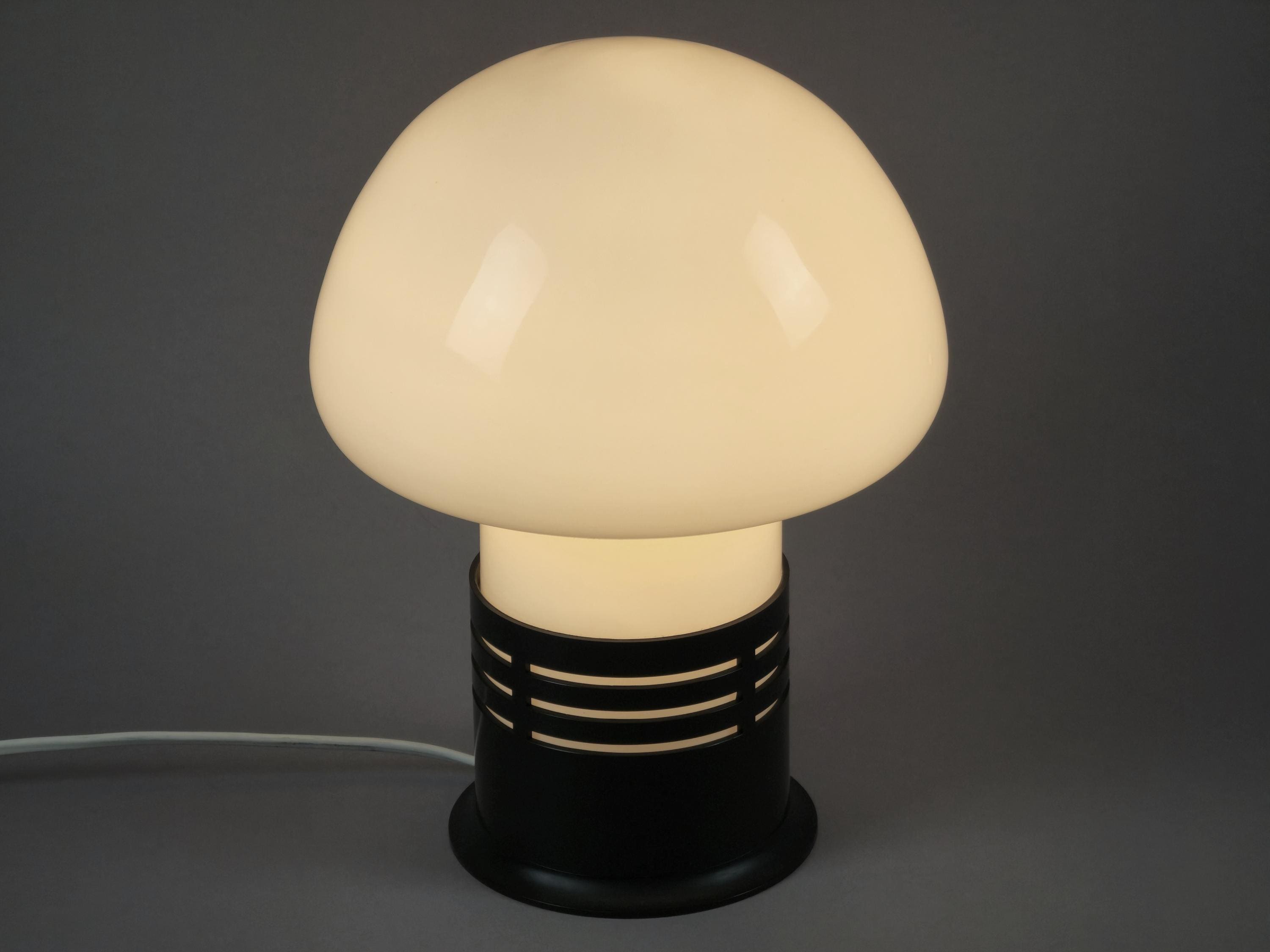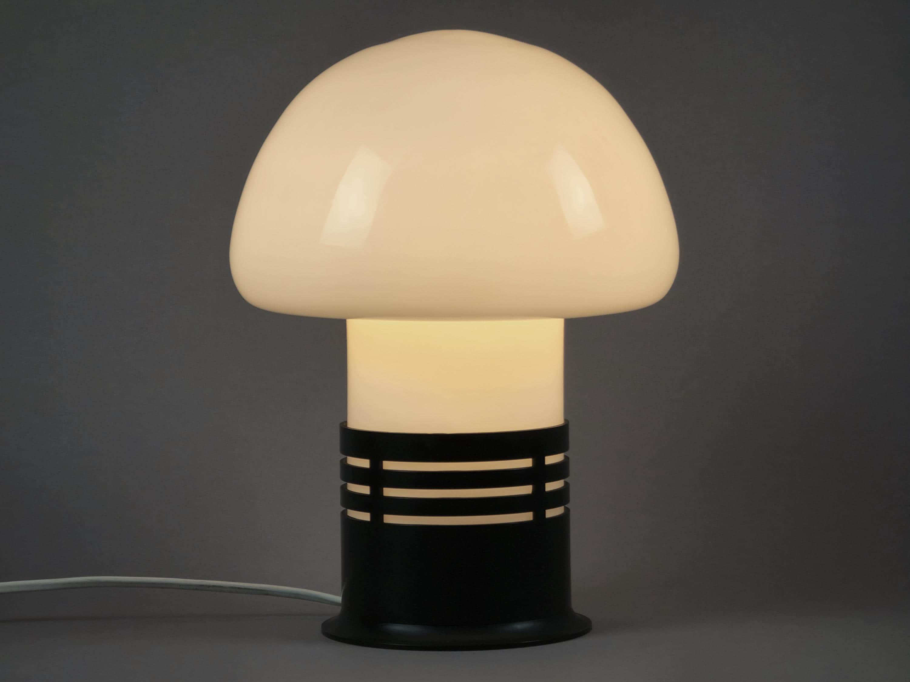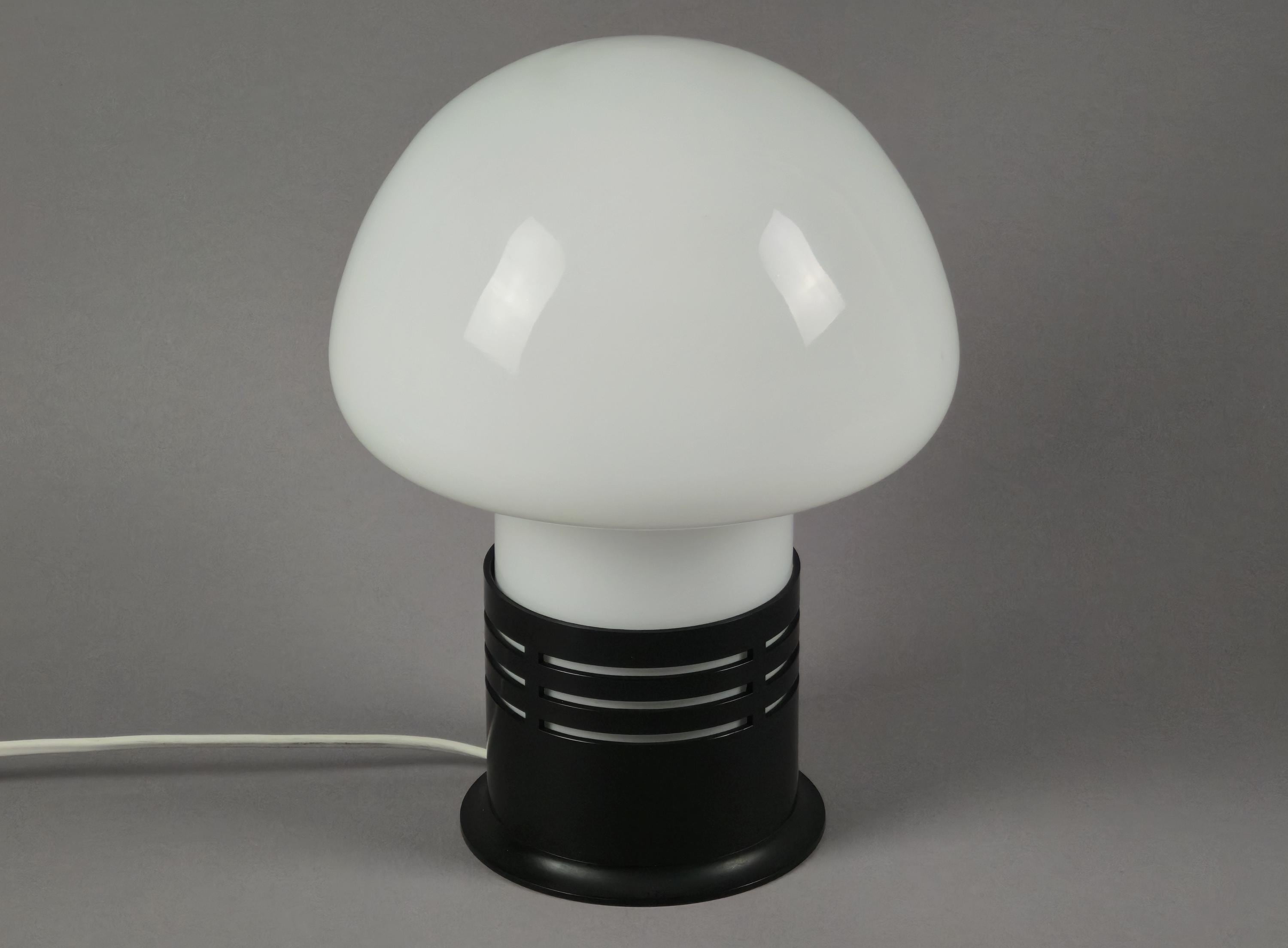 Vintage 1970s white opaline glass mushroom table lamp by Stockmann-Orno Finland. It comes with a dark-grey plastic foot.