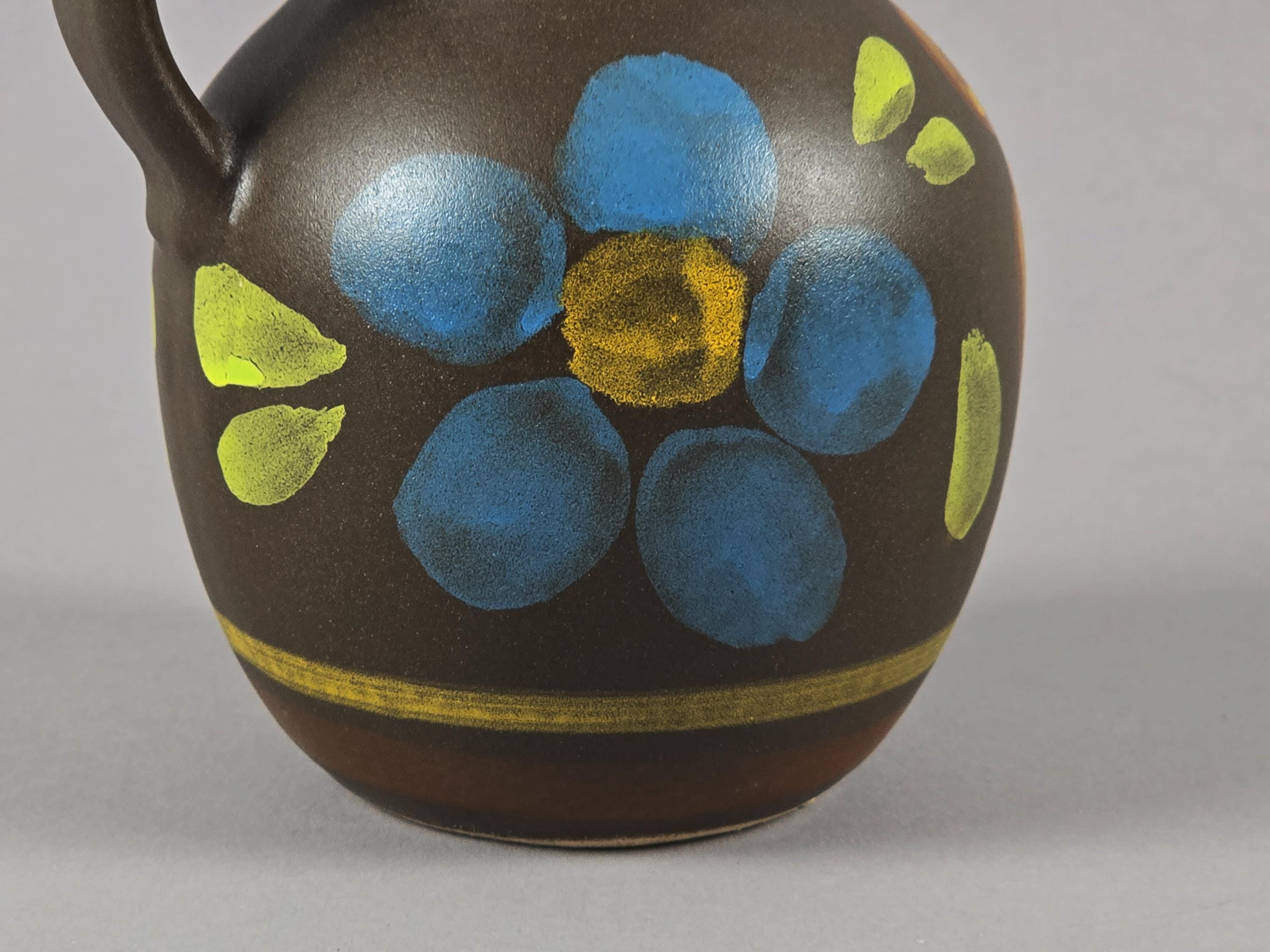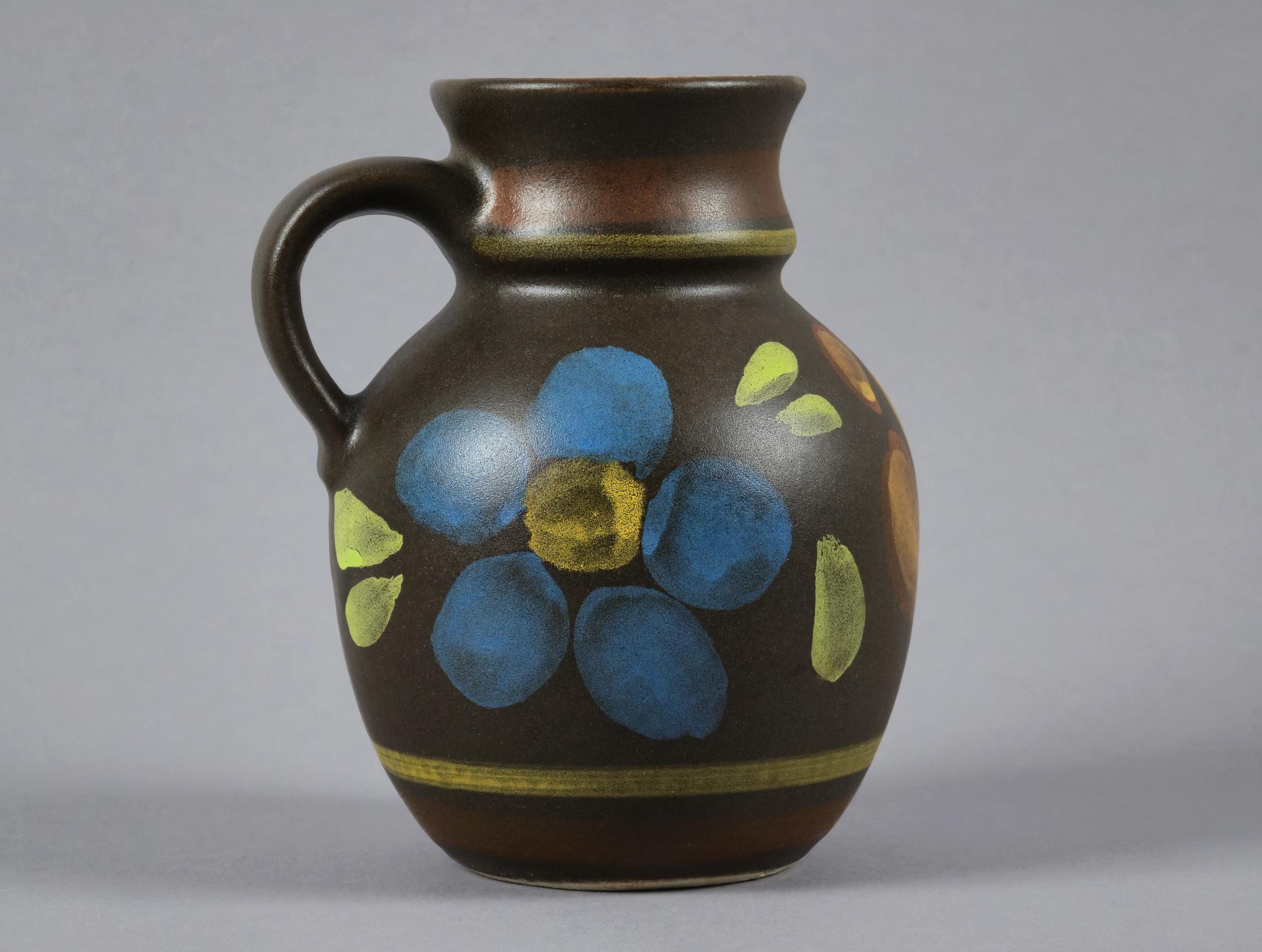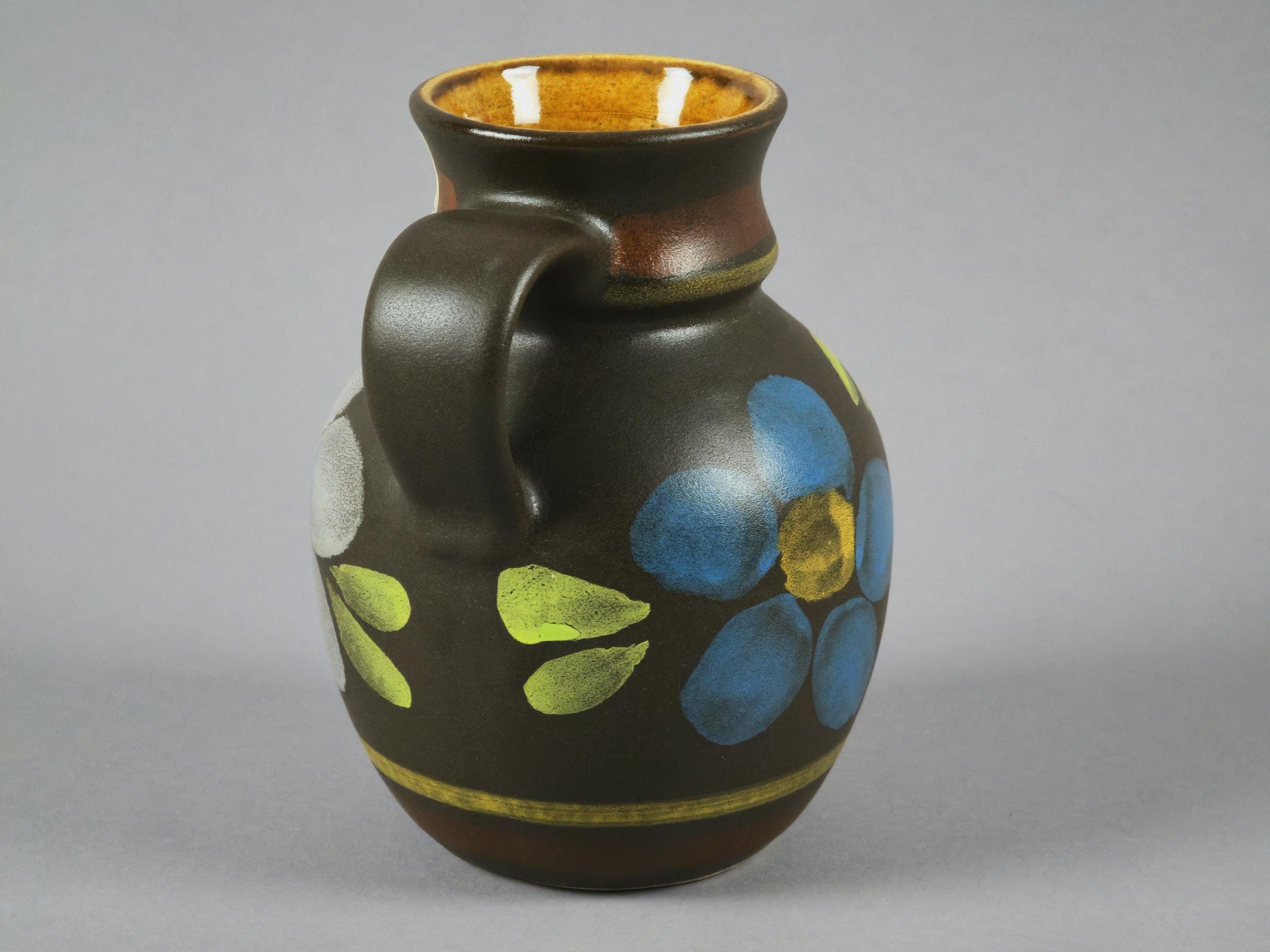 Vintage 1970s Bay Keramiek Handmade Stoneware Vase With Floral Design.