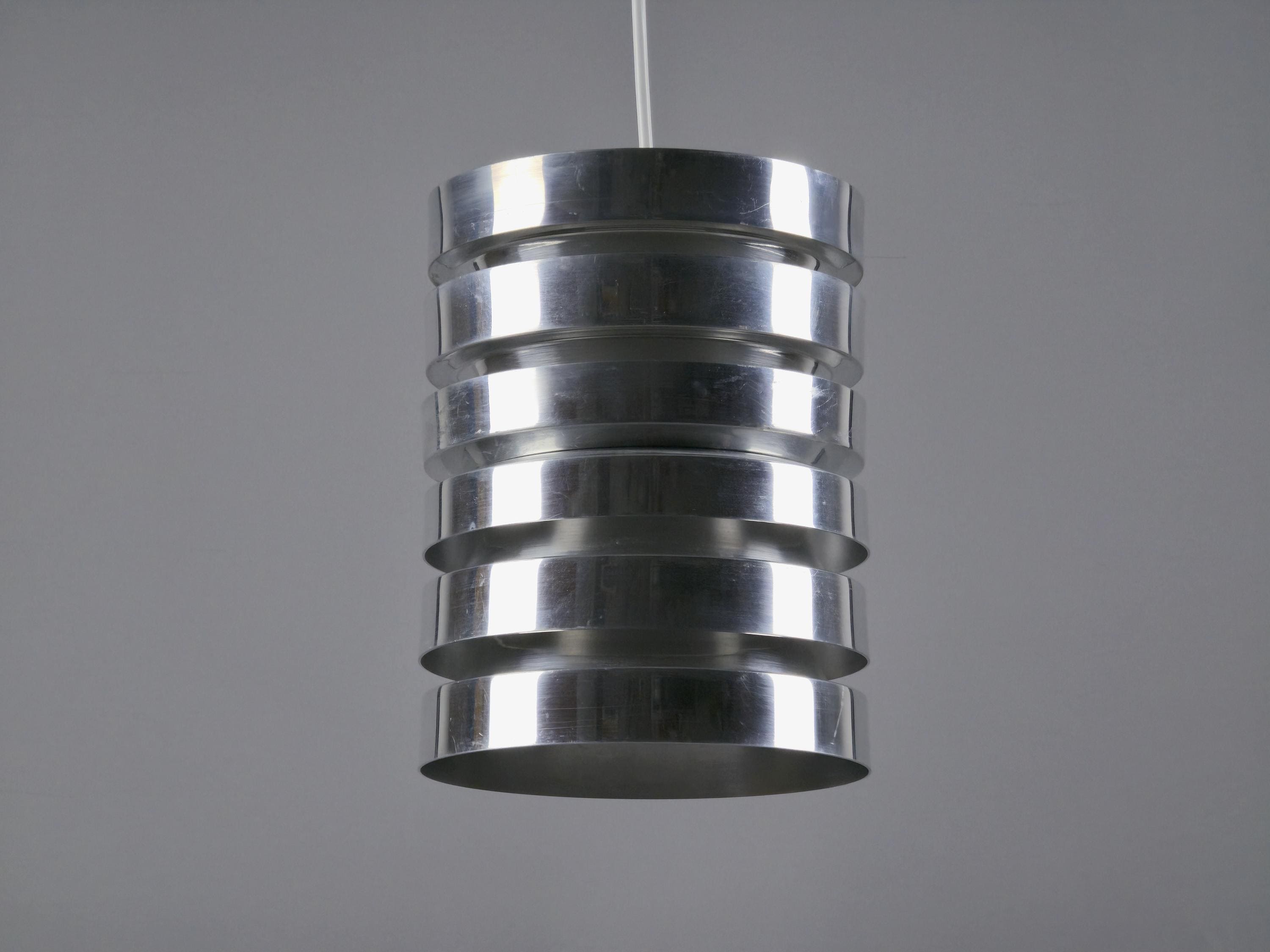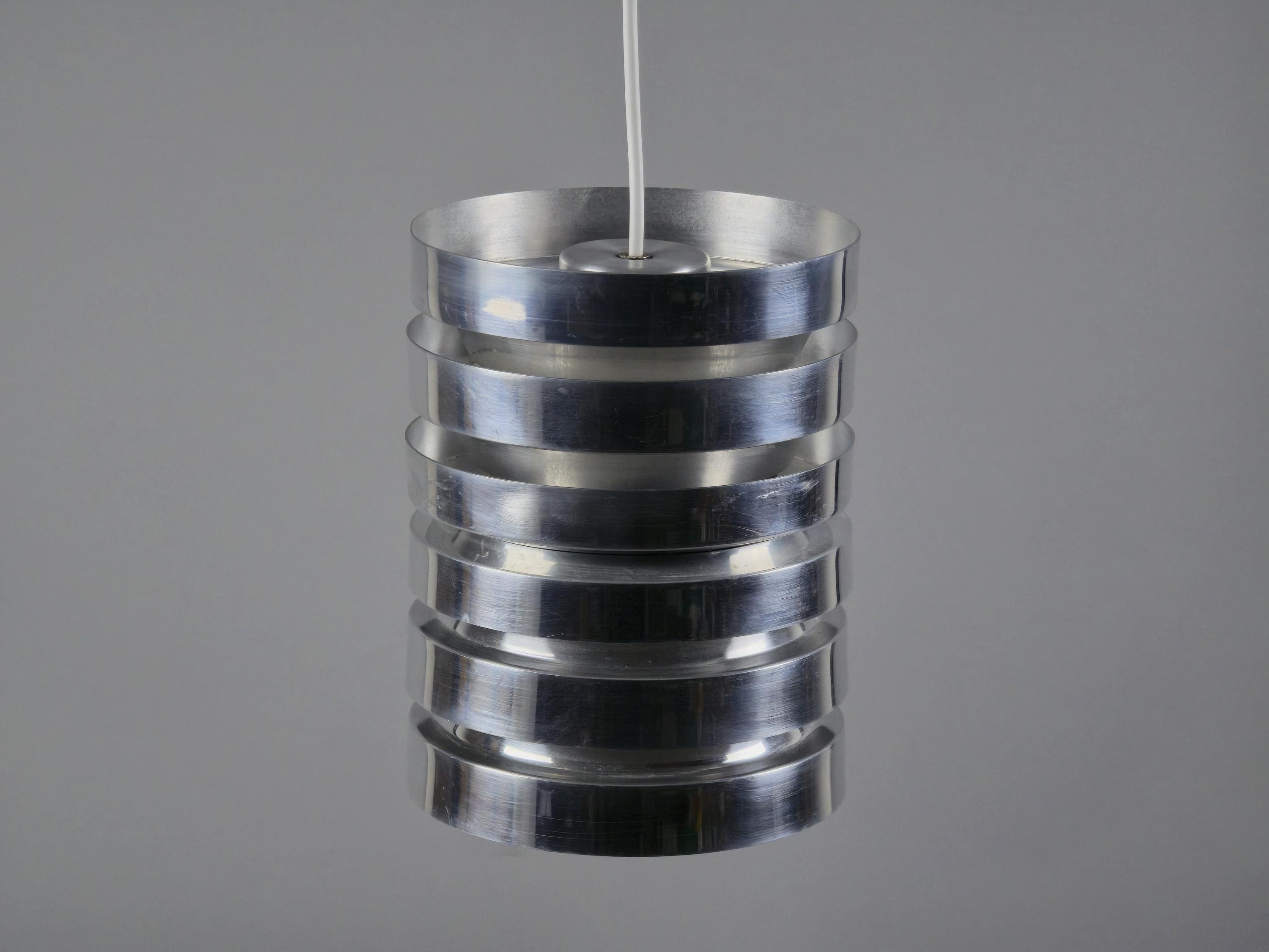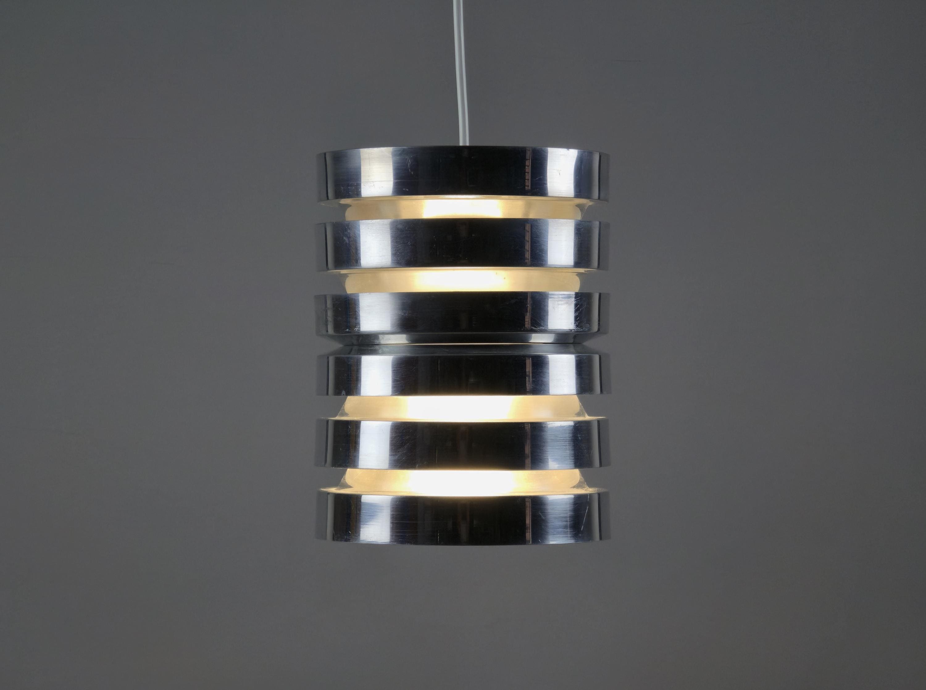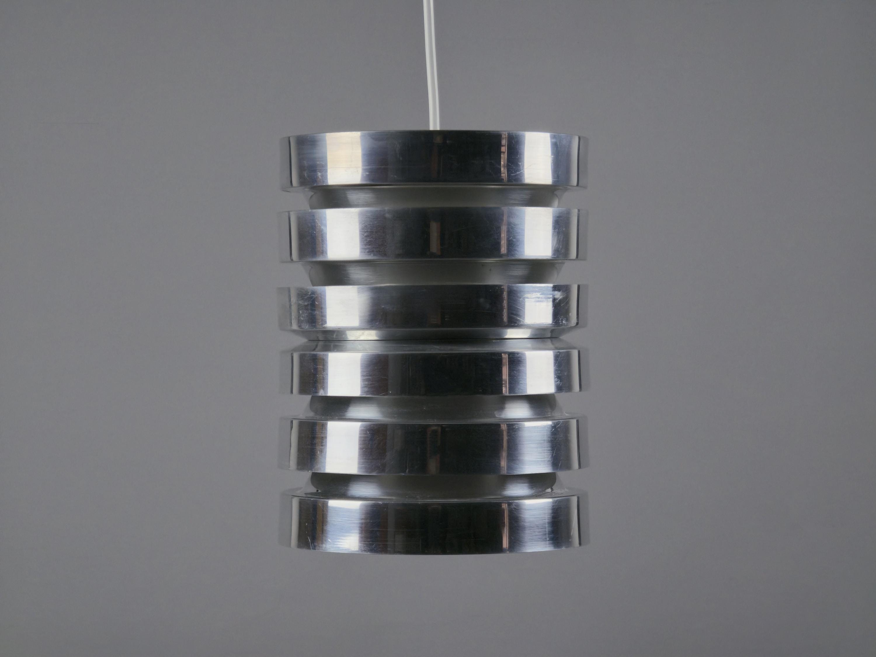 A true Nordic classic, vintage Trava pendant lamp by Carl Thore (Sigurd Lindkvist) for Granhaga Metallindustri, Sweden. Thore’s Trava series is all about diffused light with architectural presence. The stacked, flared discs aren’t just a stylistic choice, they cleverly minimize glare and cast a soft glow, especially with the orange-reflective interiors. This lamp is a perfect blend of sculptural form and practical Scandinavian lighting philosophy.