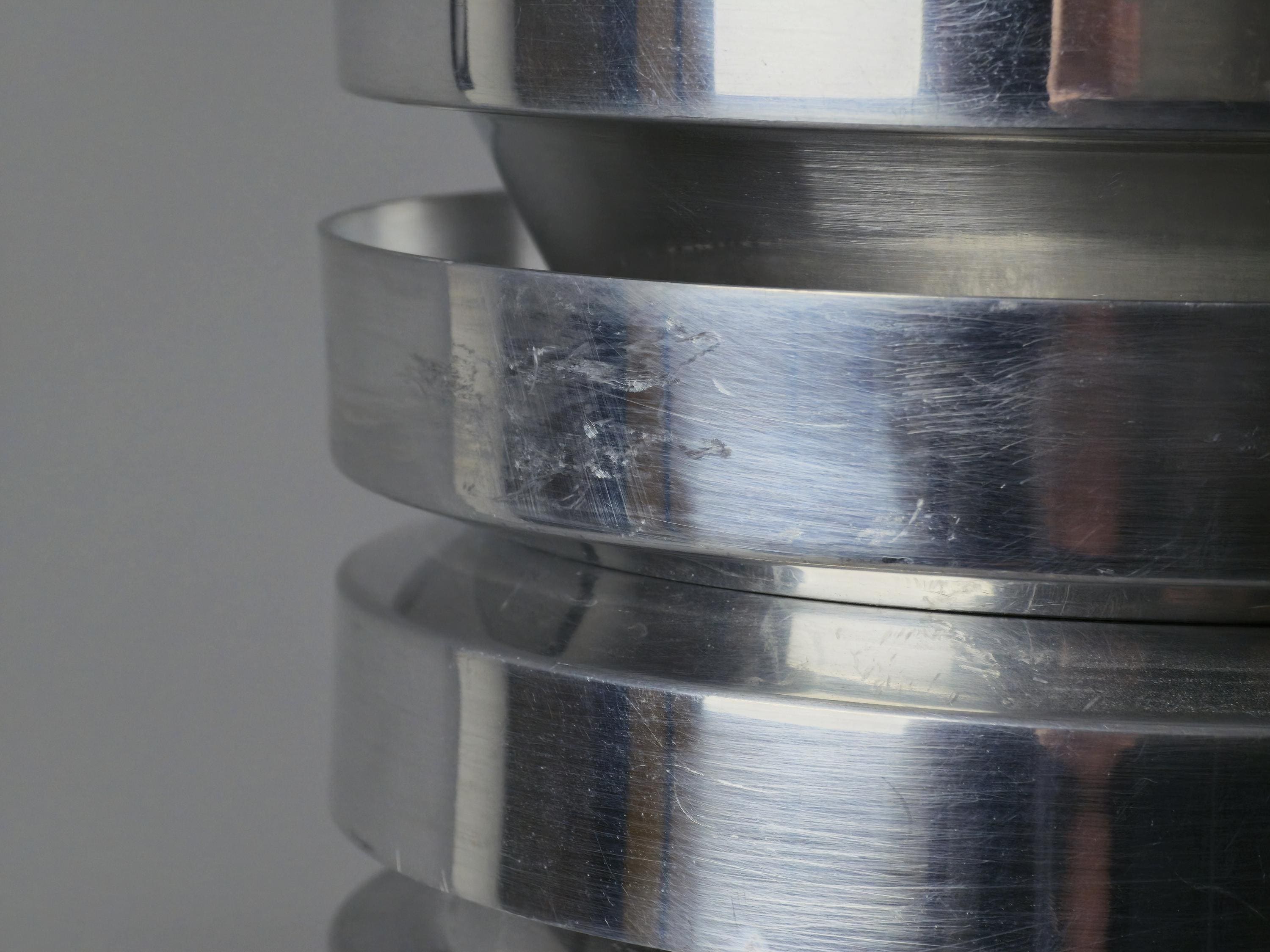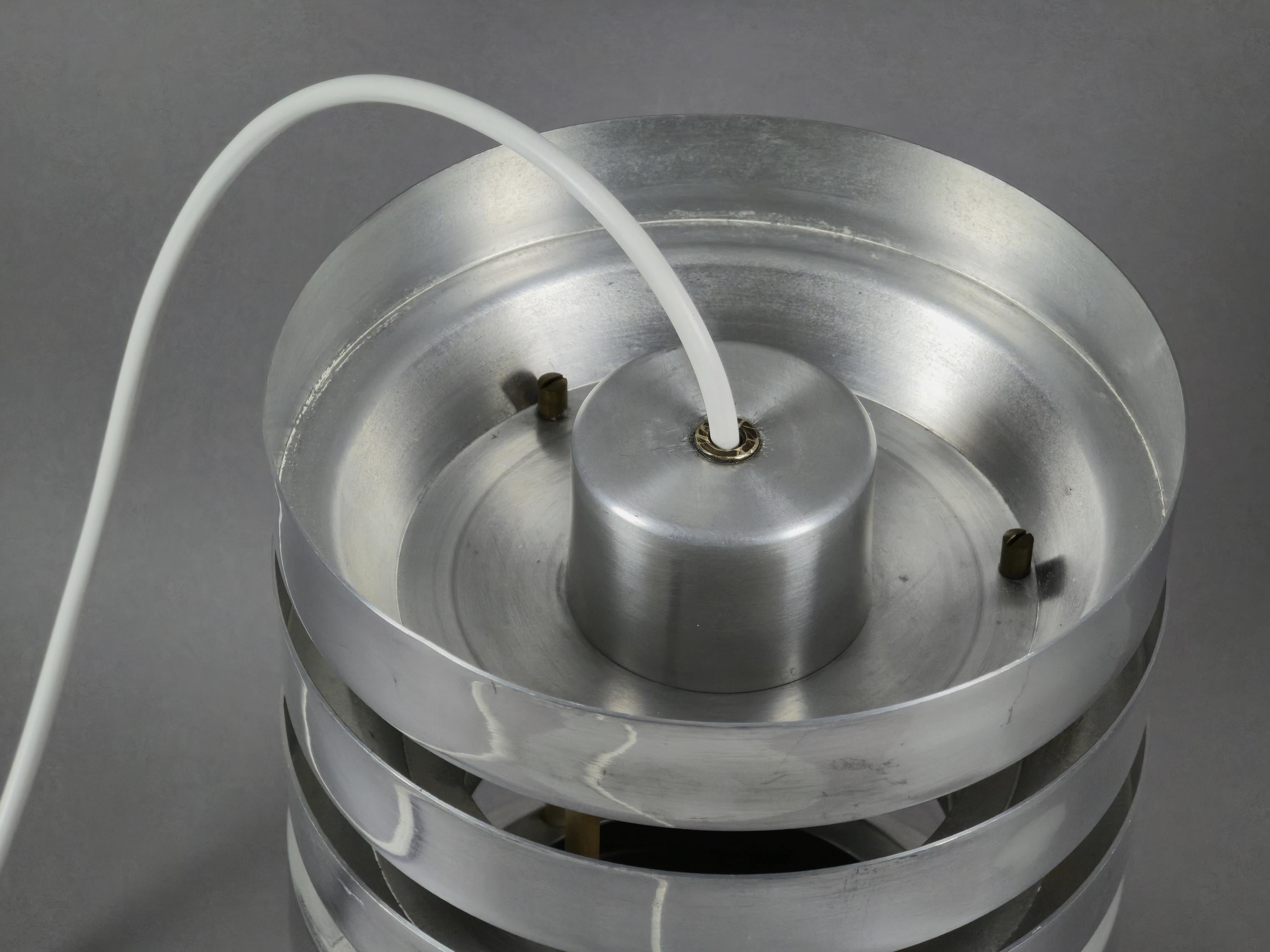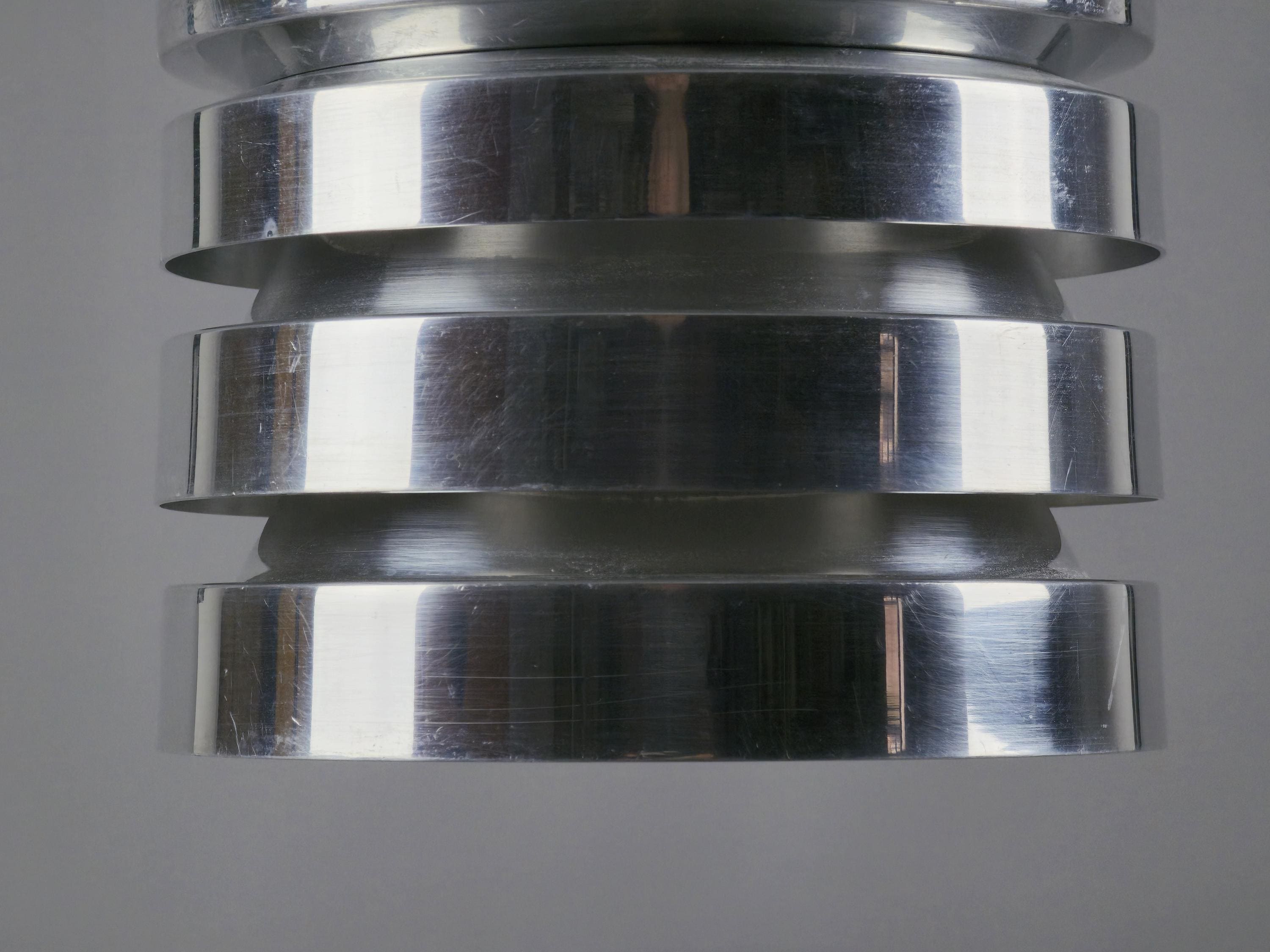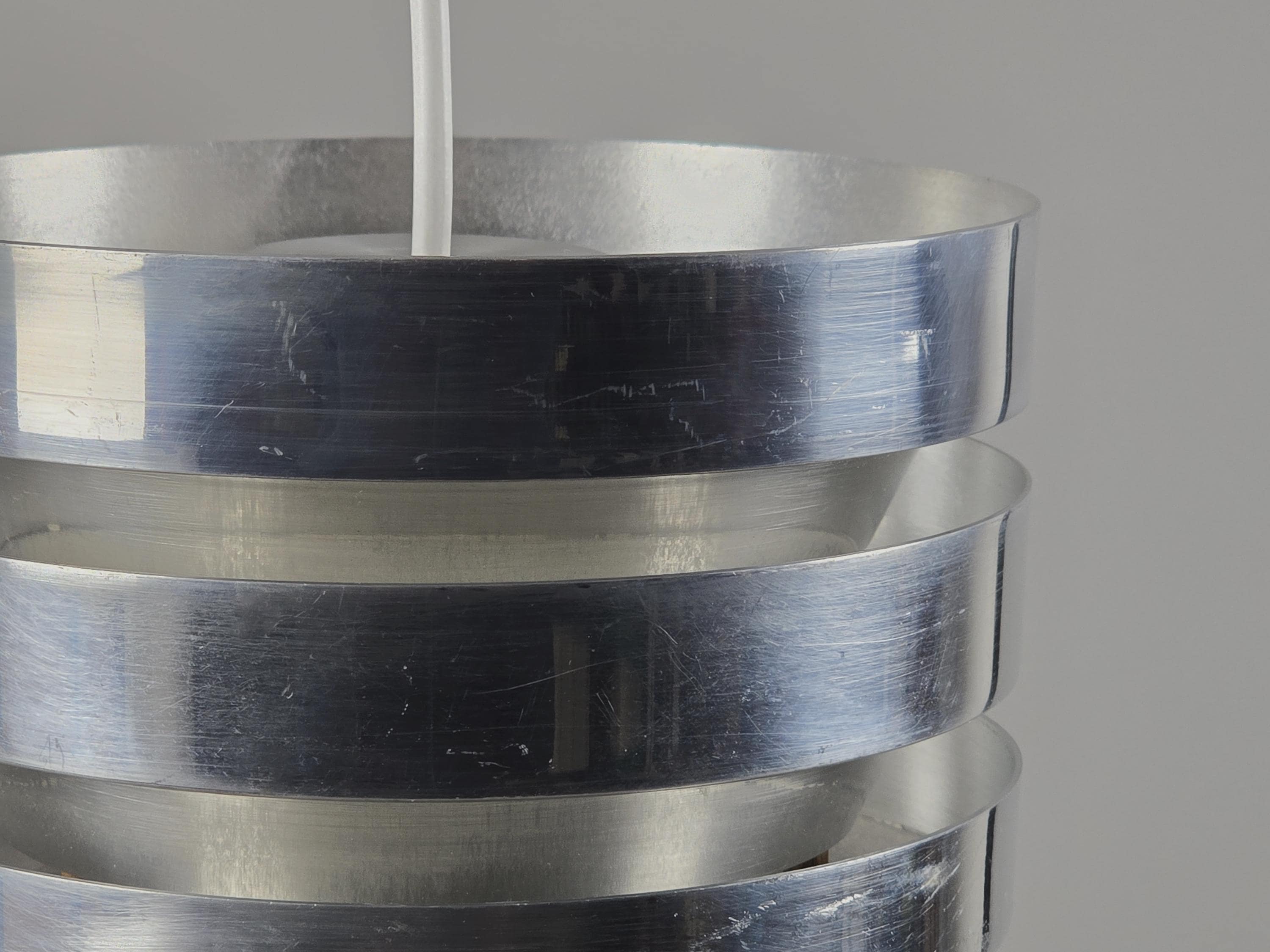 A true Nordic classic, vintage Trava pendant lamp by Carl Thore (Sigurd Lindkvist) for Granhaga Metallindustri, Sweden. Thore’s Trava series is all about diffused light with architectural presence. The stacked, flared discs aren’t just a stylistic choice, they cleverly minimize glare and cast a soft glow, especially with the orange-reflective interiors. This lamp is a perfect blend of sculptural form and practical Scandinavian lighting philosophy.