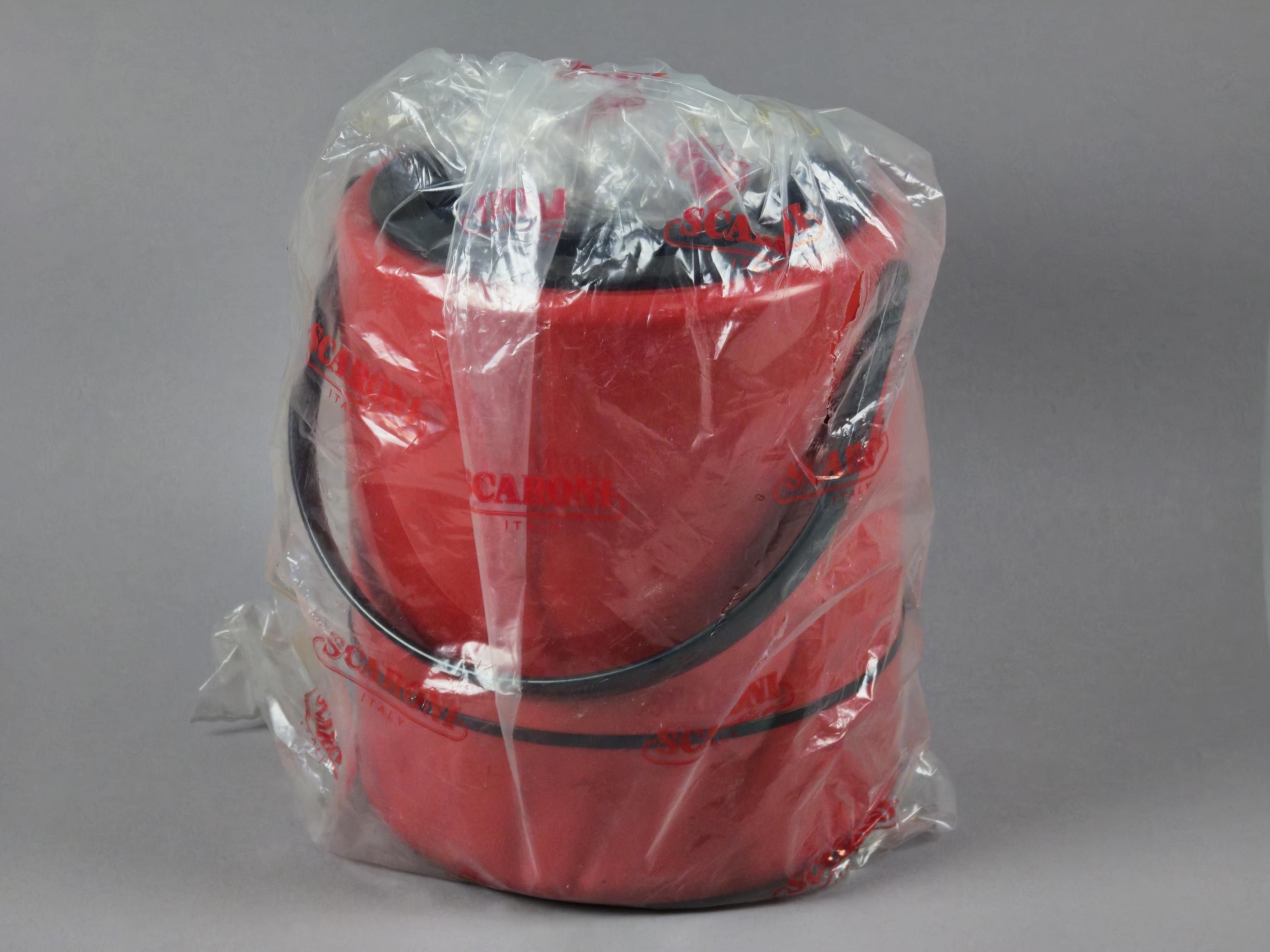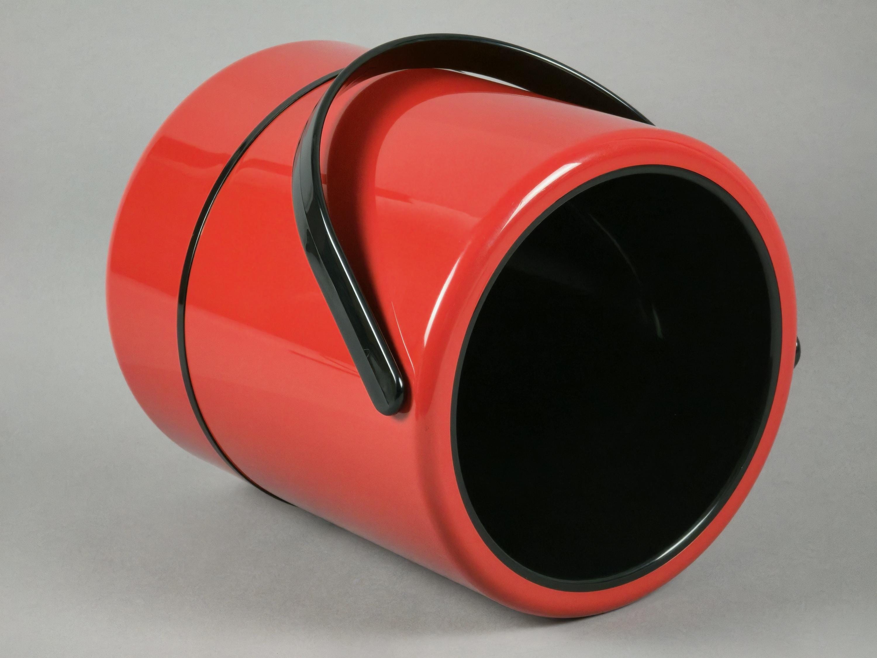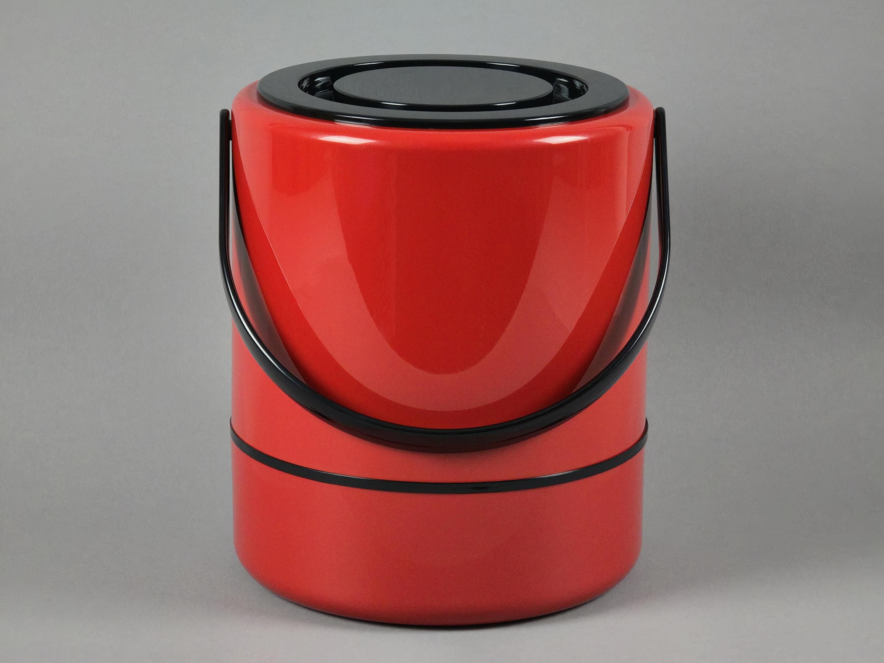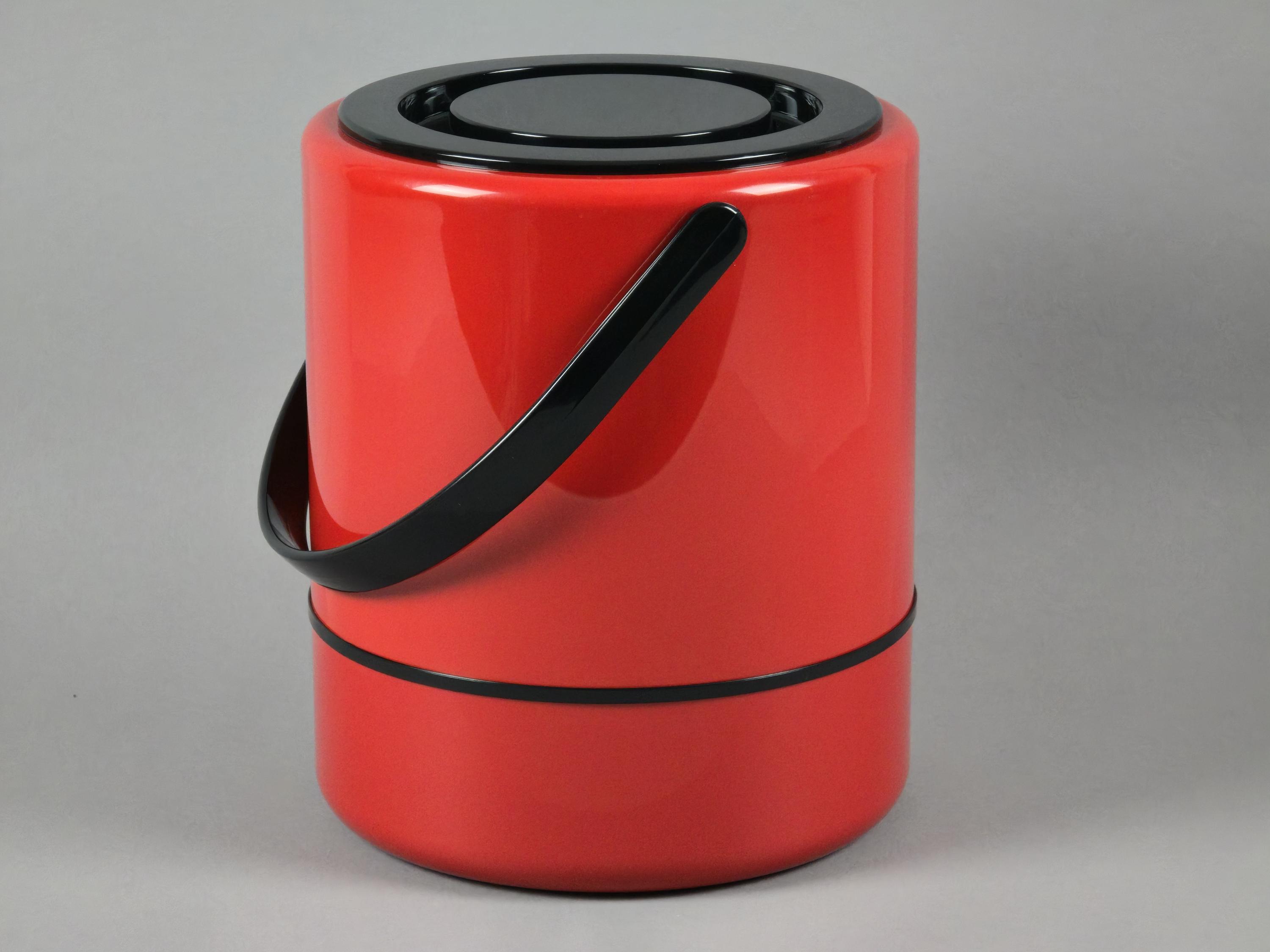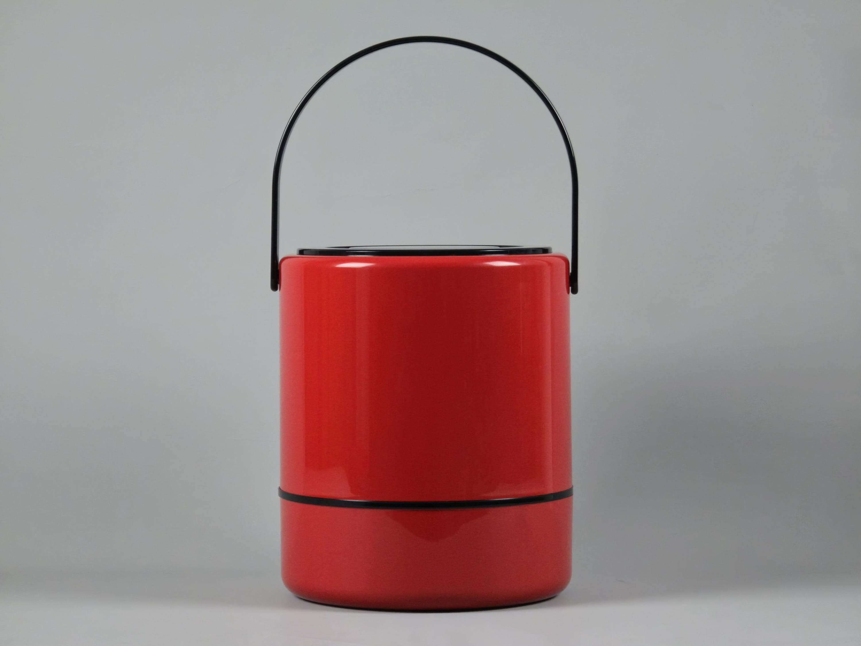 New old stock 1980s vintage red and black plastic large ice bucket with lid from the 'Casa Bar' series by Scaroni Italy.