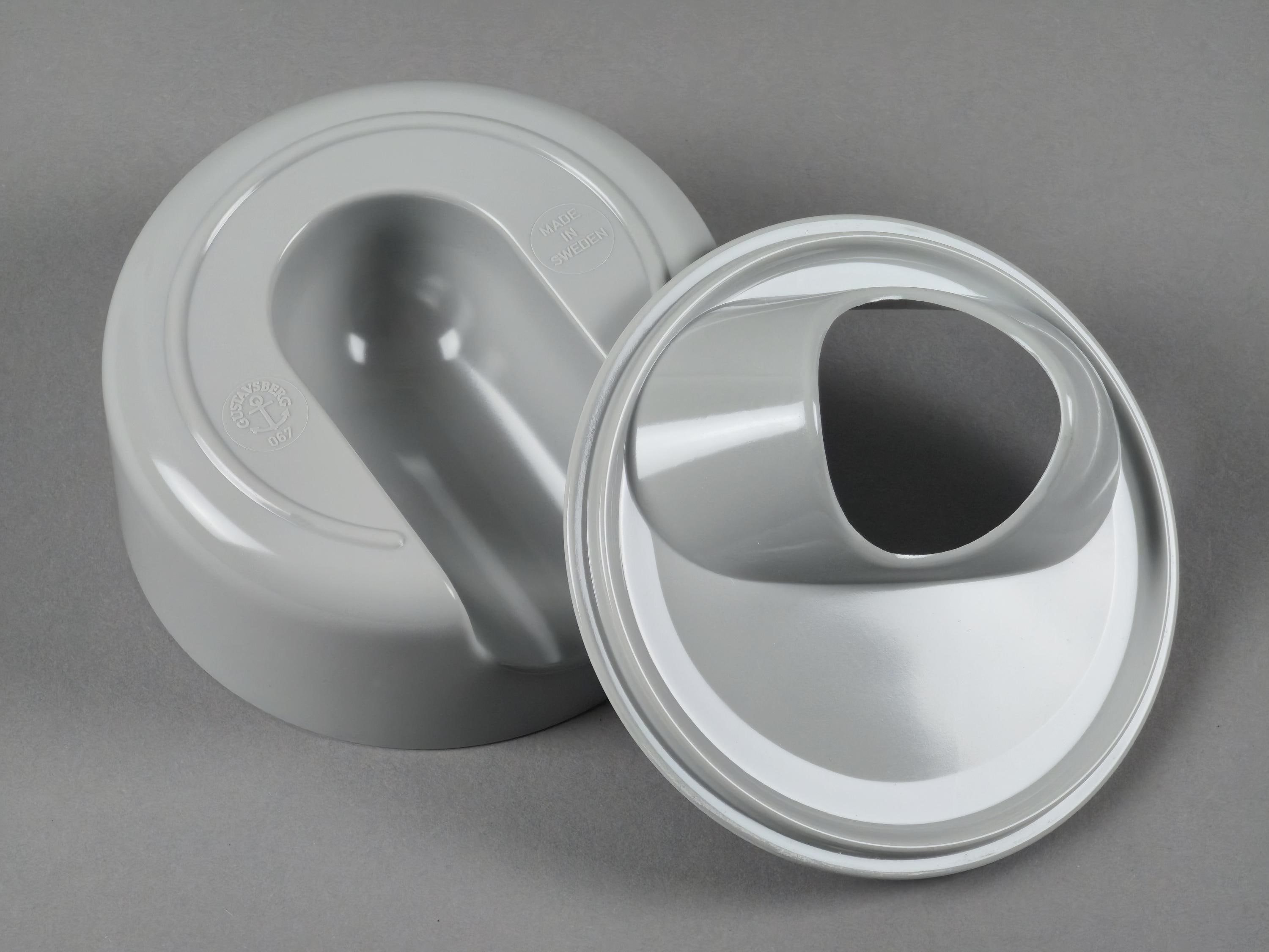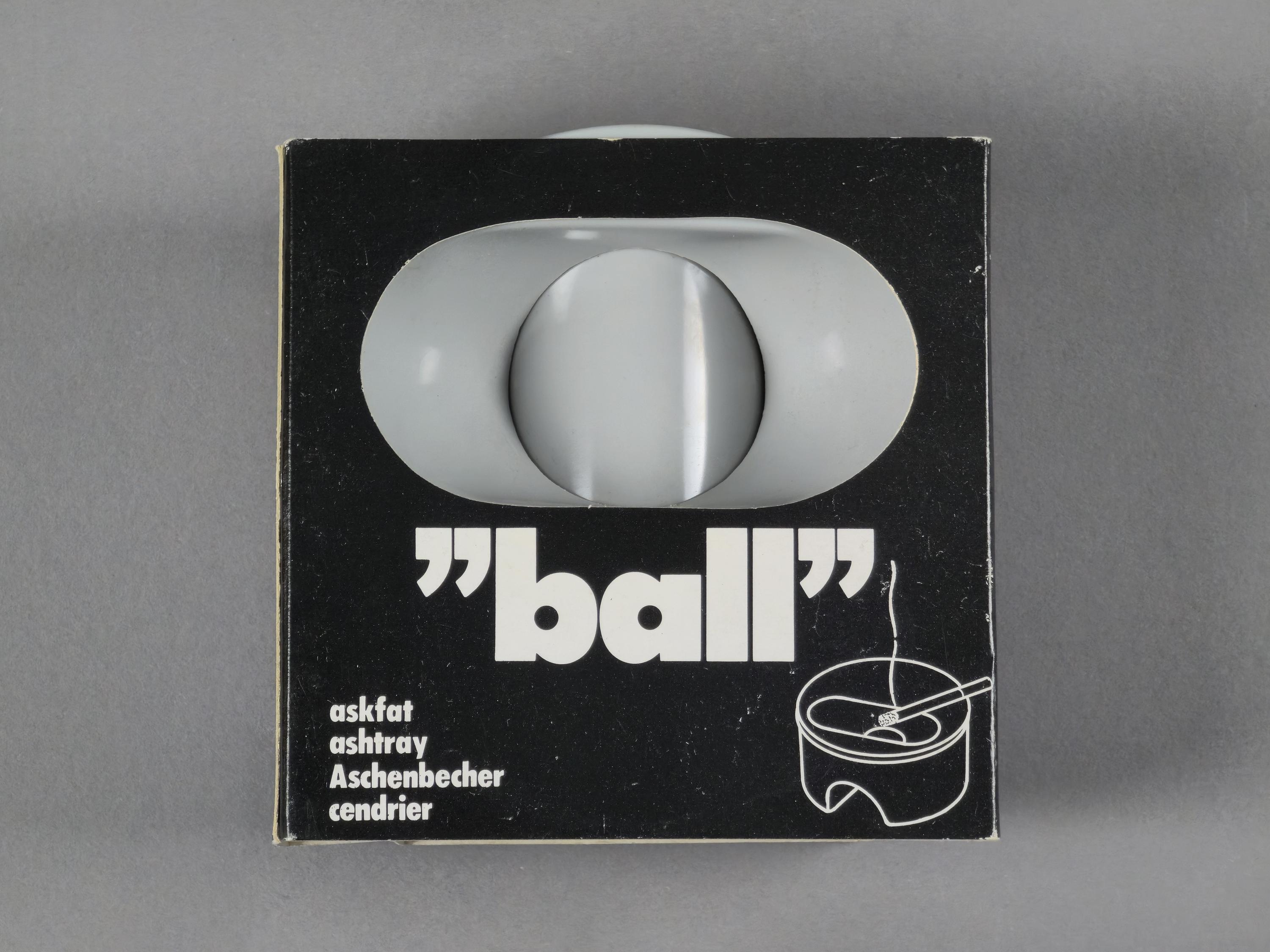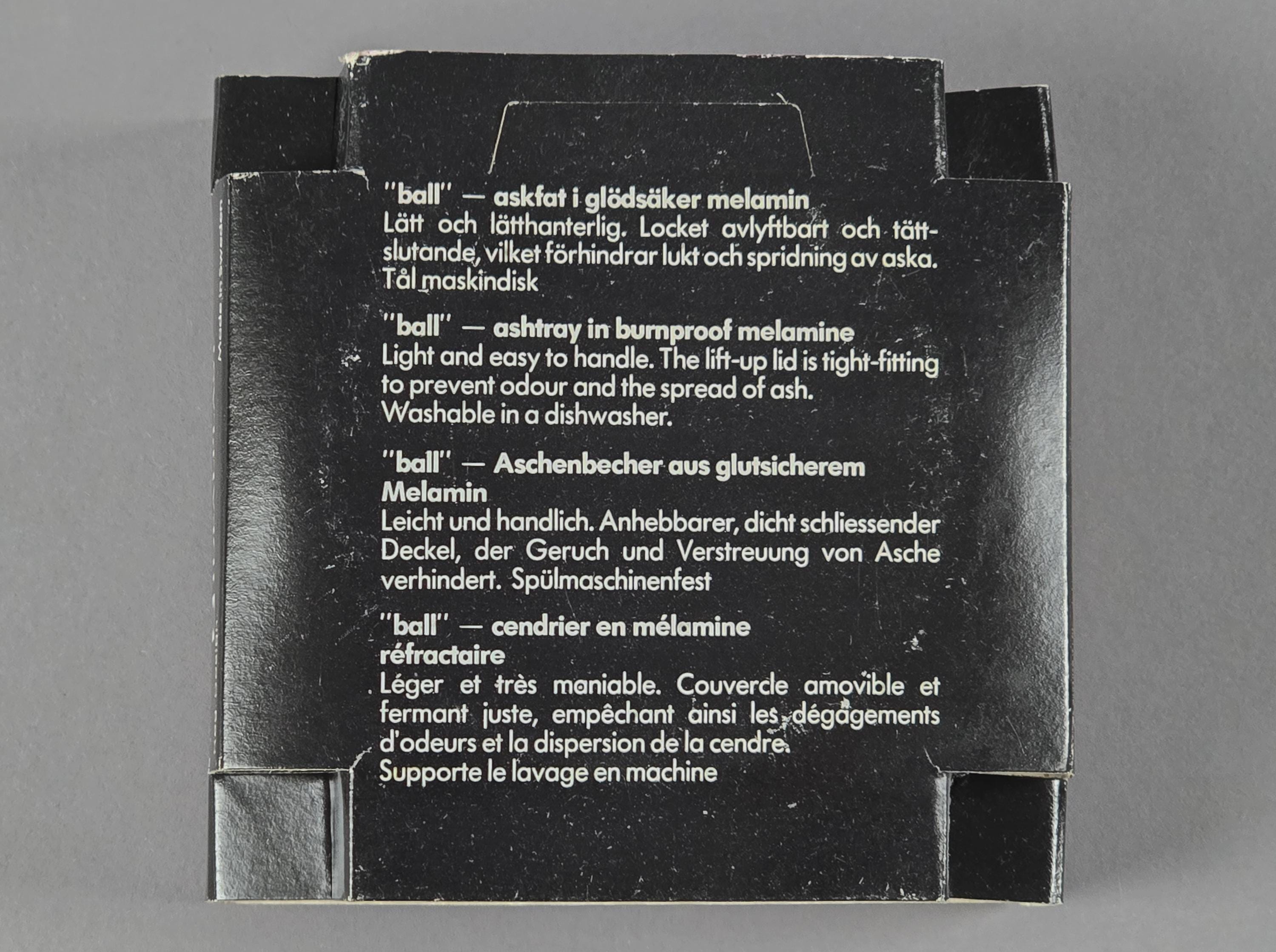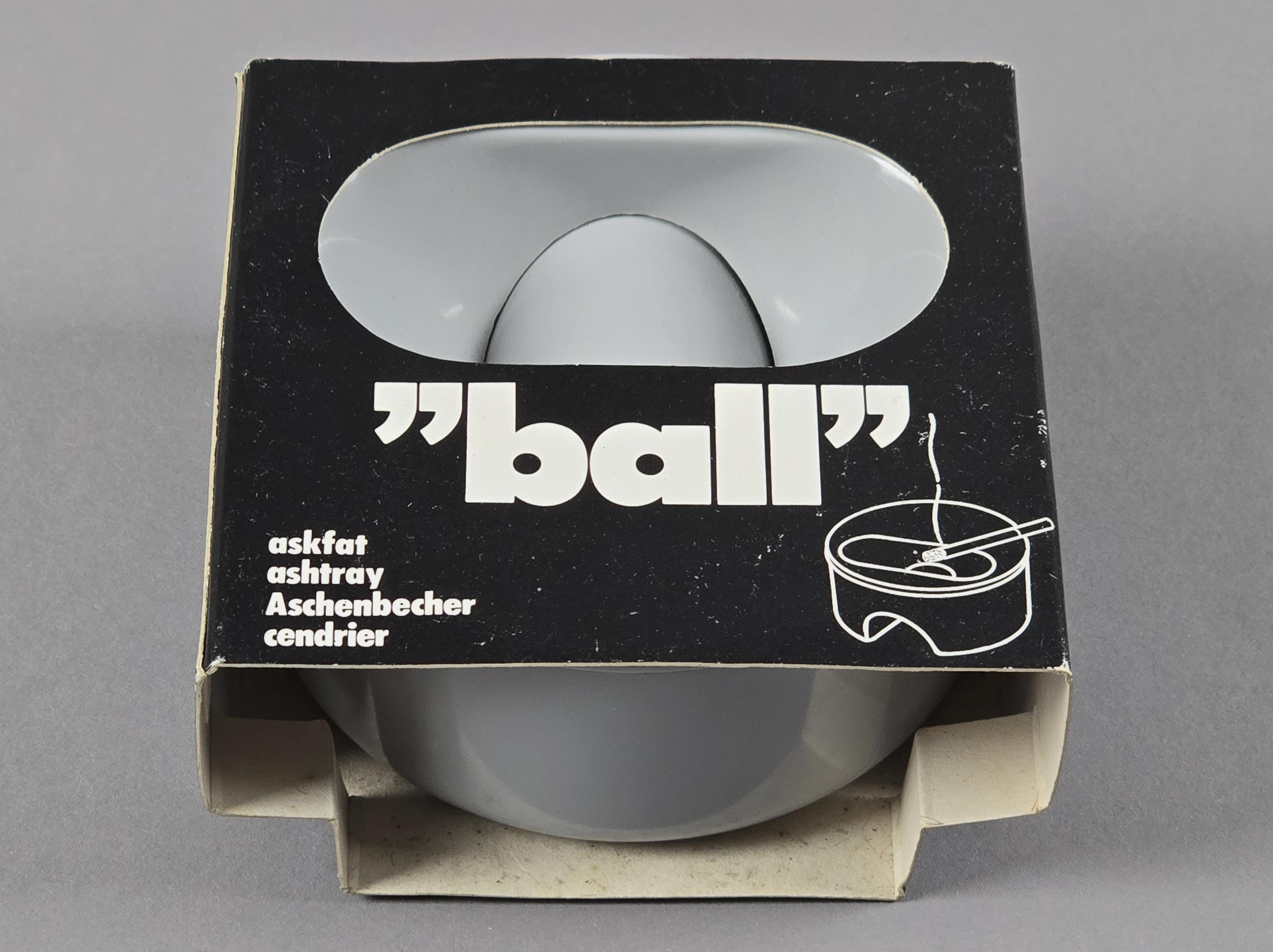 New in box vintage 1970s grey melamine 'Ball' ashtray by Gunnar Larsson for Gustavsberg Sweden.