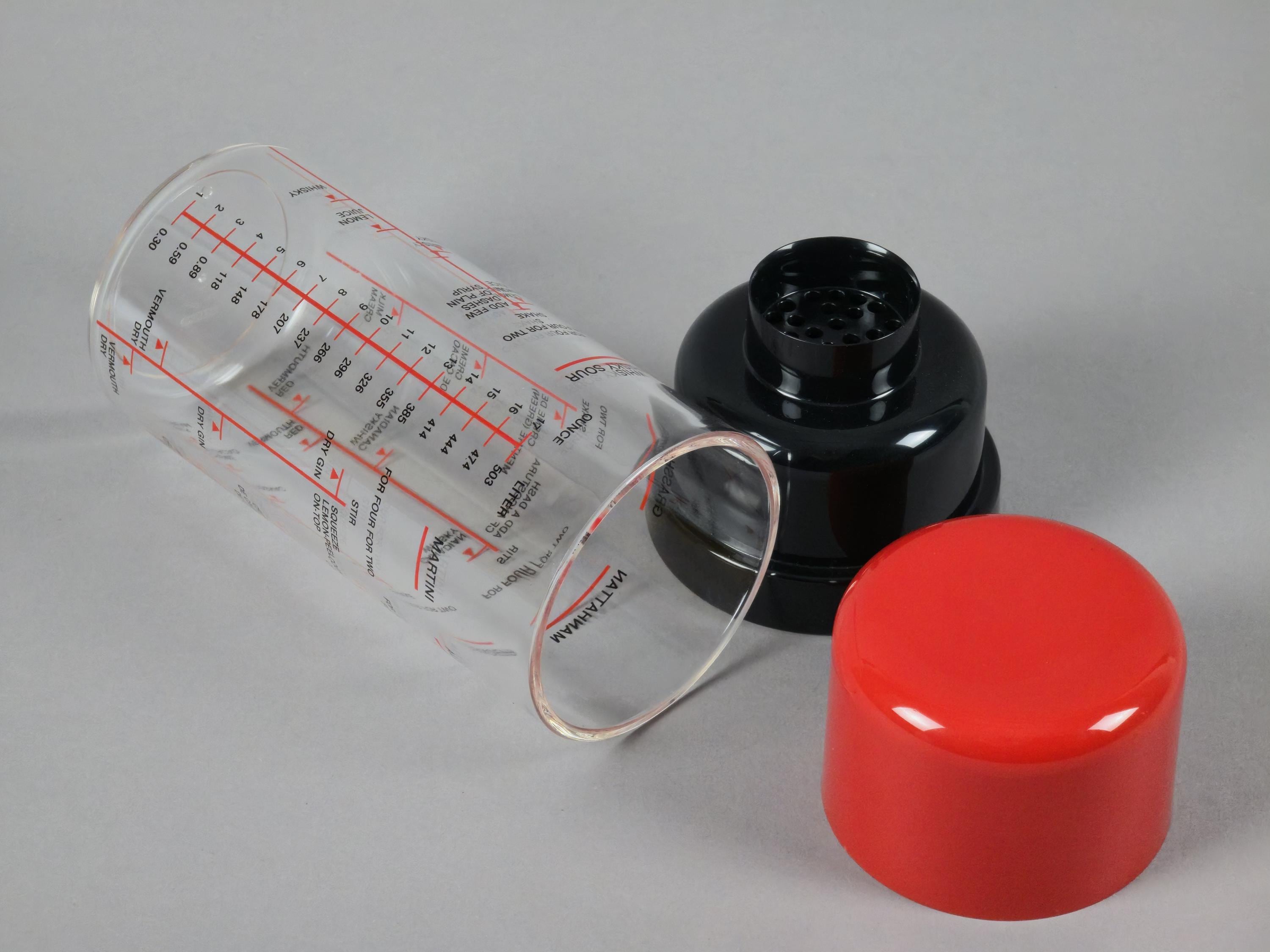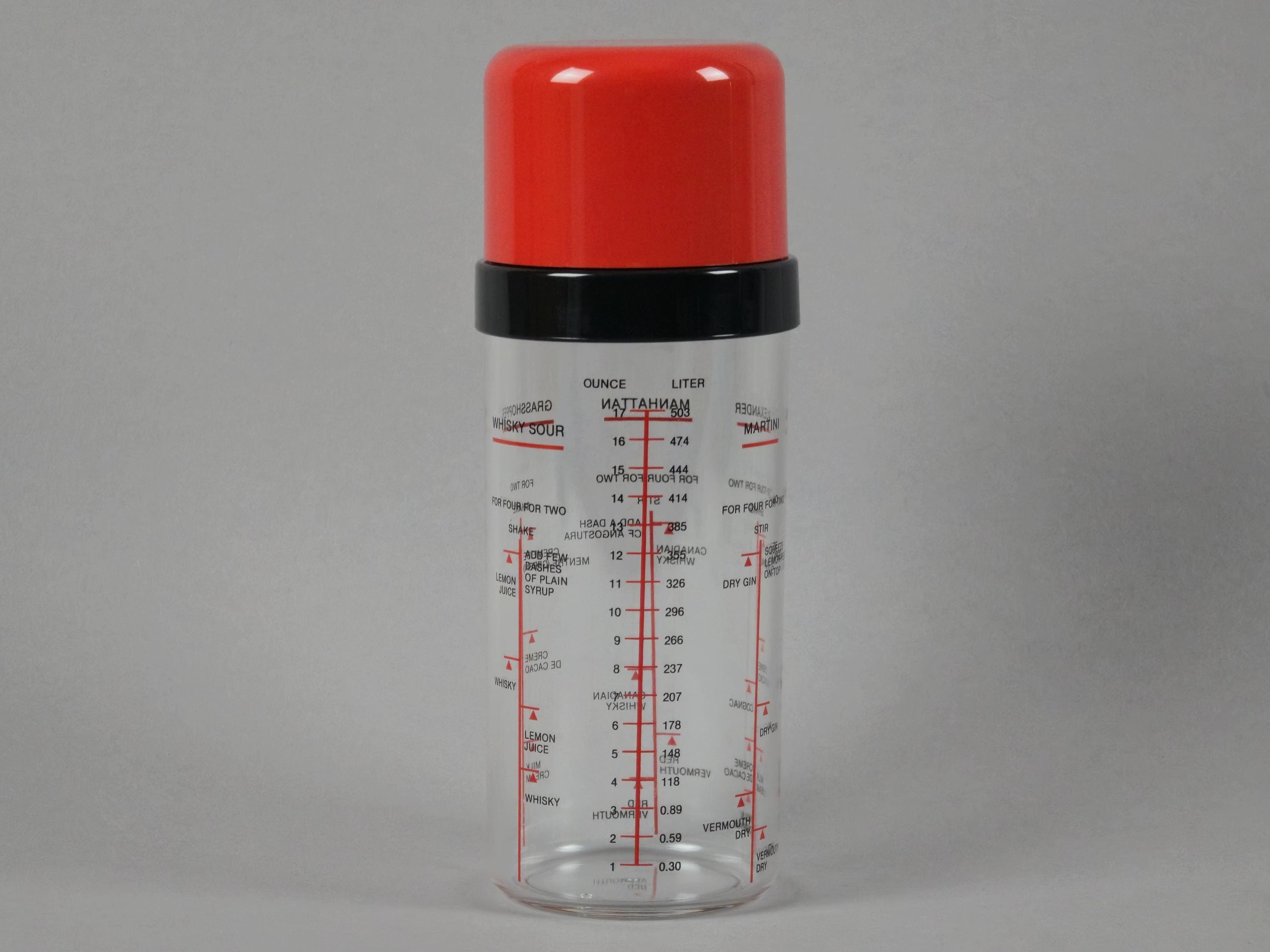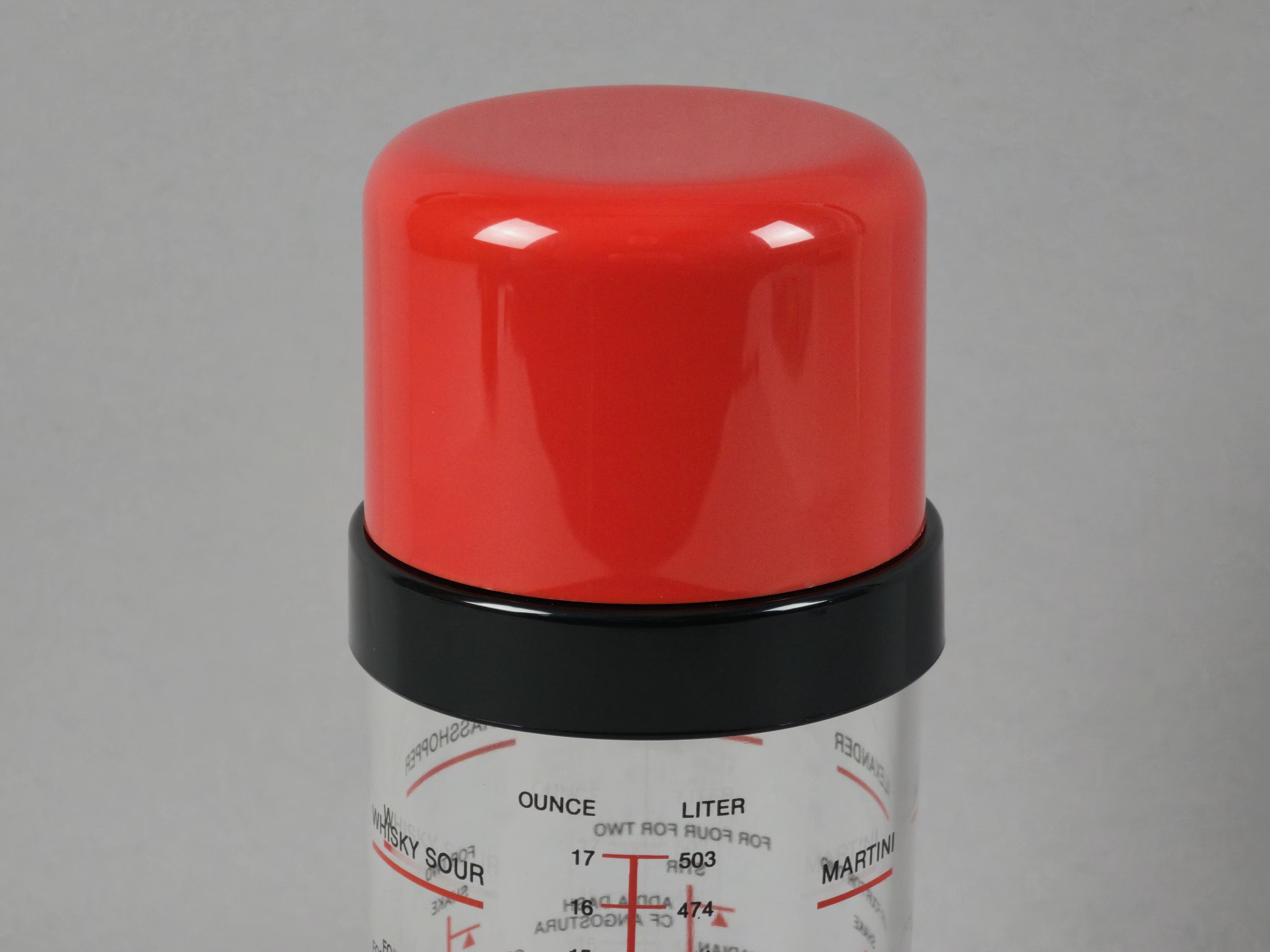New old stock 1980s vintage red and black plastic cocktail shaker & mixer from the 'Casa Bar' series by Scaroni Italy.