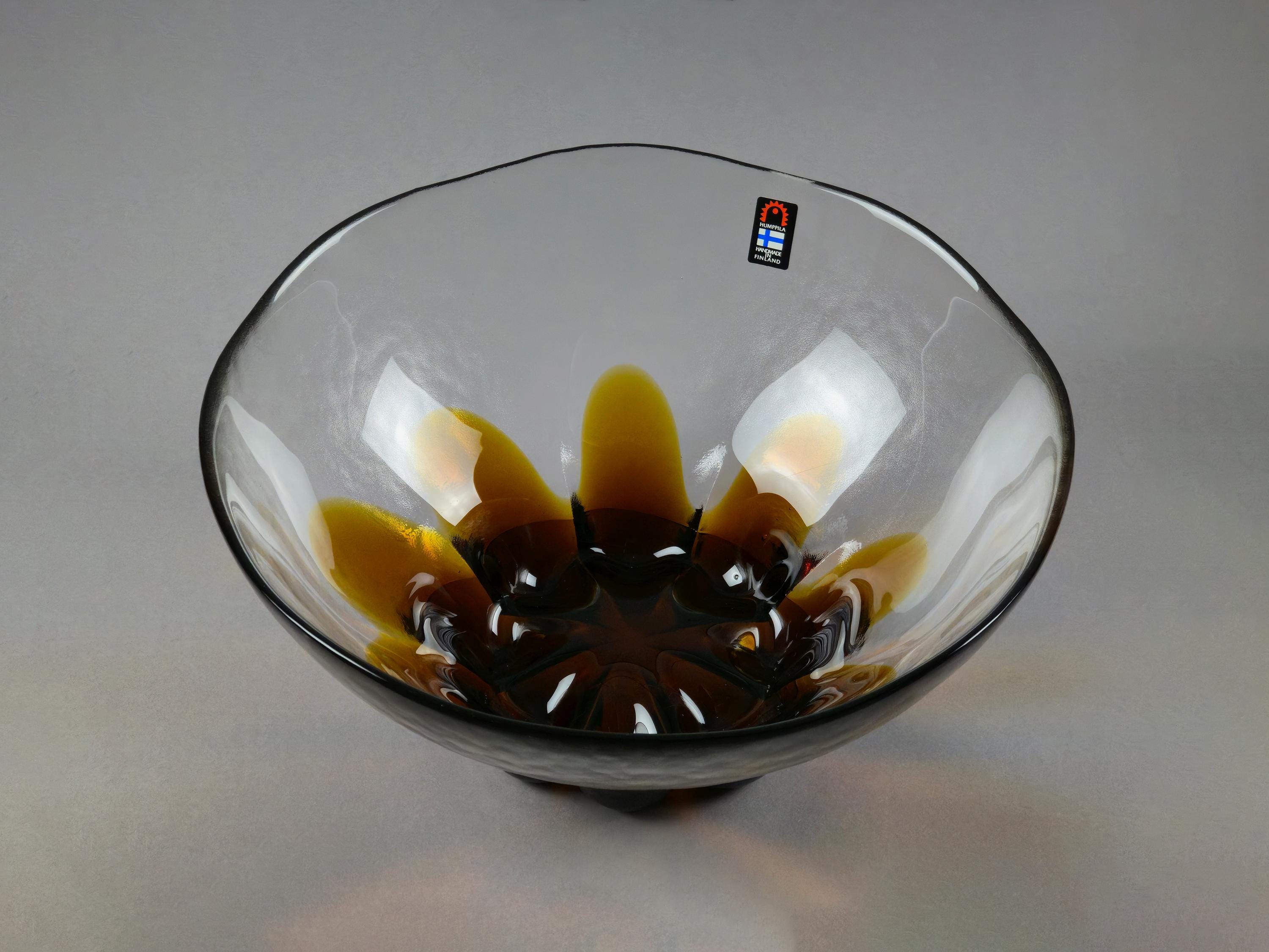 Vintage 1970s Humppila Art Glass Bowl From Finland.