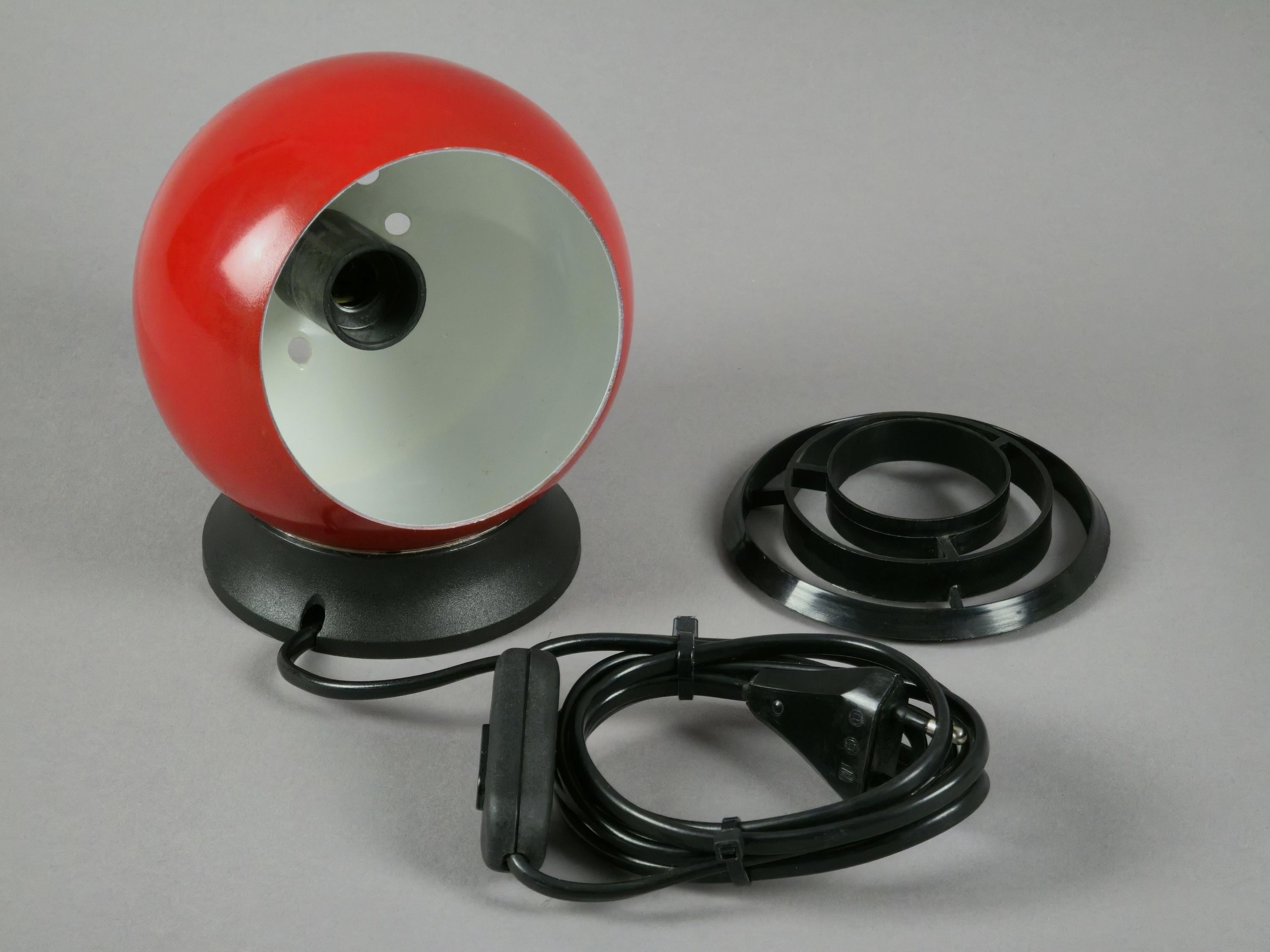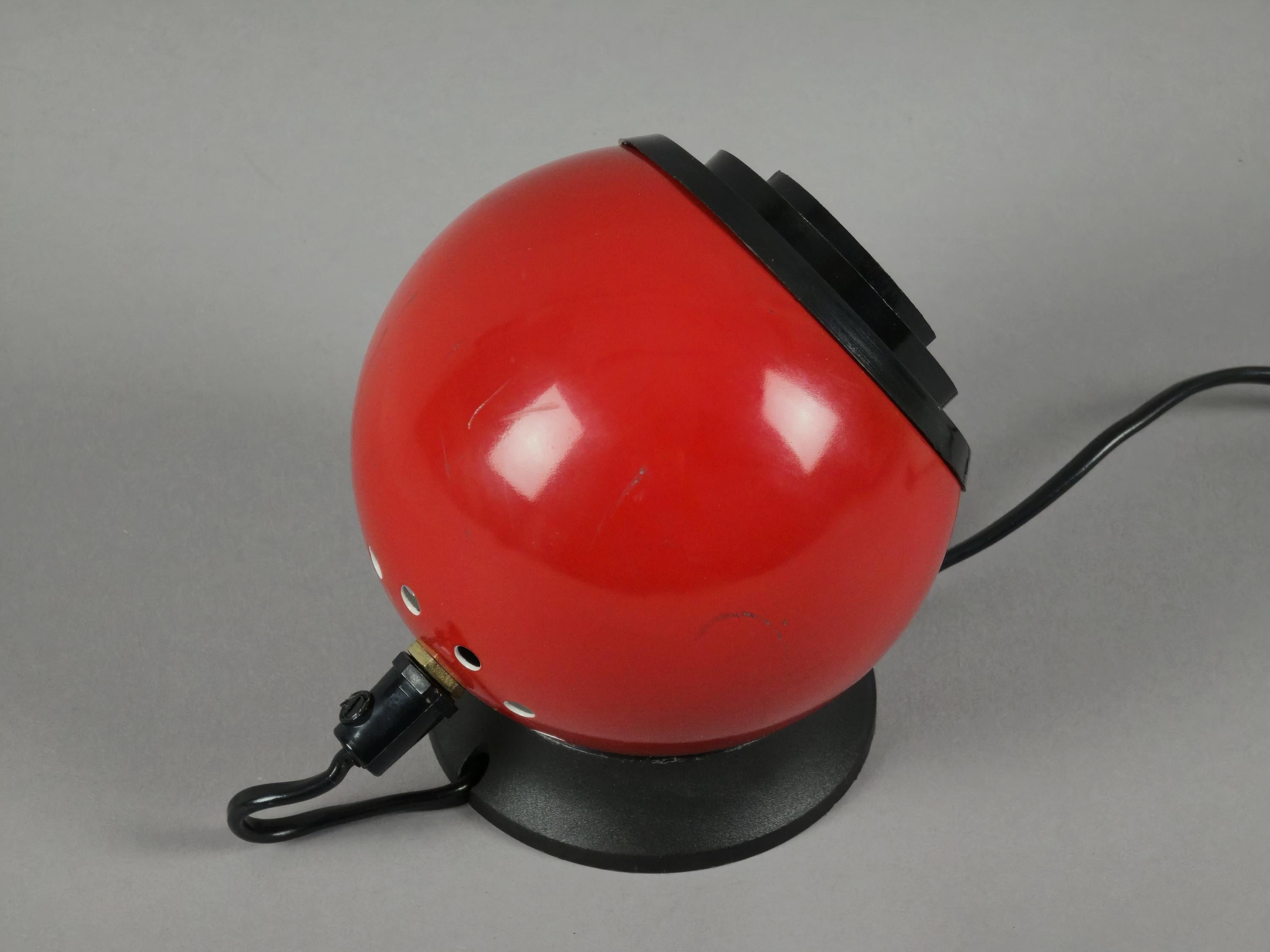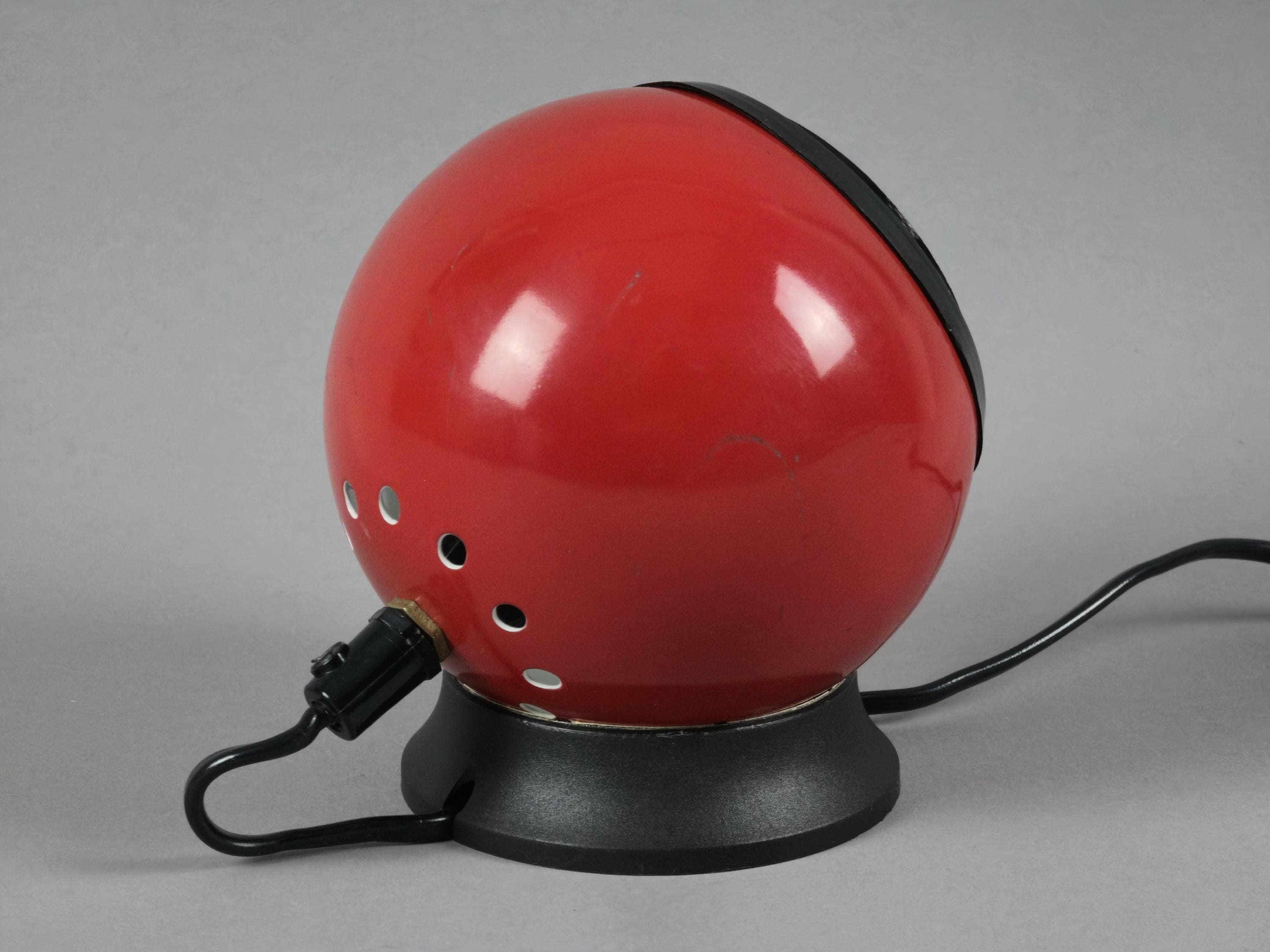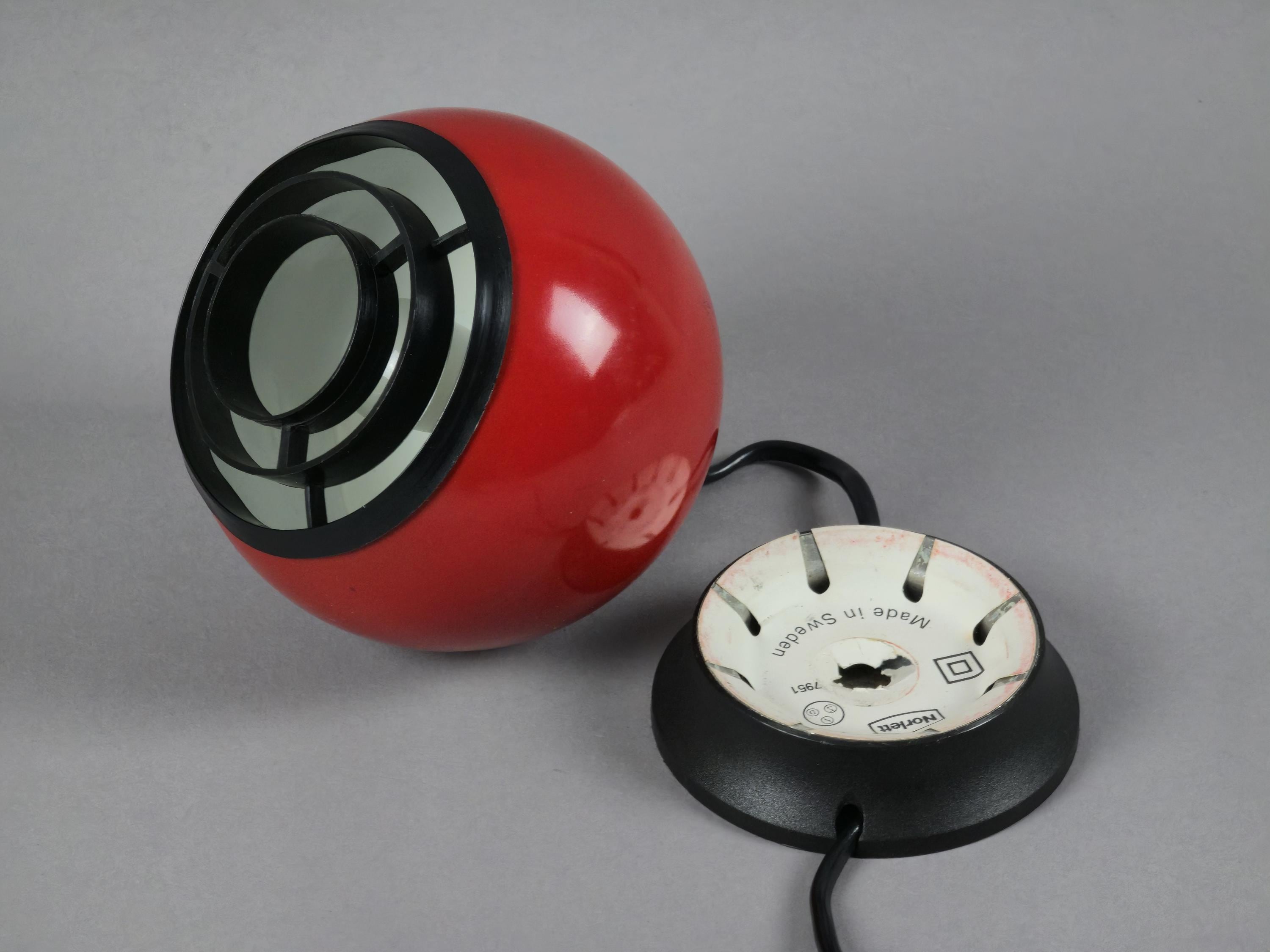 Vintage 1970s red magnetic eyeball table lamp with removable lamp shade by Norlett Sweden.