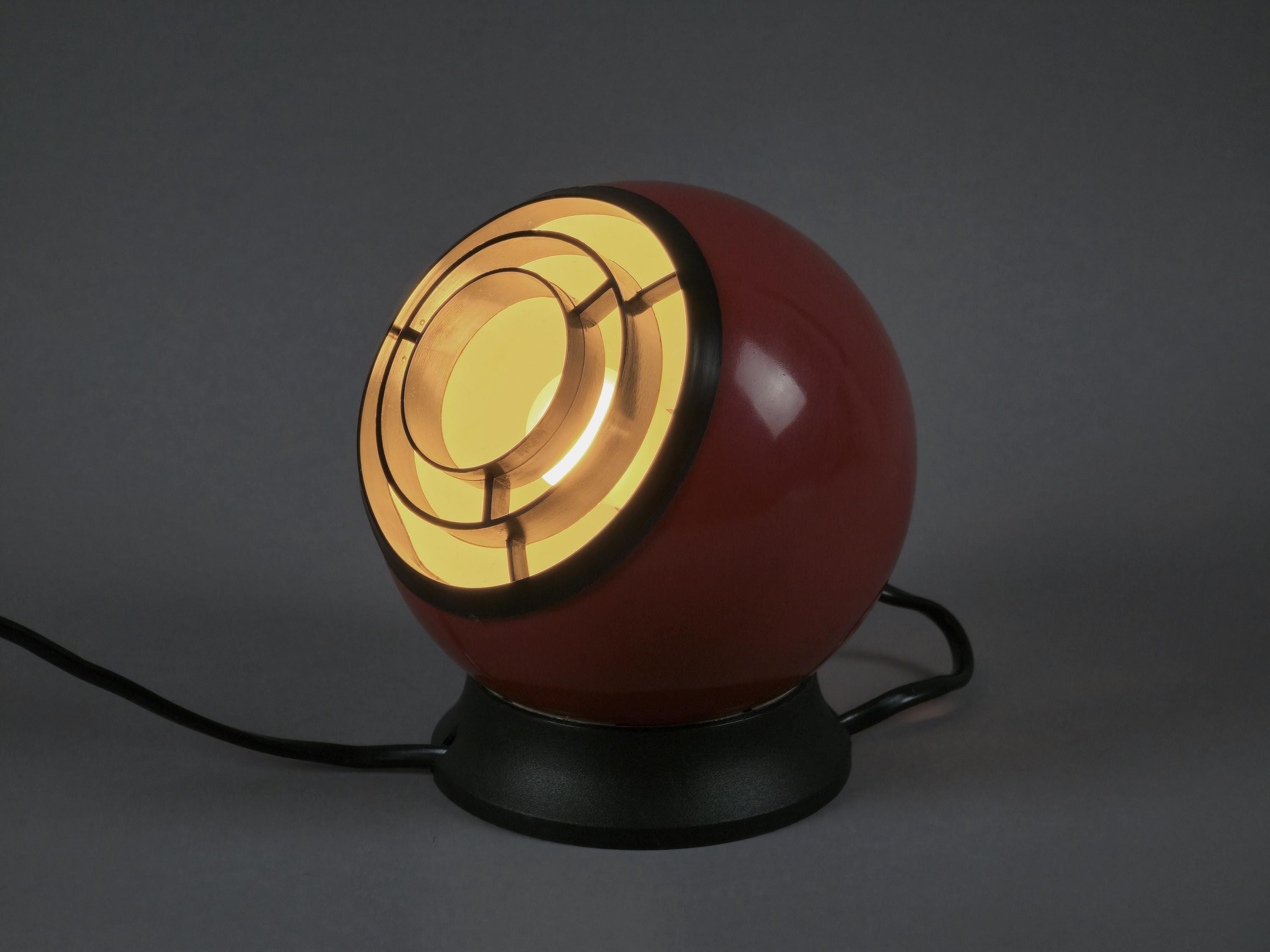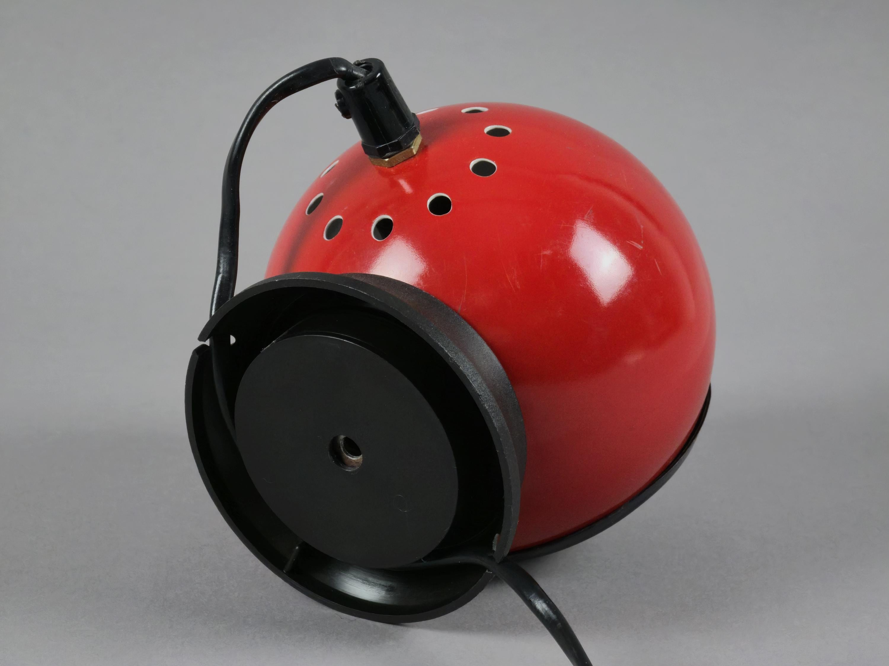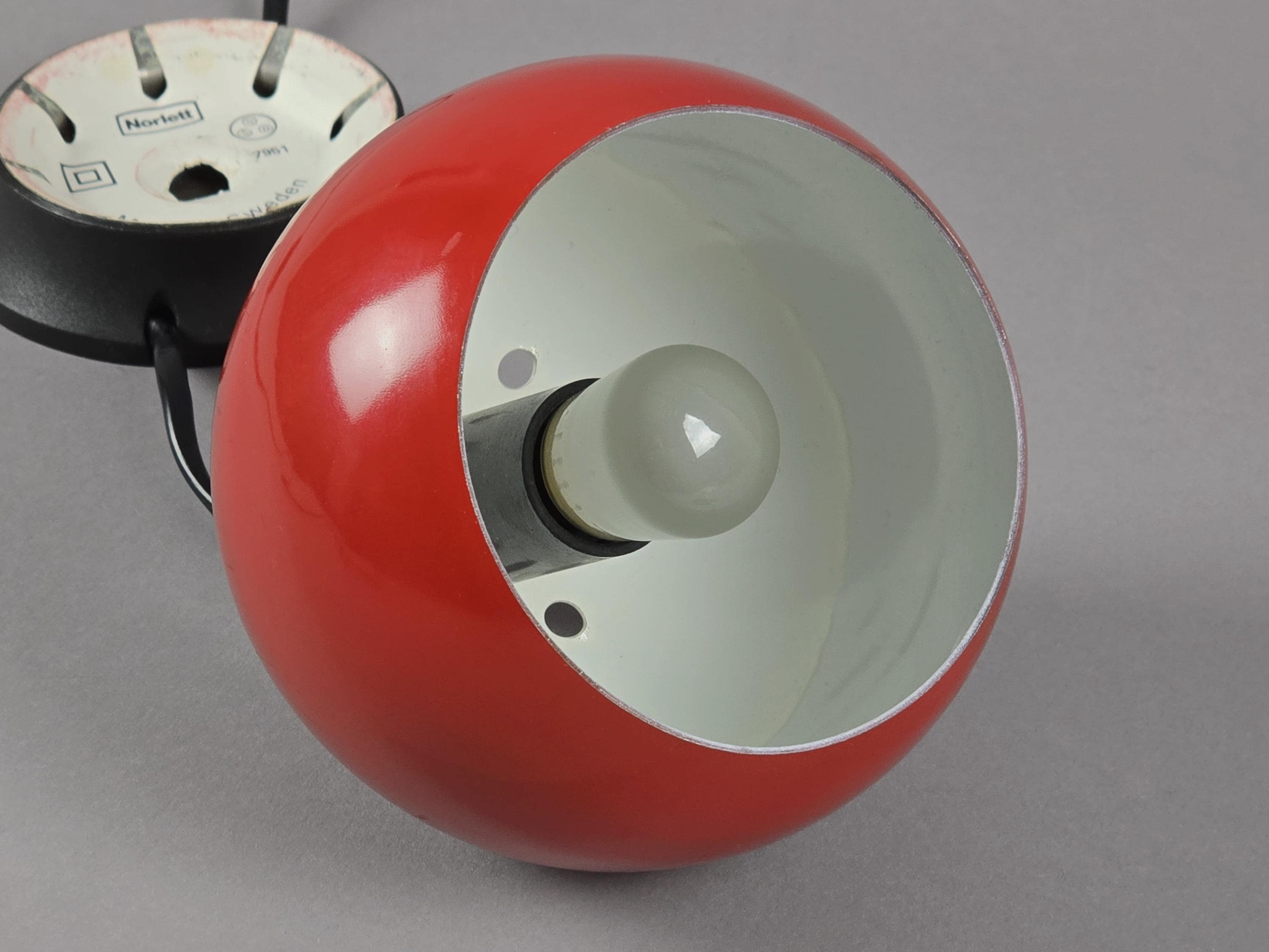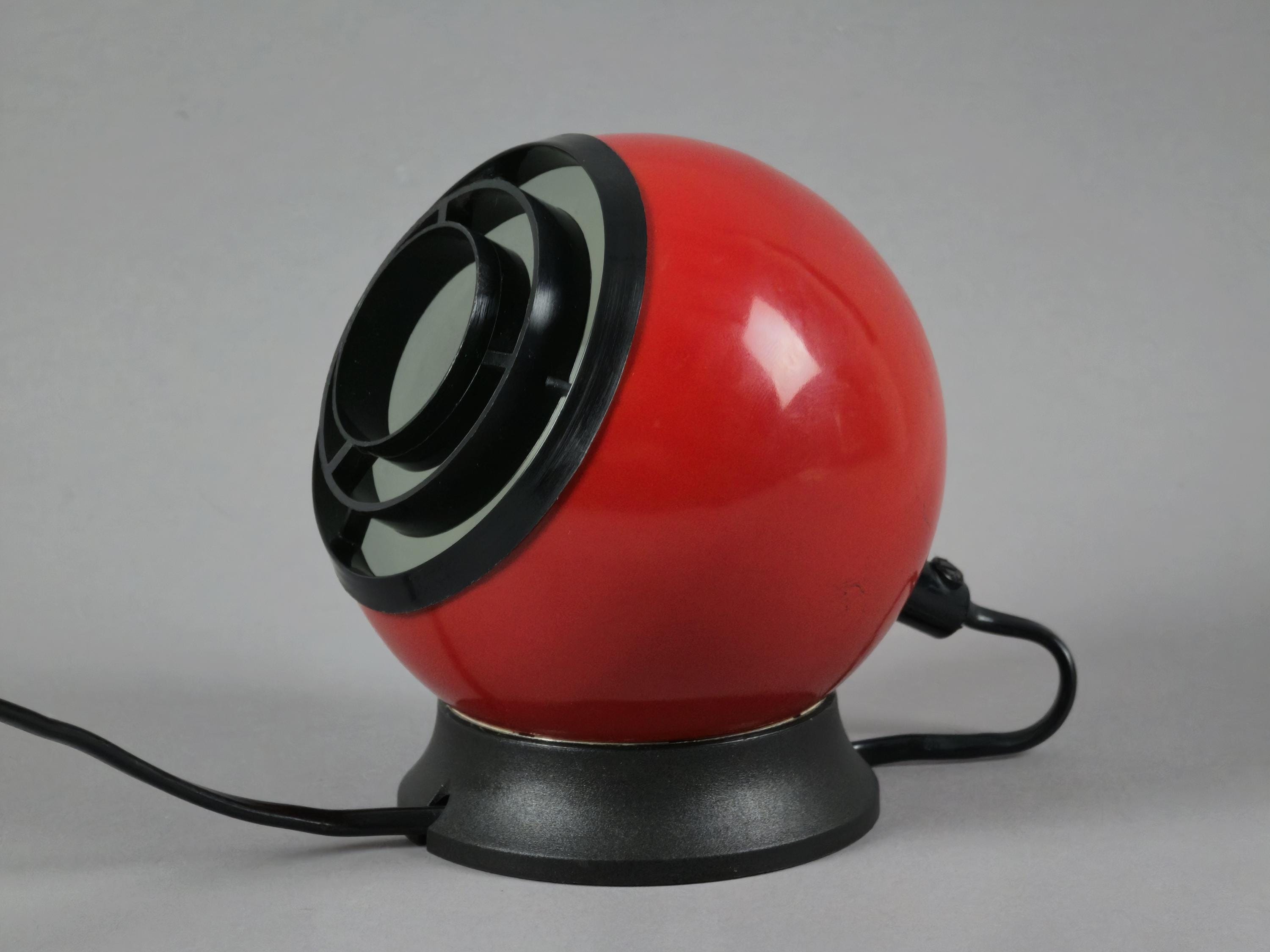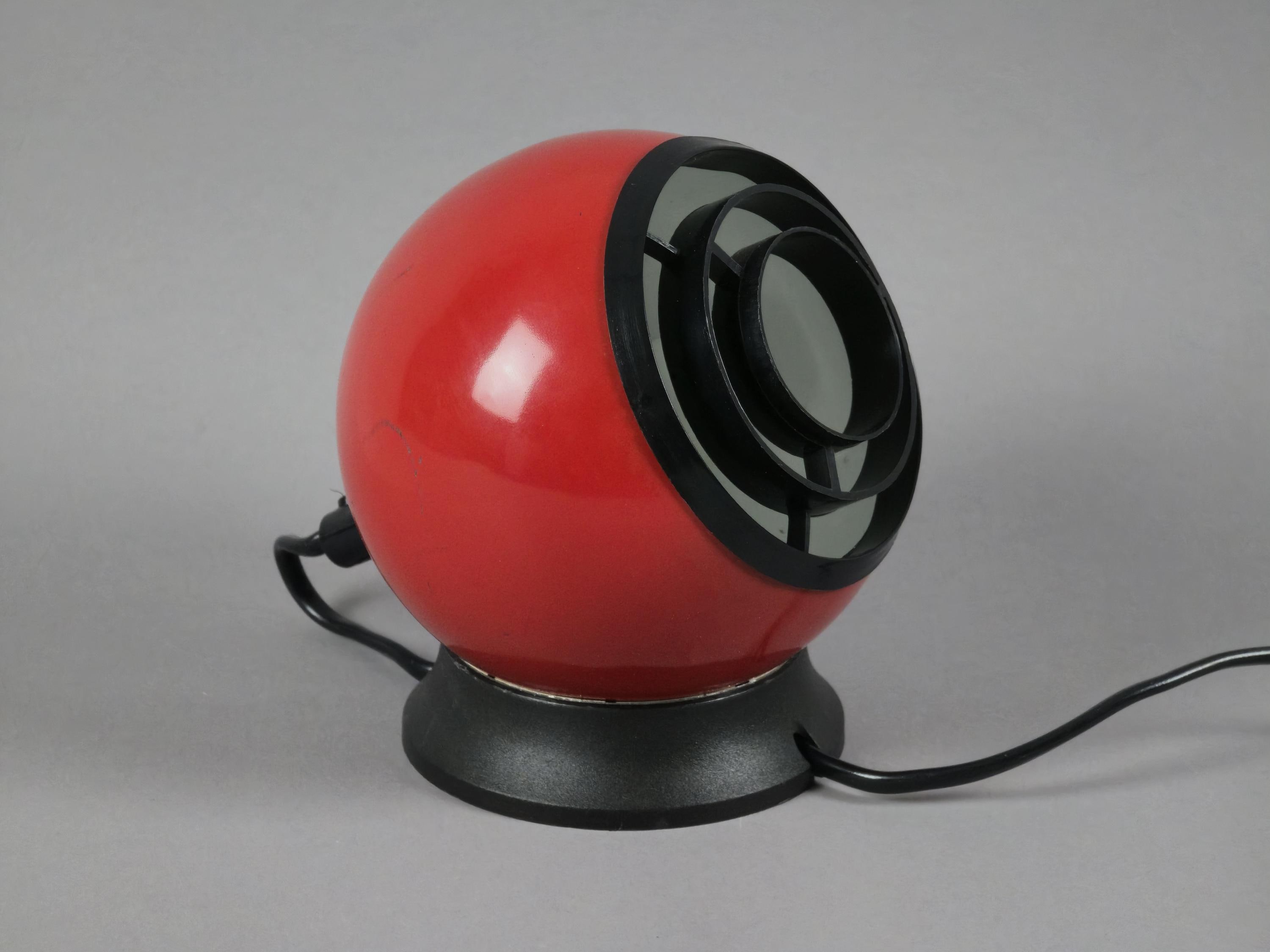 Vintage 1970s red magnetic eyeball table lamp with removable lamp shade by Norlett Sweden.