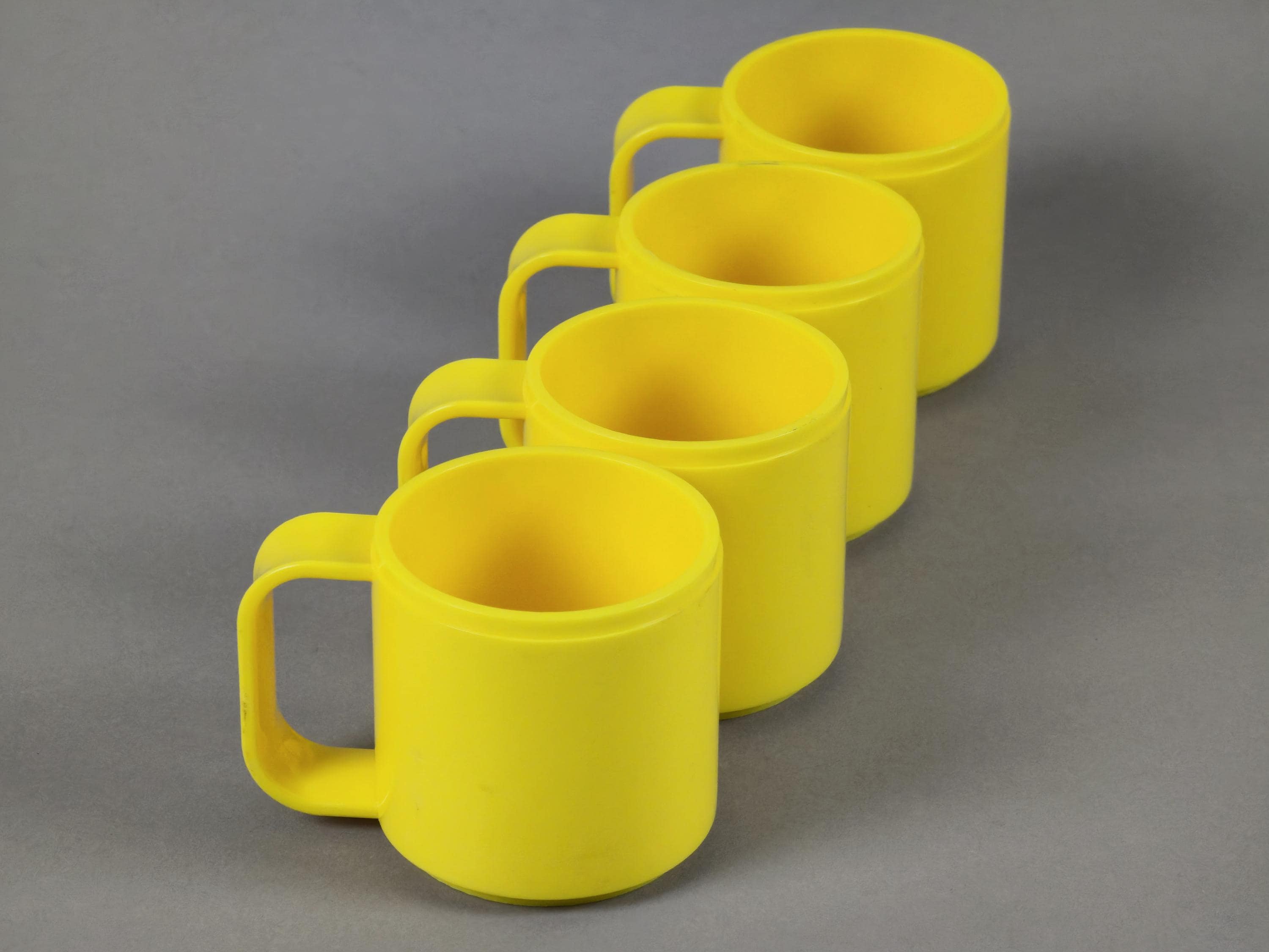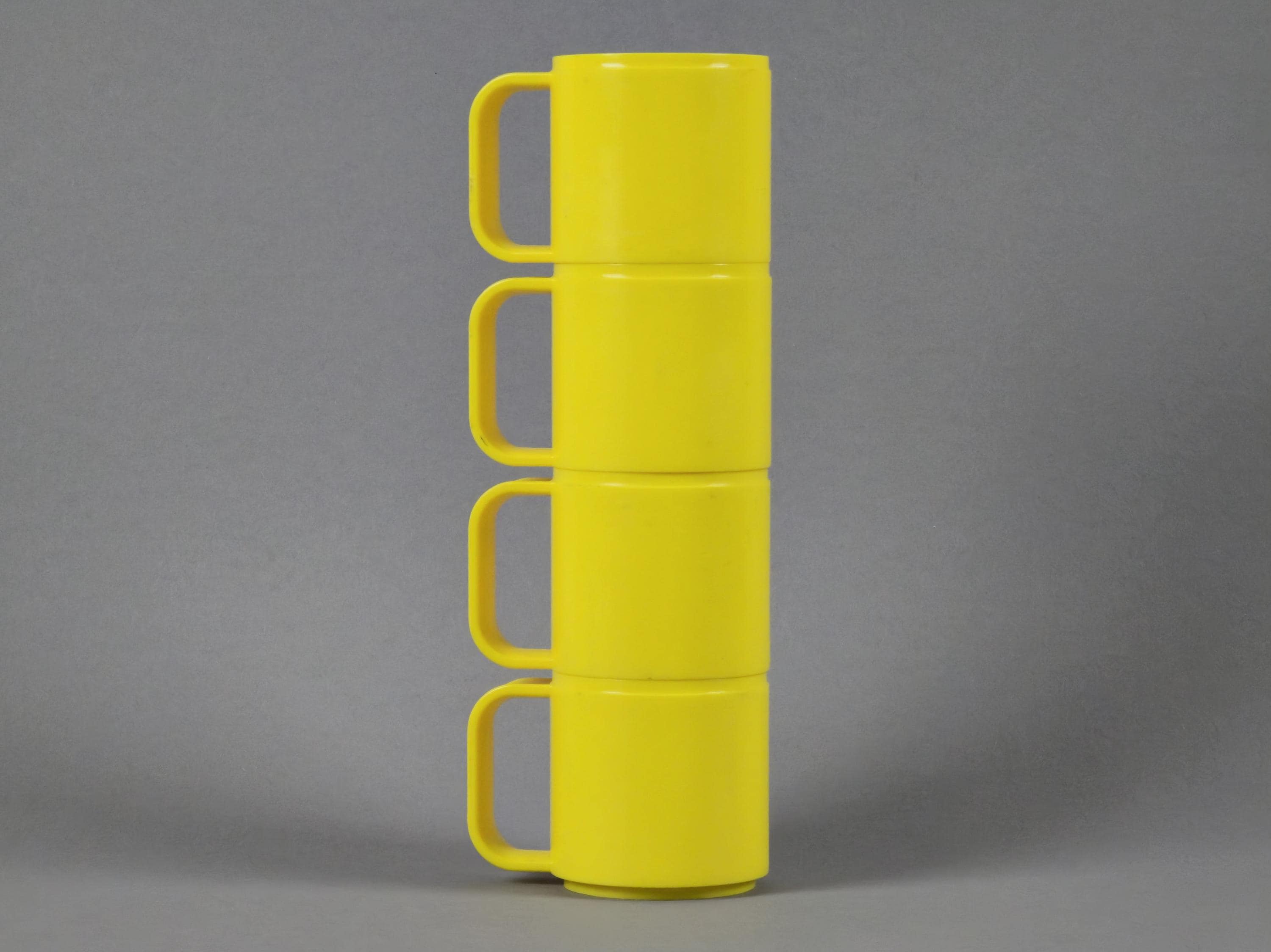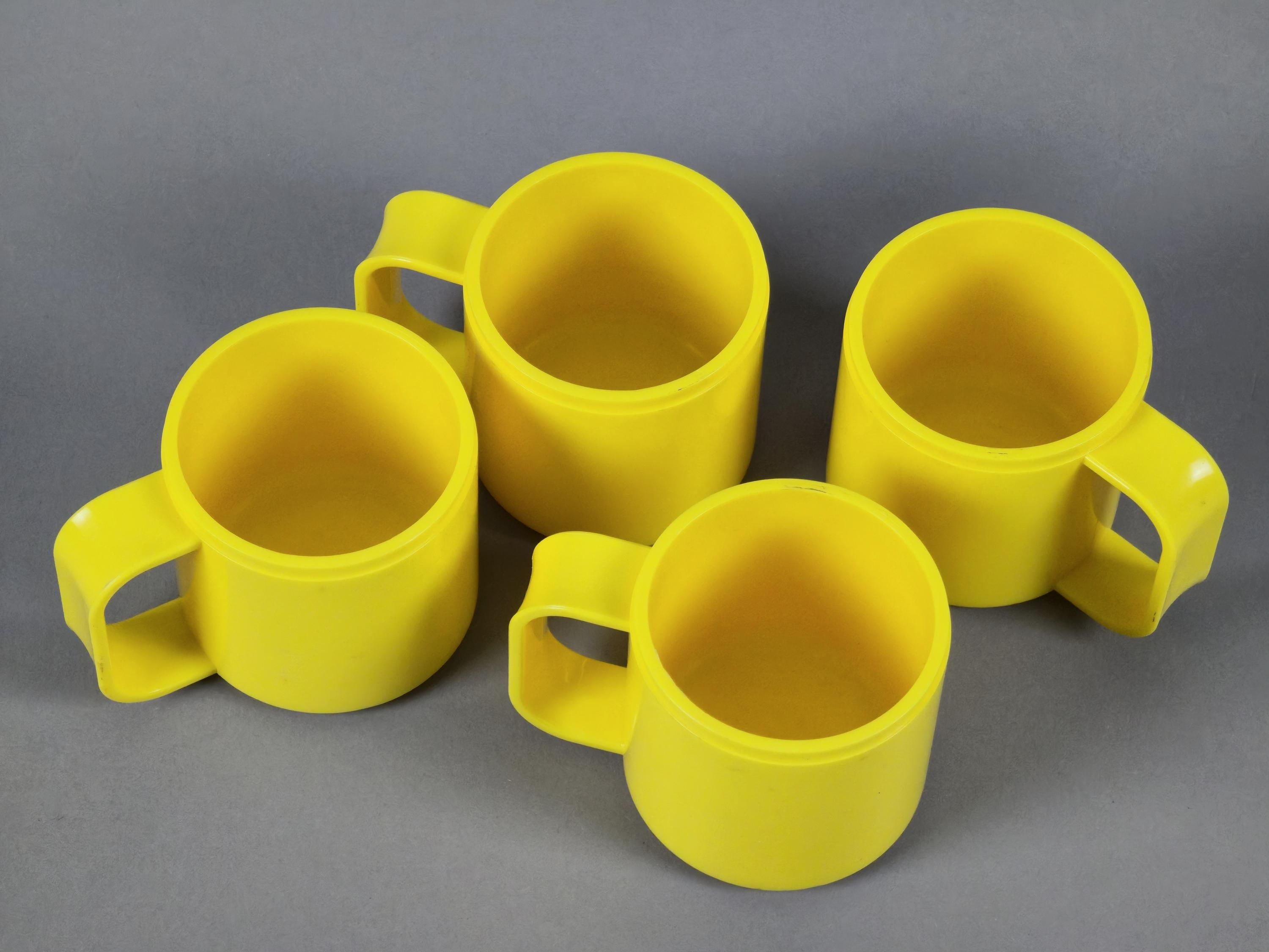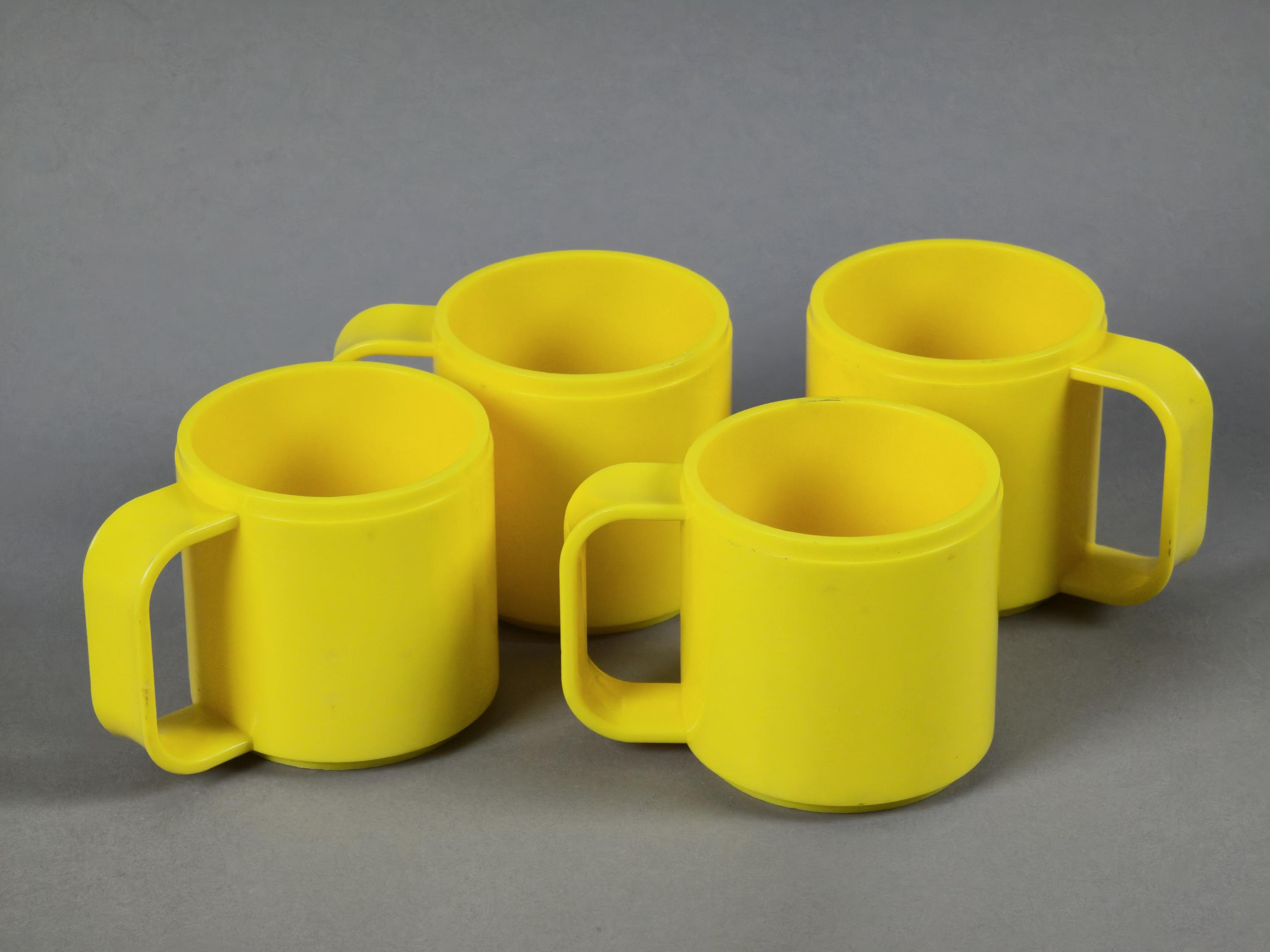 Vintage 1990s Set Of 4 Yellow Acrylic Cups By STYLE From Italy.