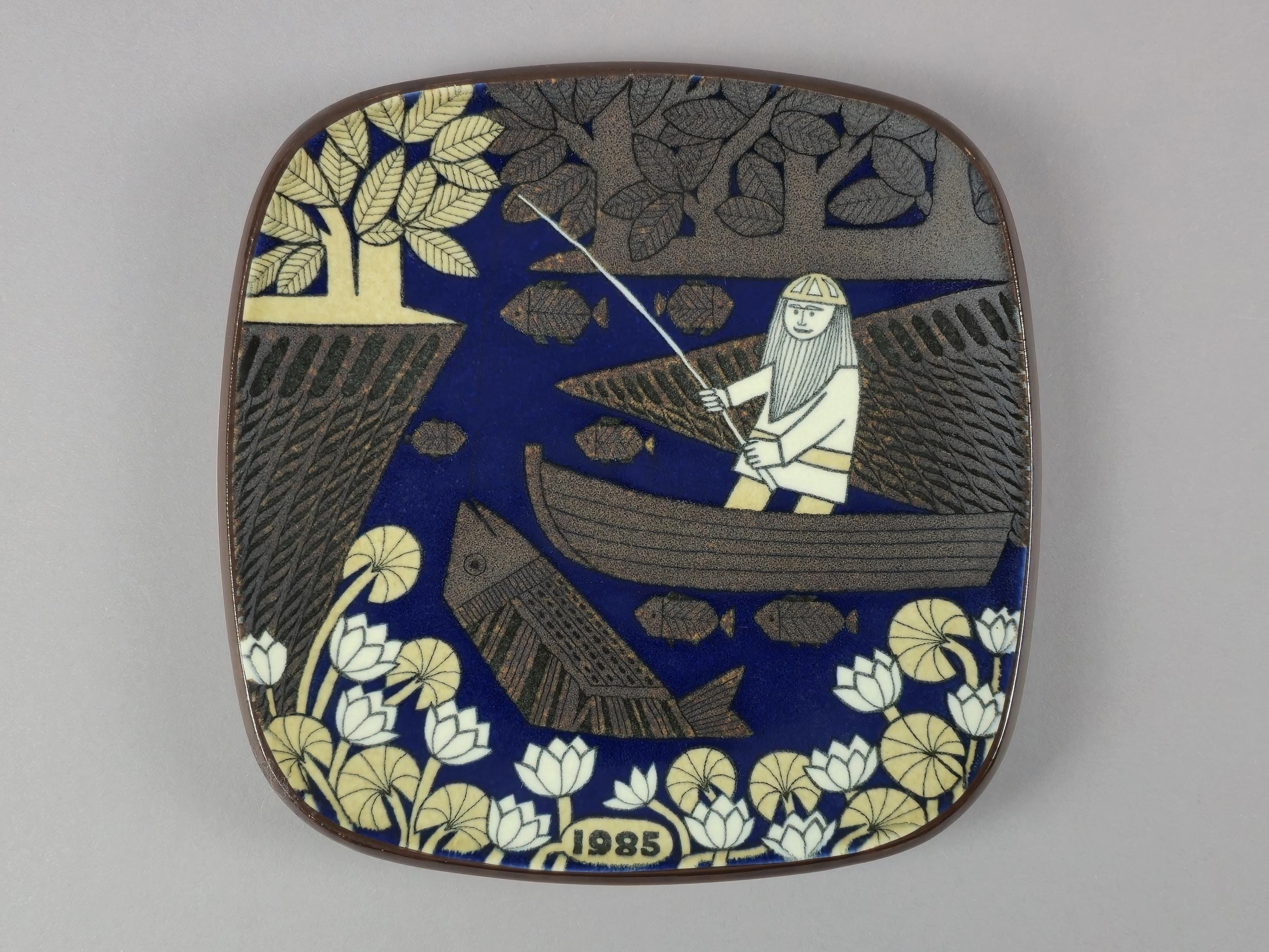 1985 Arabia Finland Annual Plate 'Kalevala' By Raija Uosikkinen / Väinämöinen Fishing.