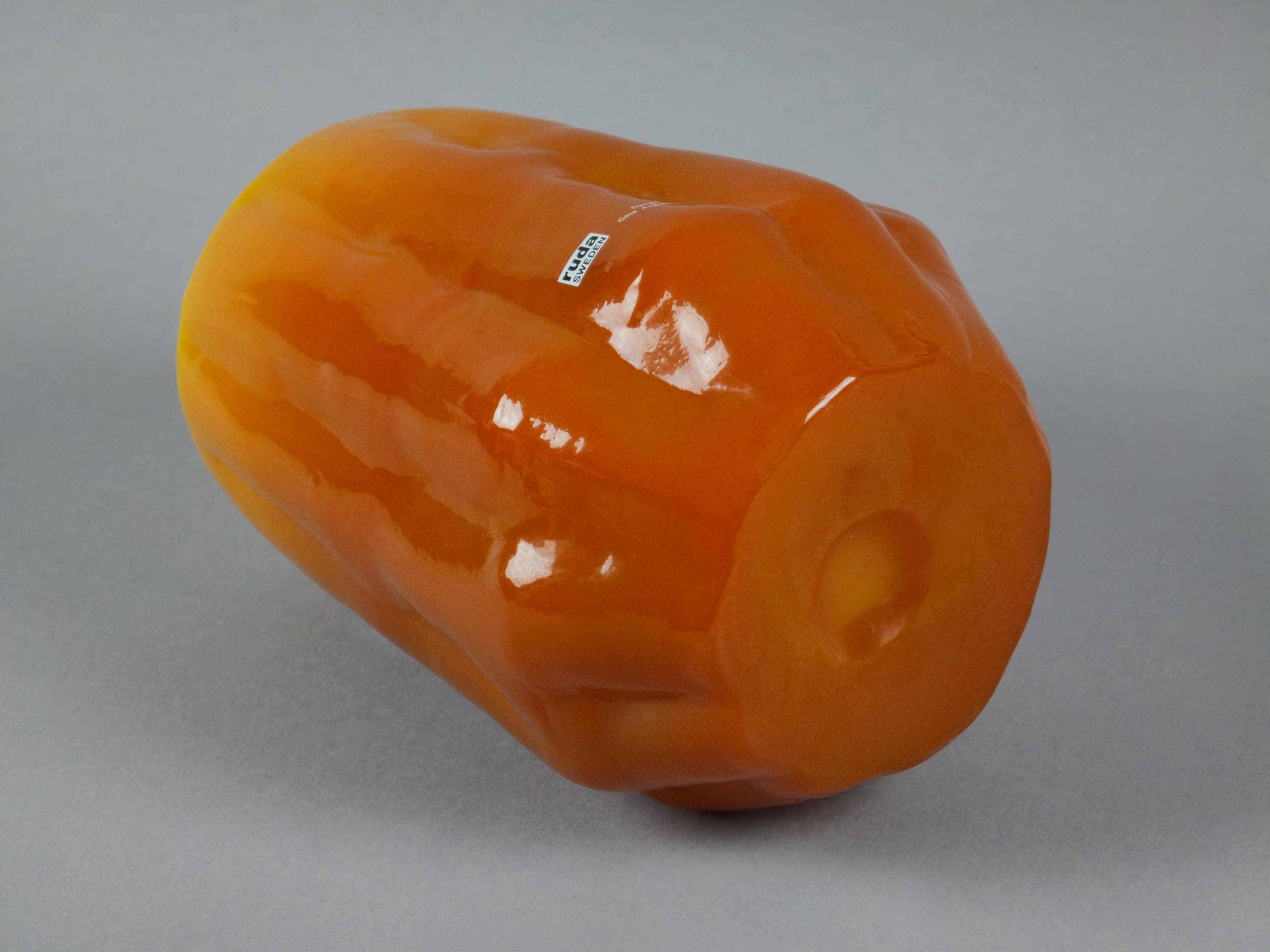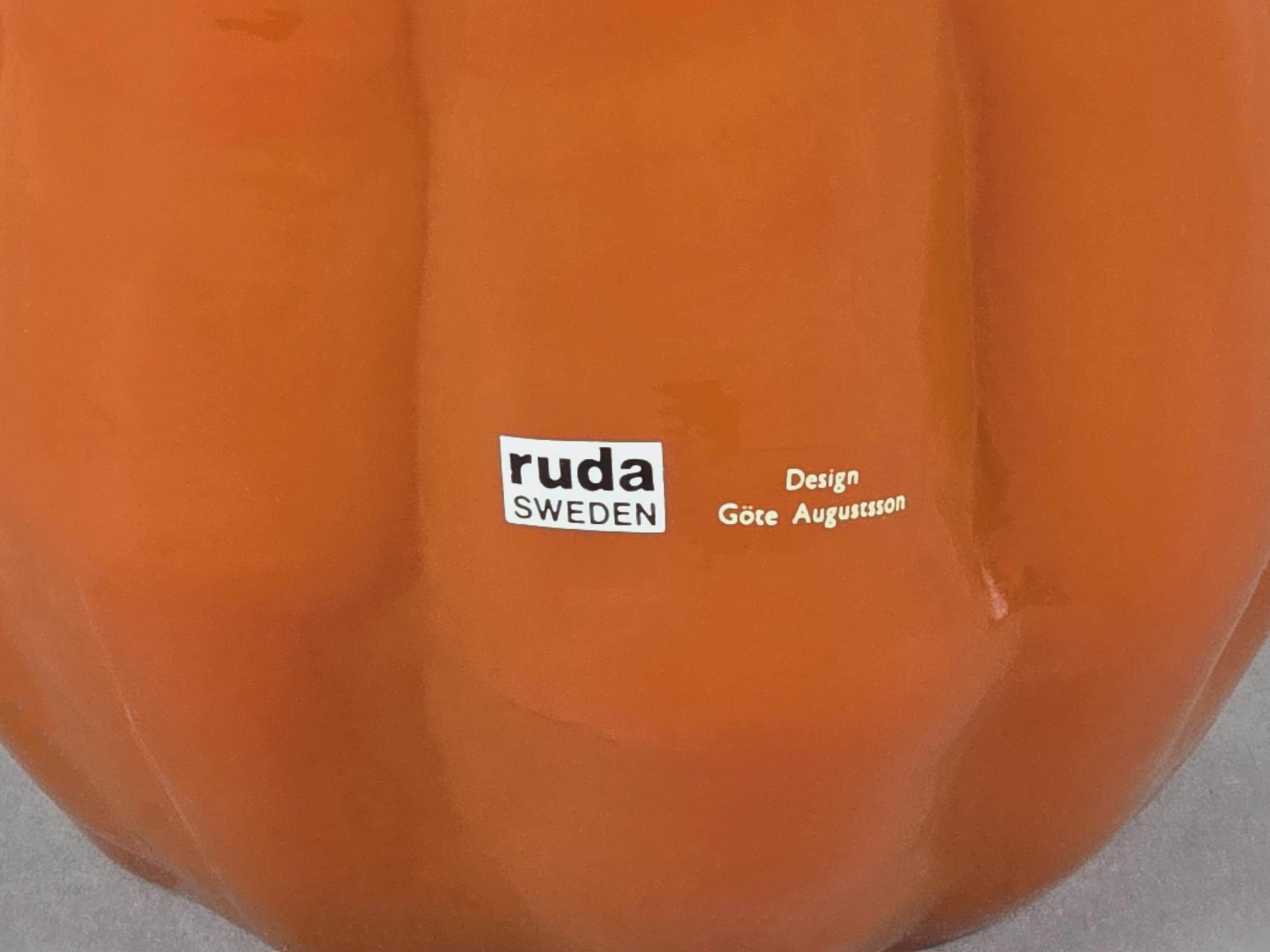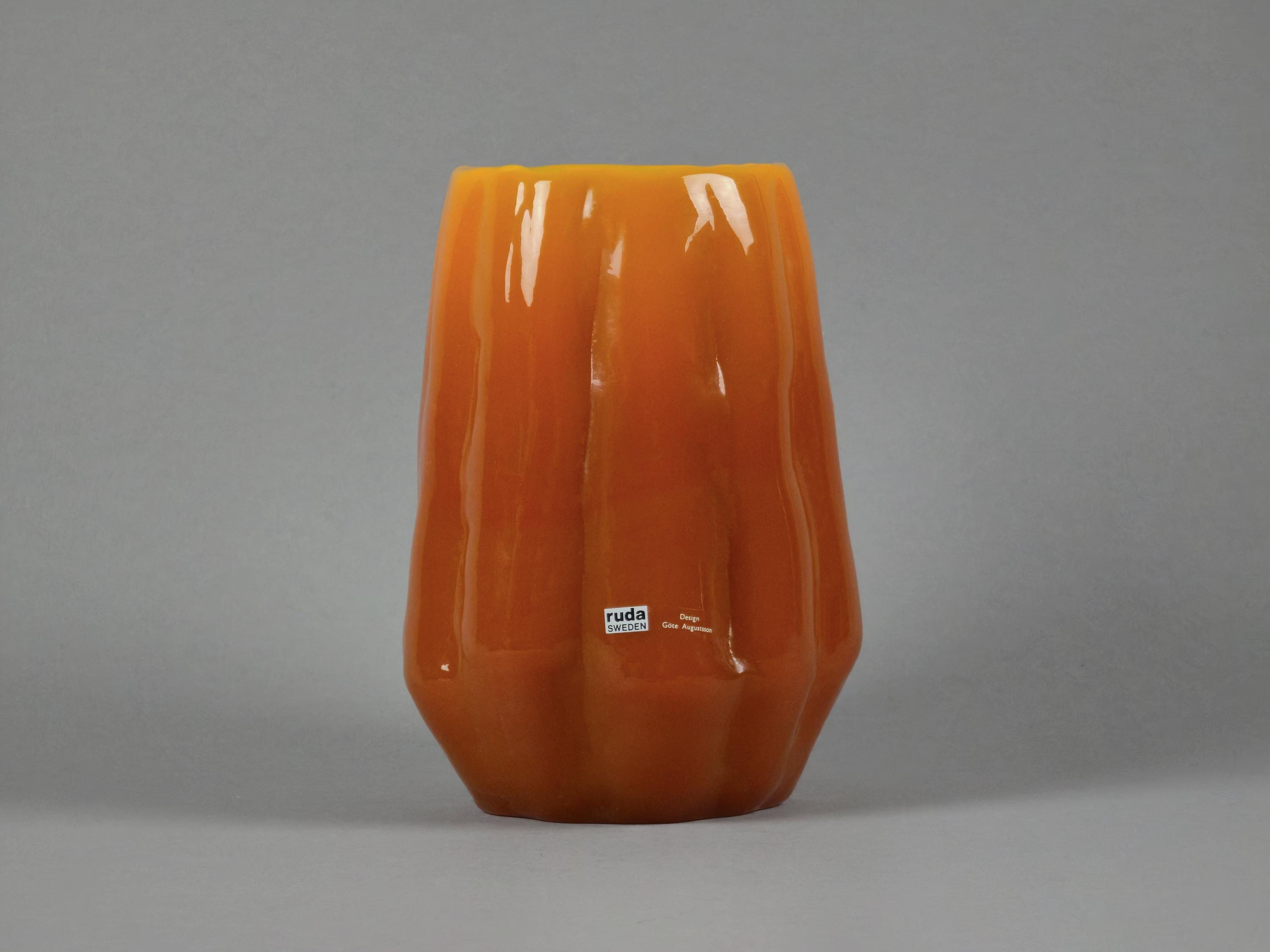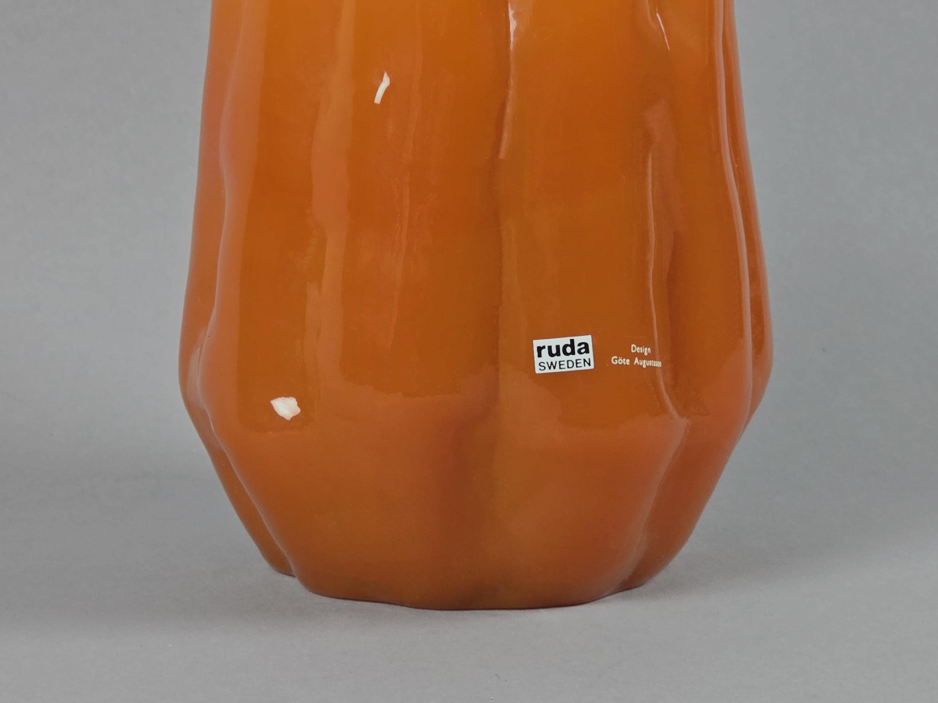 Vintage 1960s Swedish mid-century brutalist ceramic vase by Göte Augustsson for Ruda Glasbruk. The pieces were created using a unique carbon engraving technique, where hot glass was blown into soft carbon molds. This process resulted in a varied, uneven surface, making each piece unique.