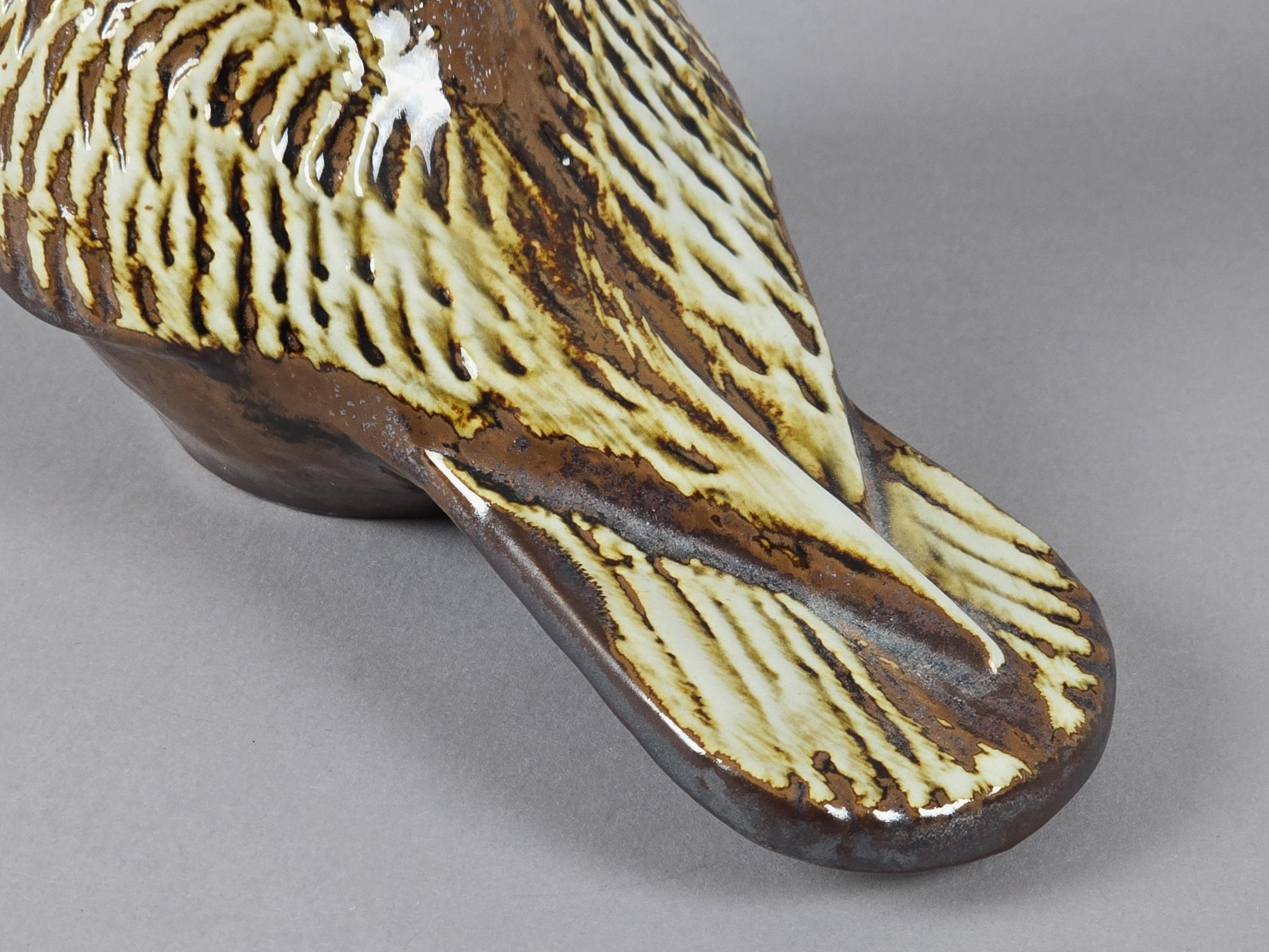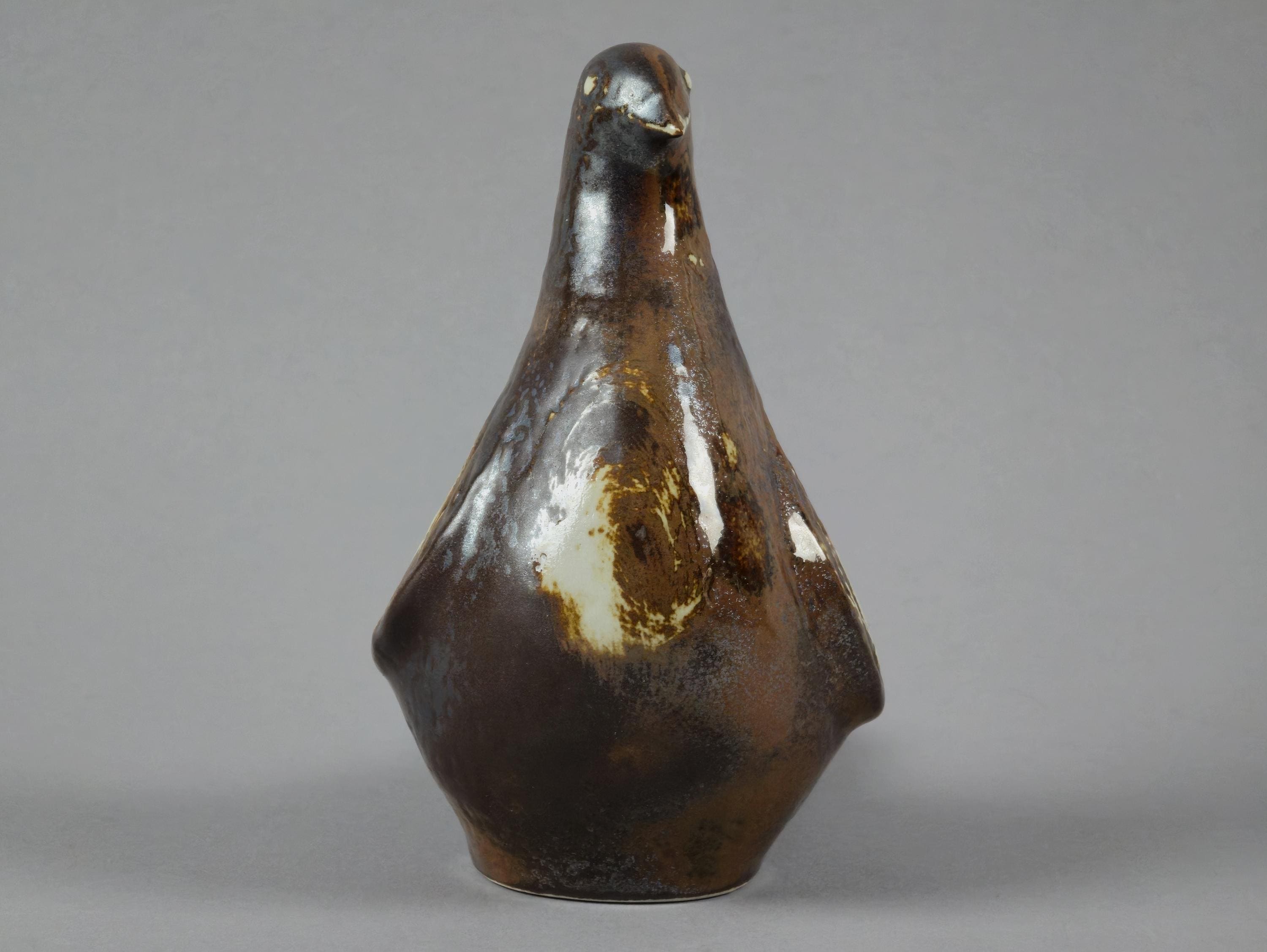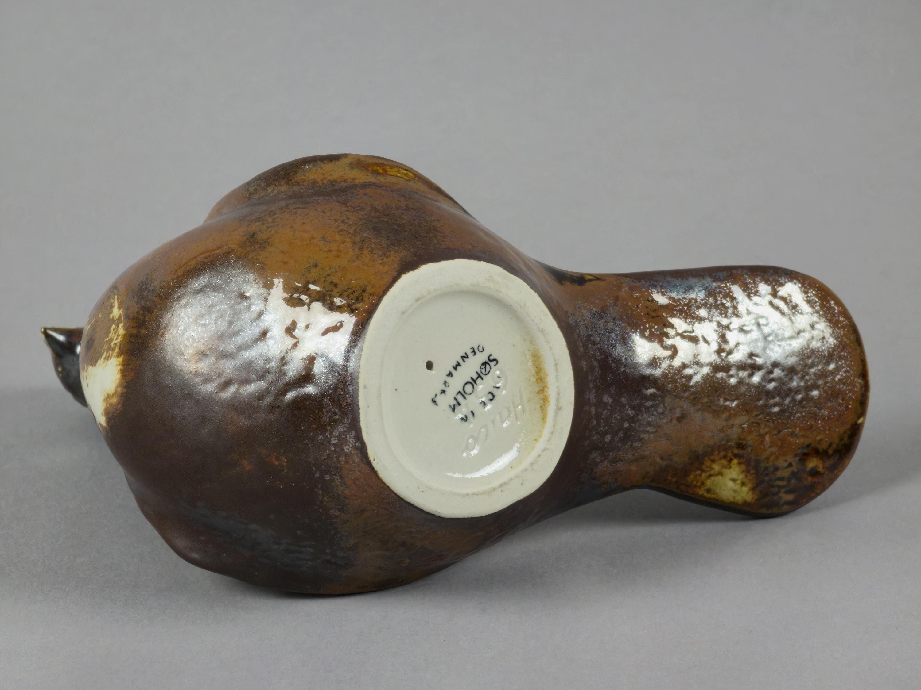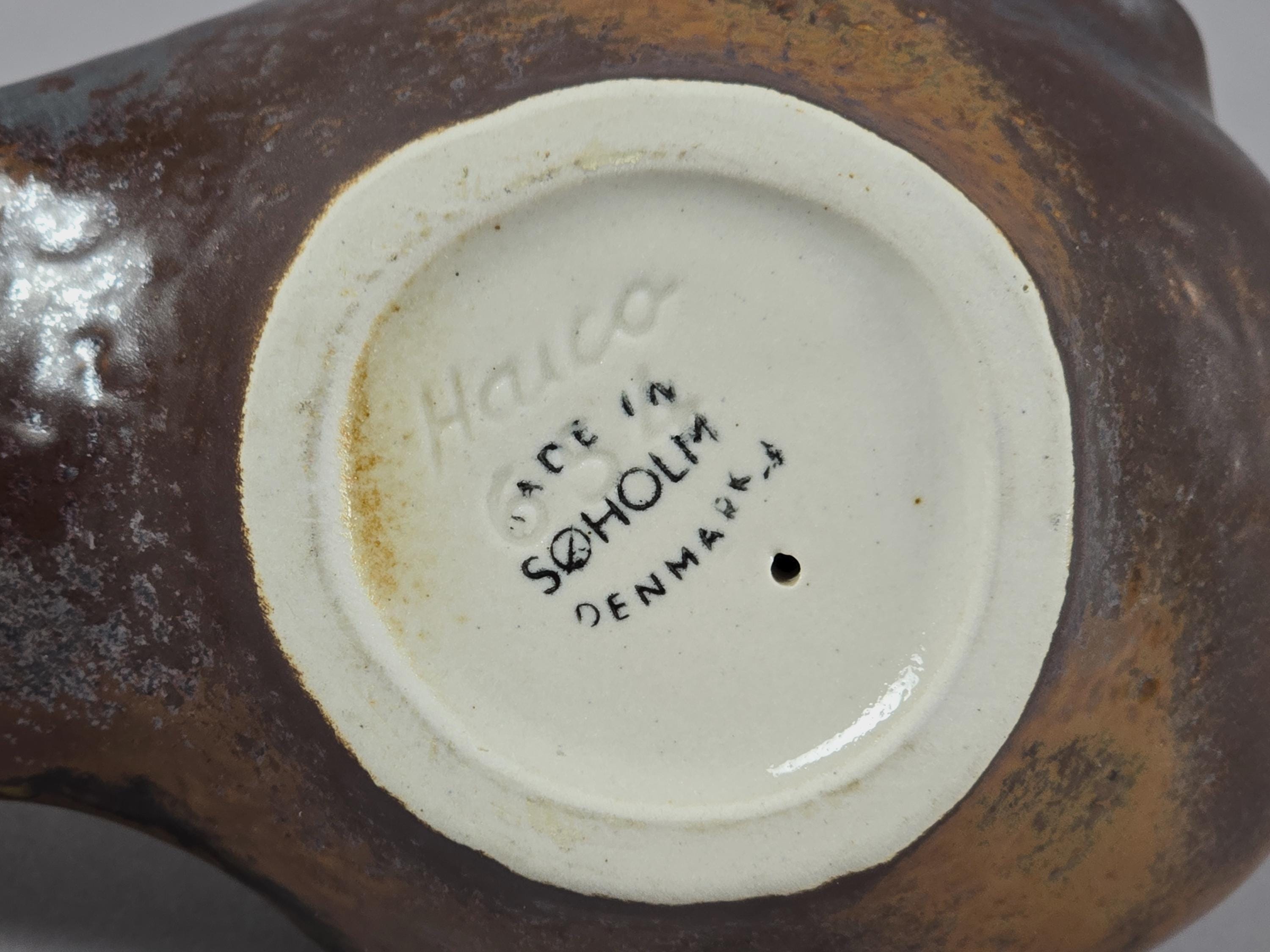 Vintage 1960s handmade Søholm ceramic dove sculpture by Haico Nitzsche. It showcases a stylized, abstract form characteristic of mid-century modern Scandinavian design.