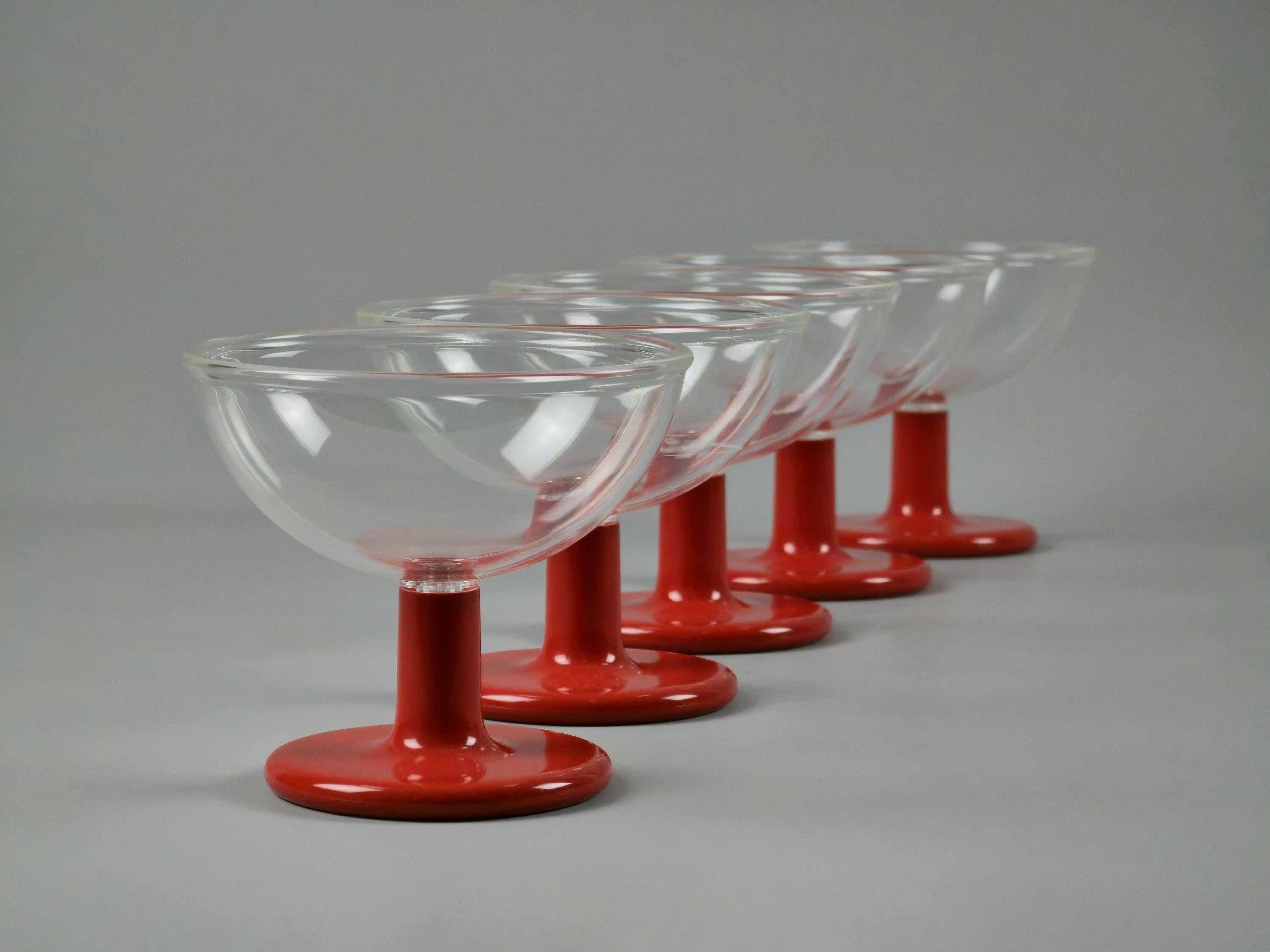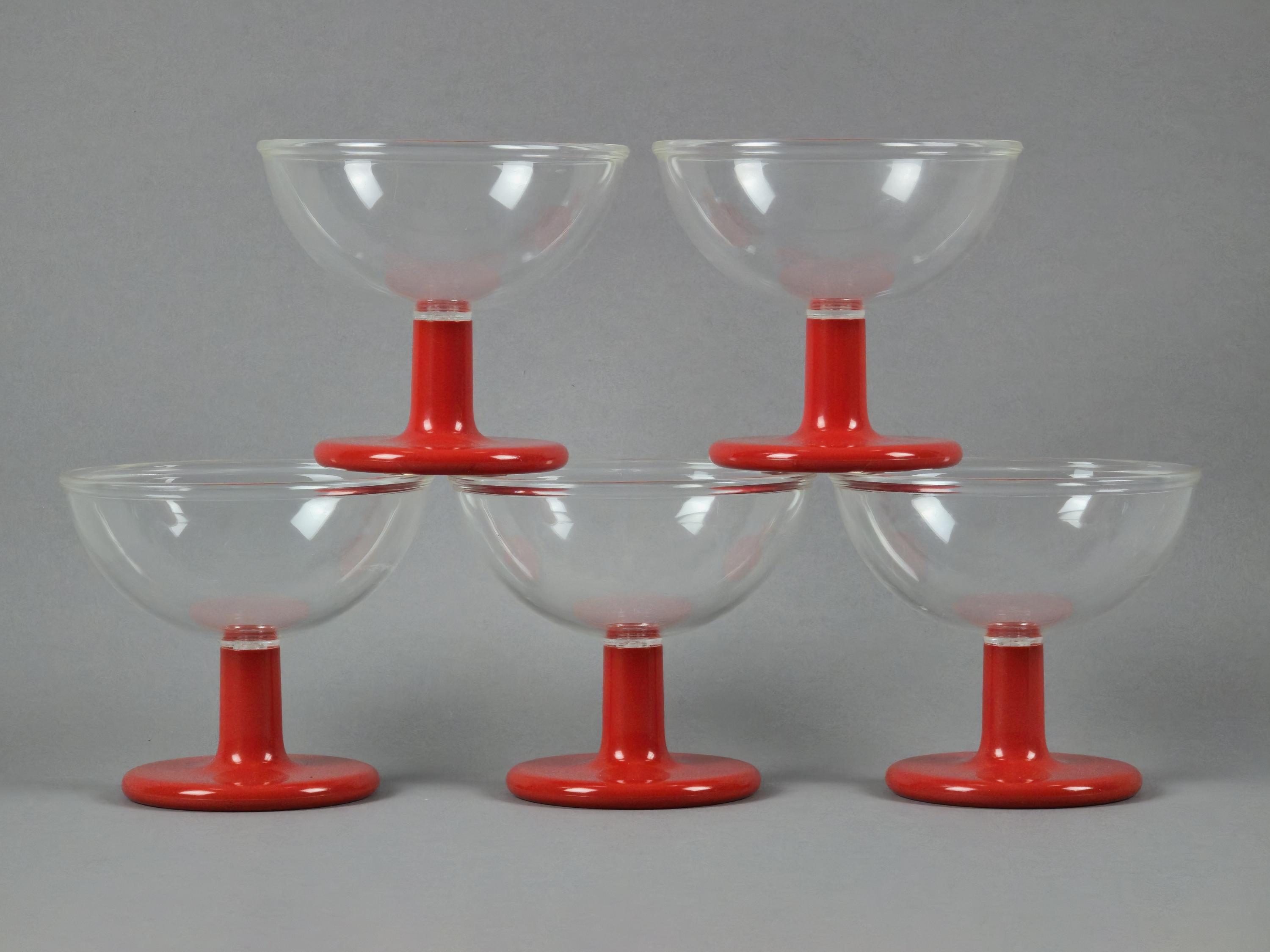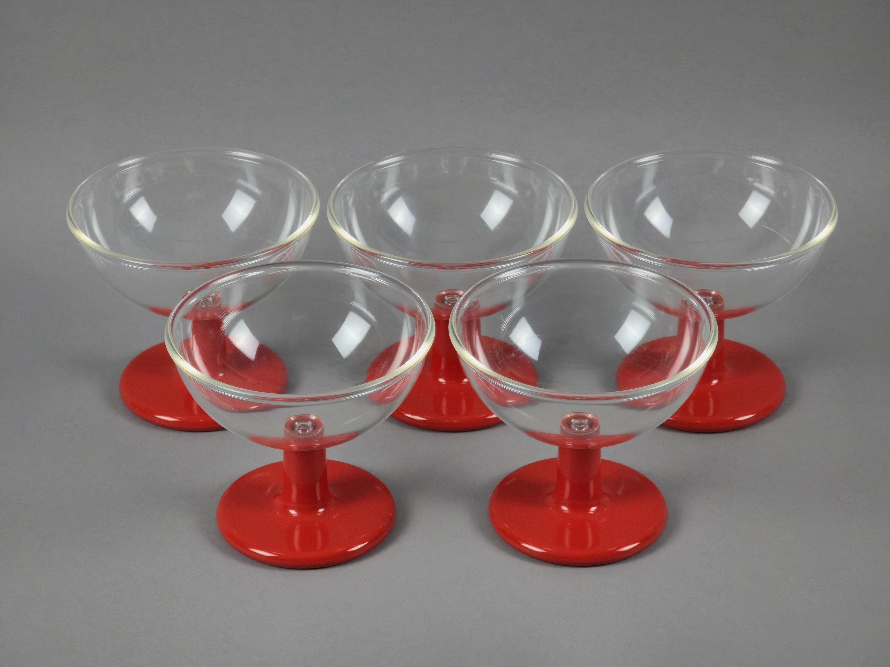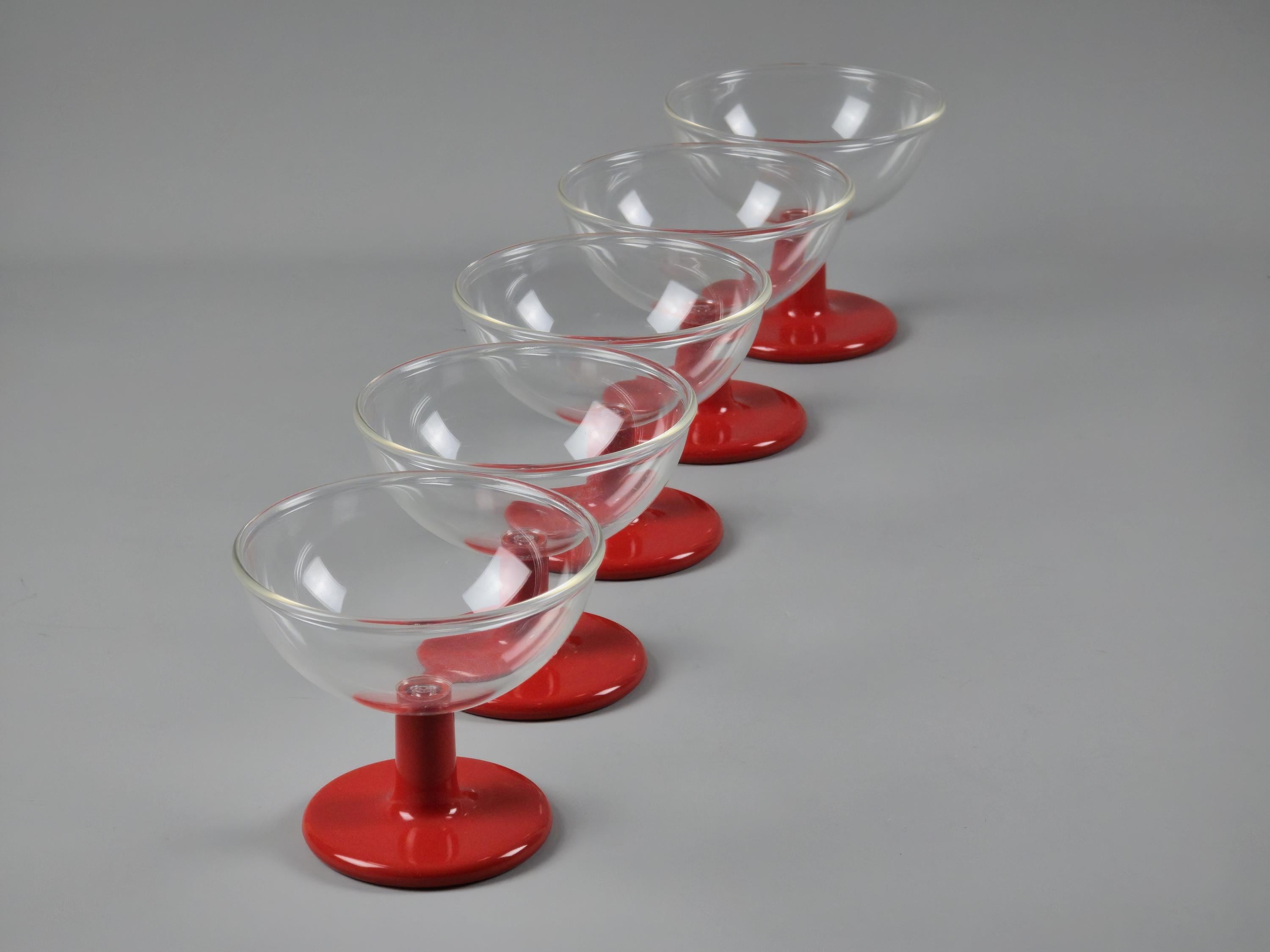 Vintage Italian-modernist set of 5 ice cream cups / dessert bowls 'Le Coppe' from the 1980s 'Linea Due' series by Pino Spagnolo for Biesse Italy.