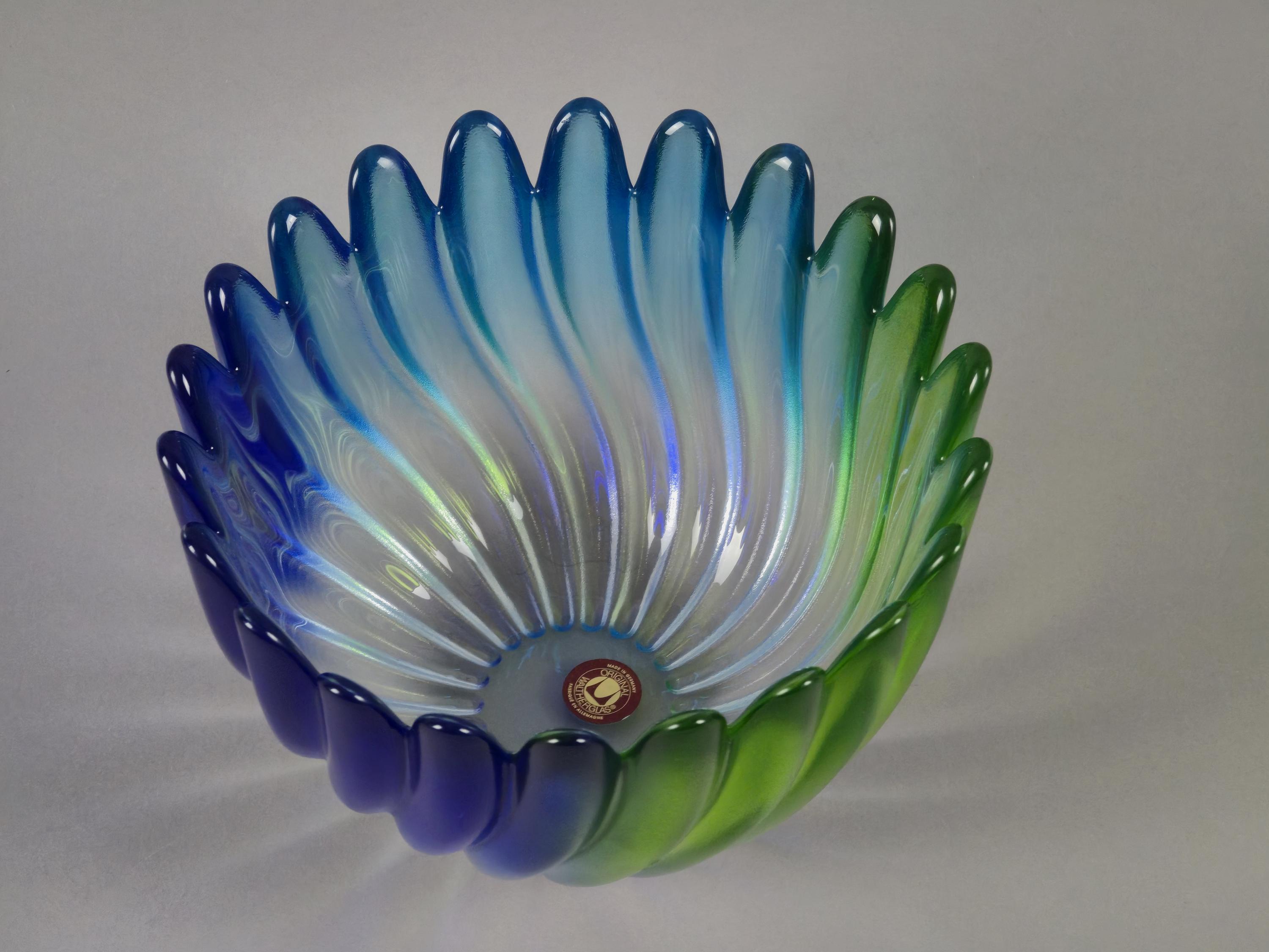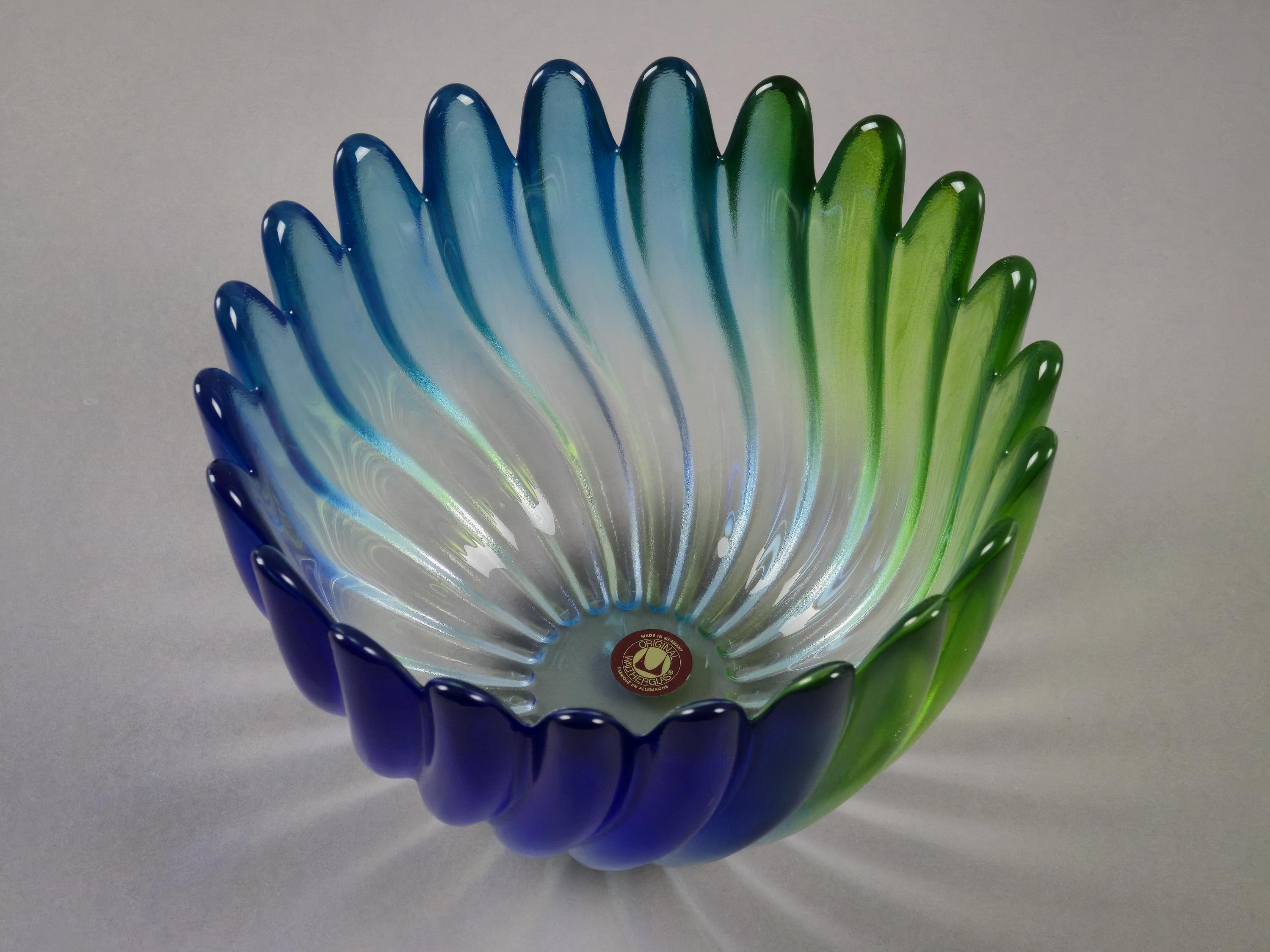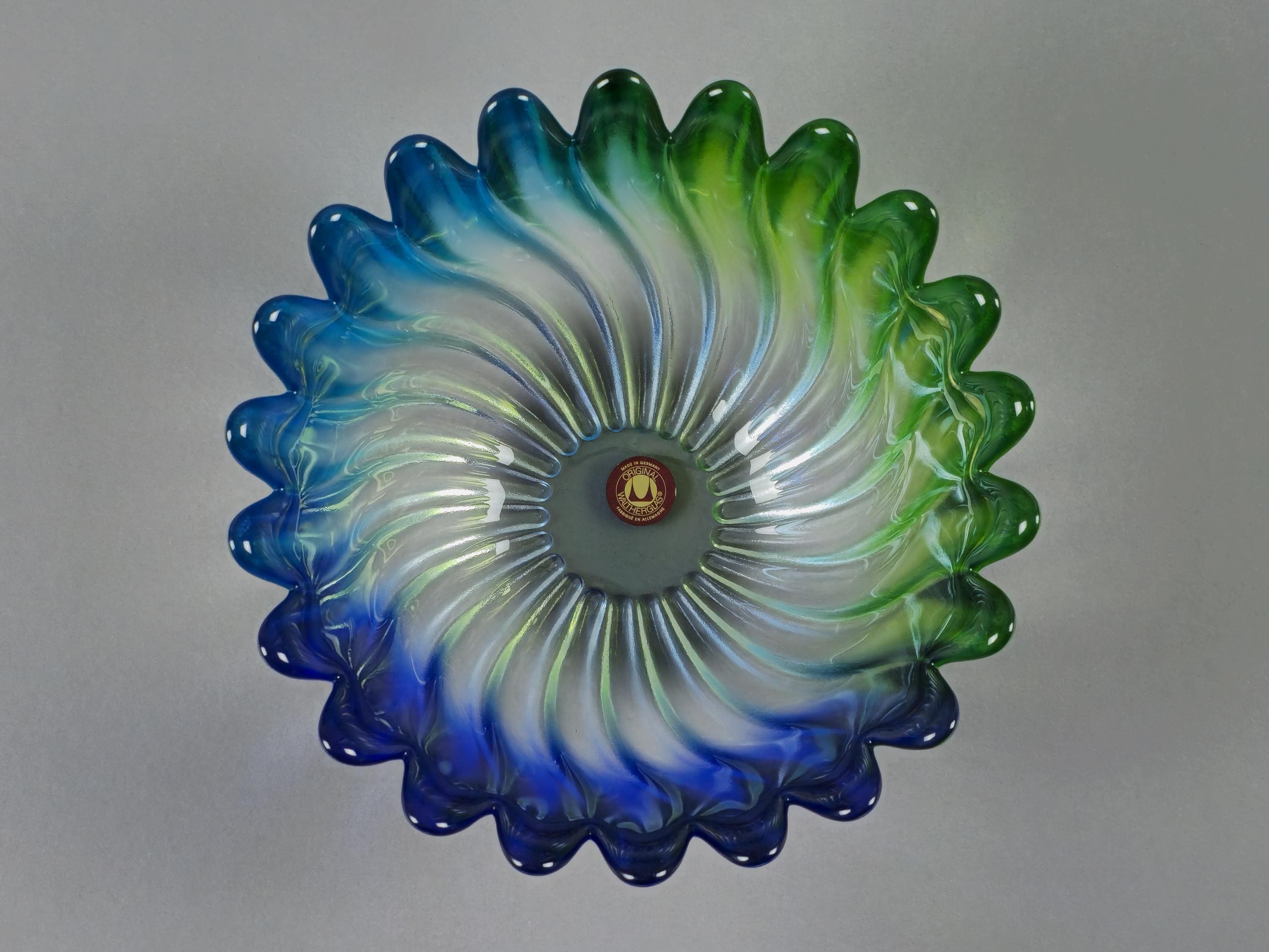 Vintage 1980s Walther Glas 'Solaris' Art Glass Swirl Bowl By Walther Liebenstern.