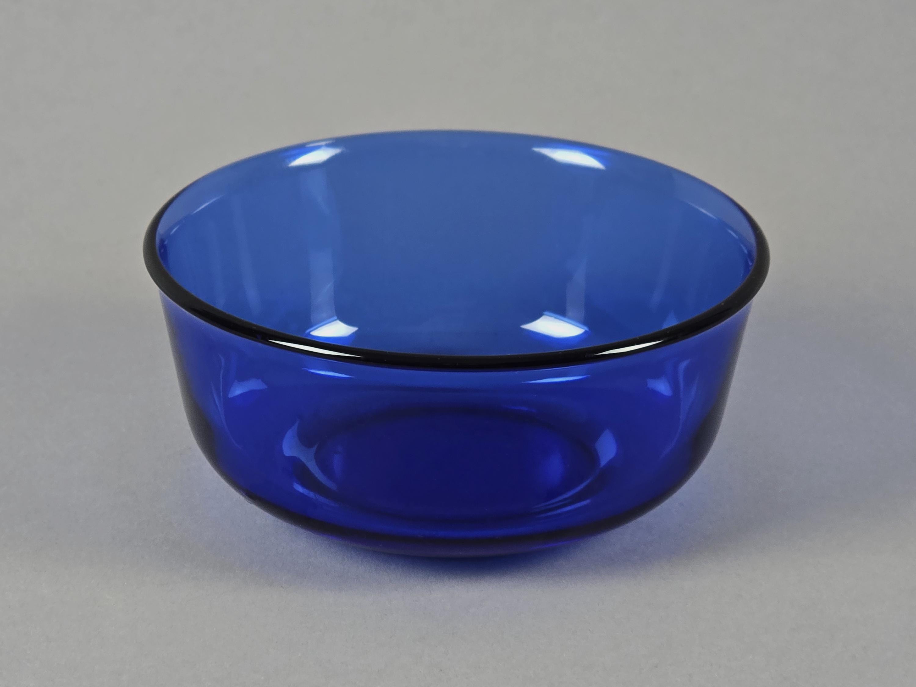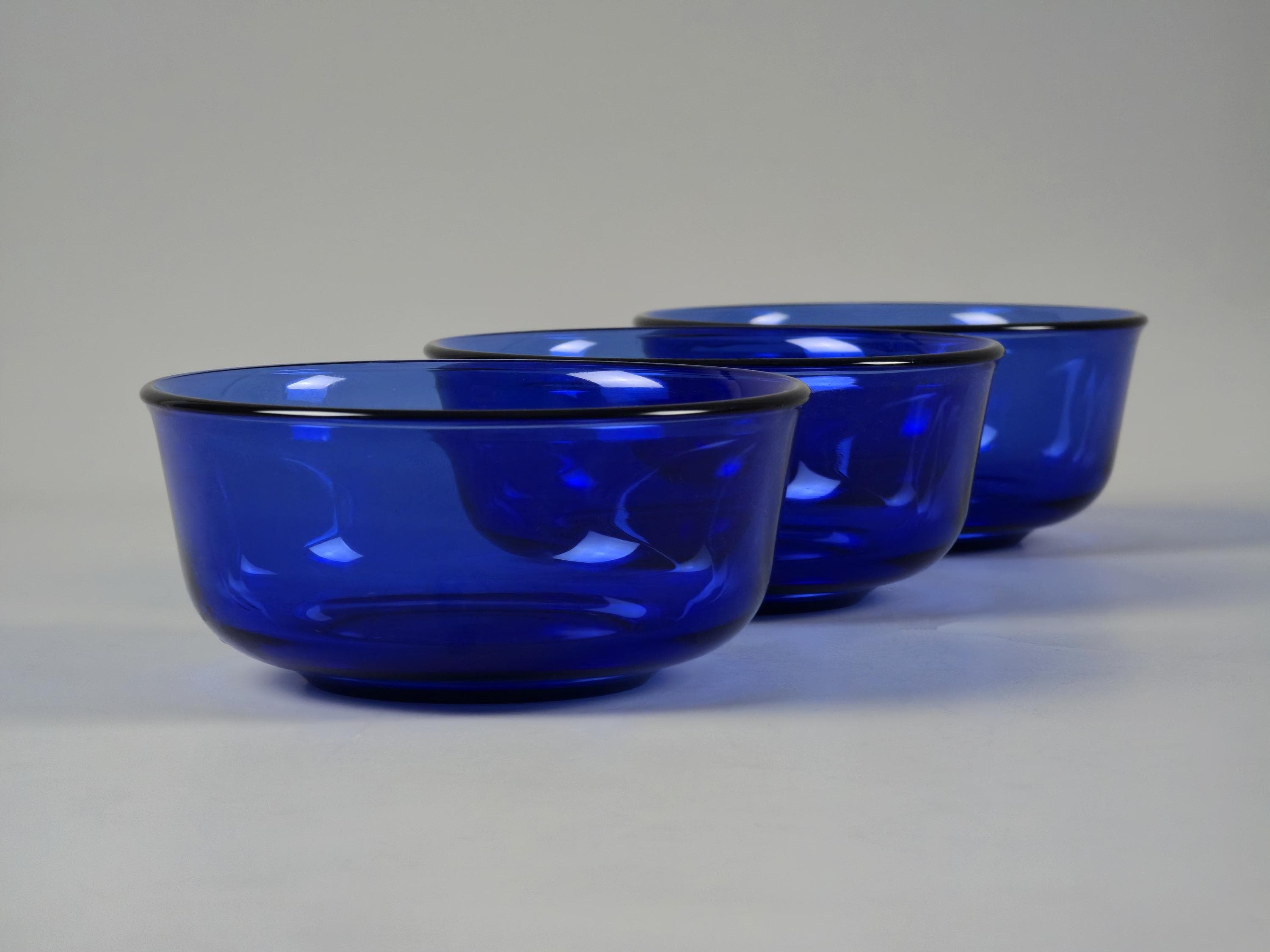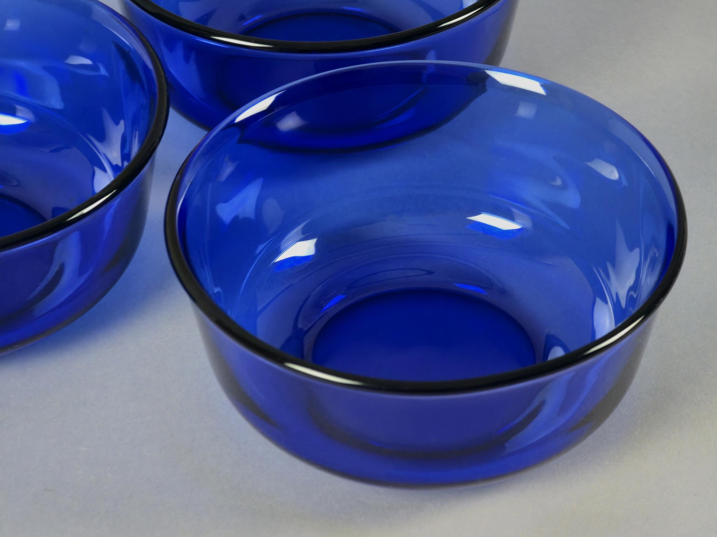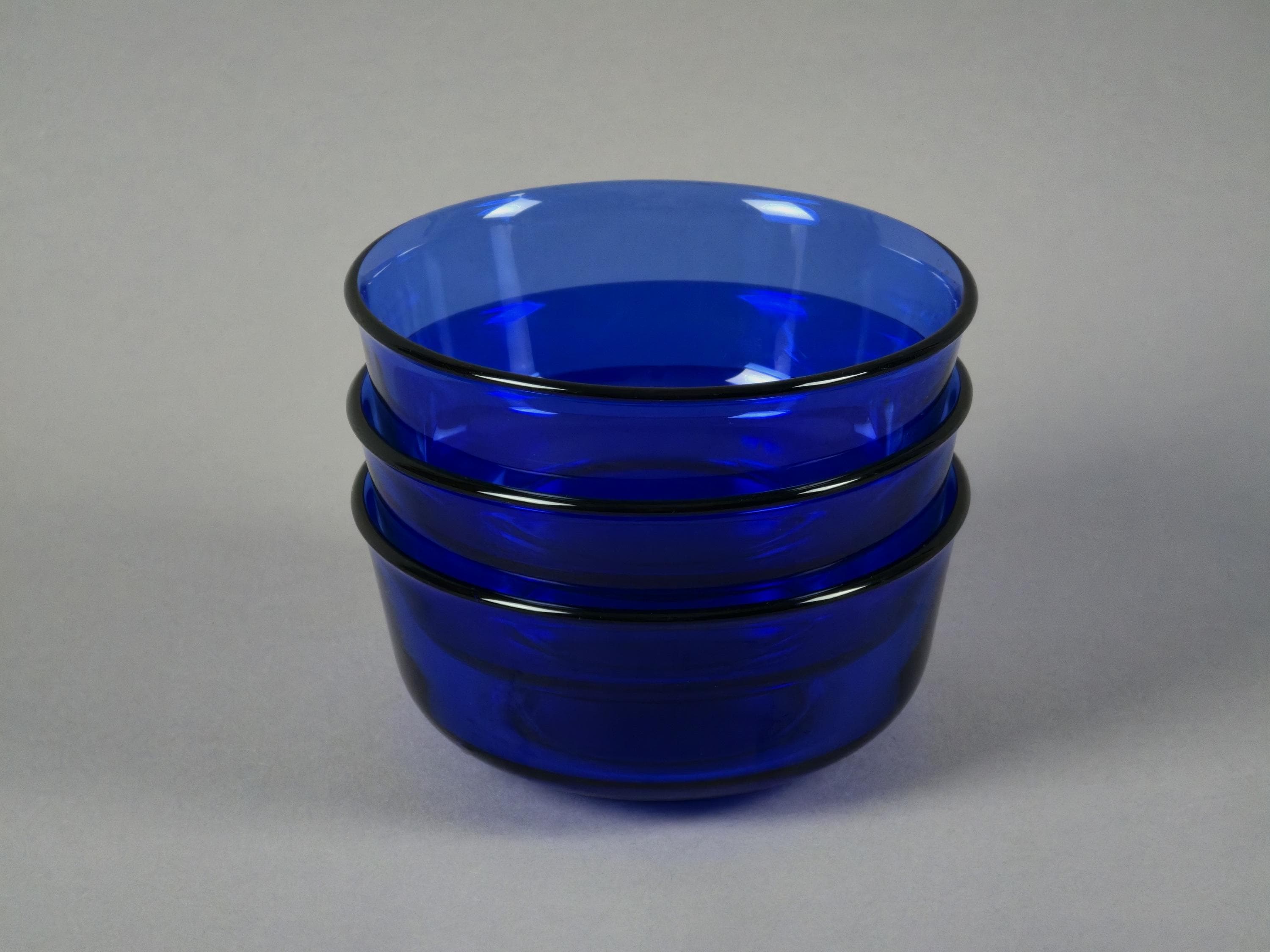 Vintage 1970s Set Of 3 Arcoroc France Cobalt-Blue Stackable Glass Bowls.