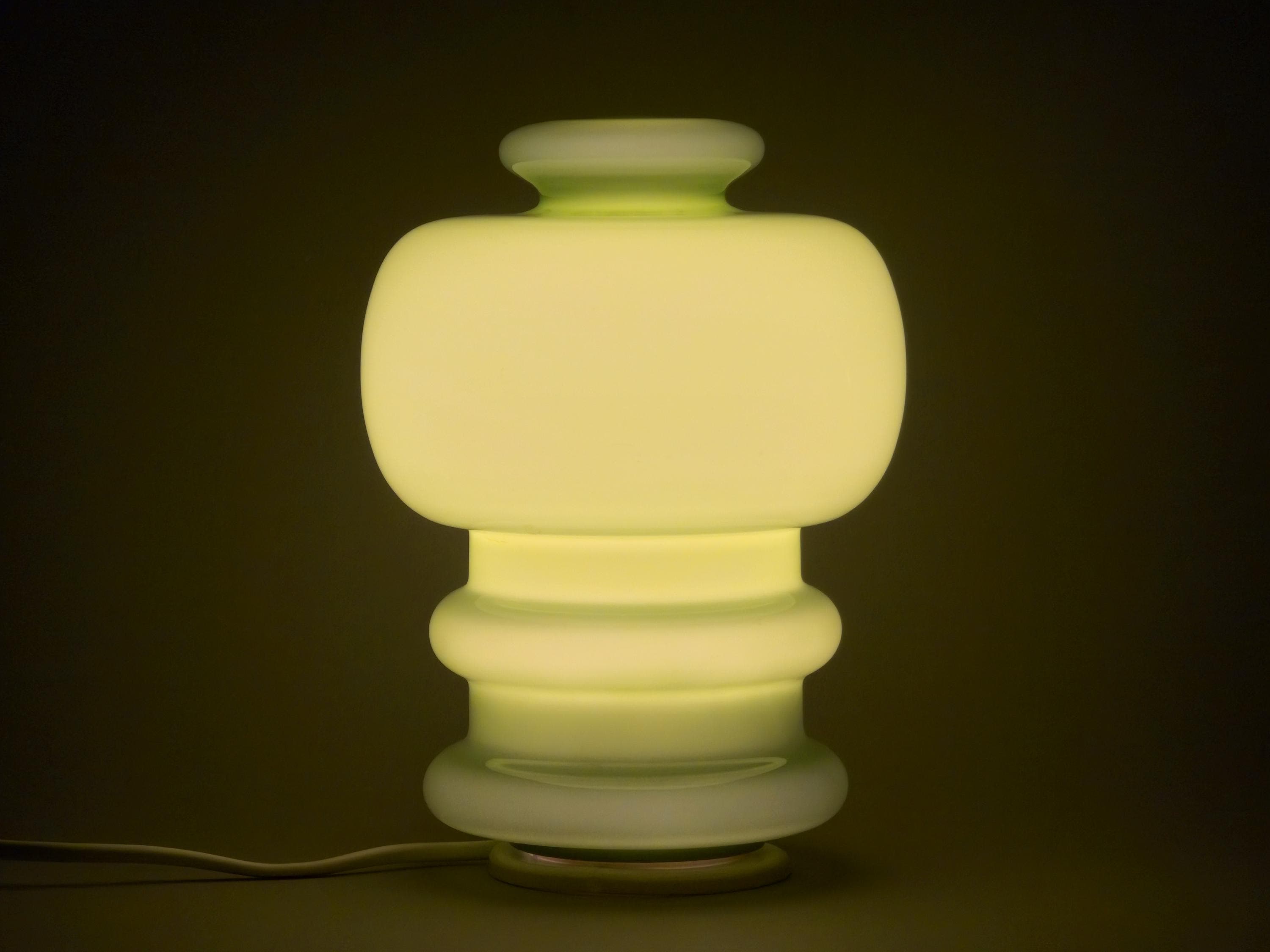 Vintage 1970s Green Cased-Glass Mushroom Lamp From Sweden.