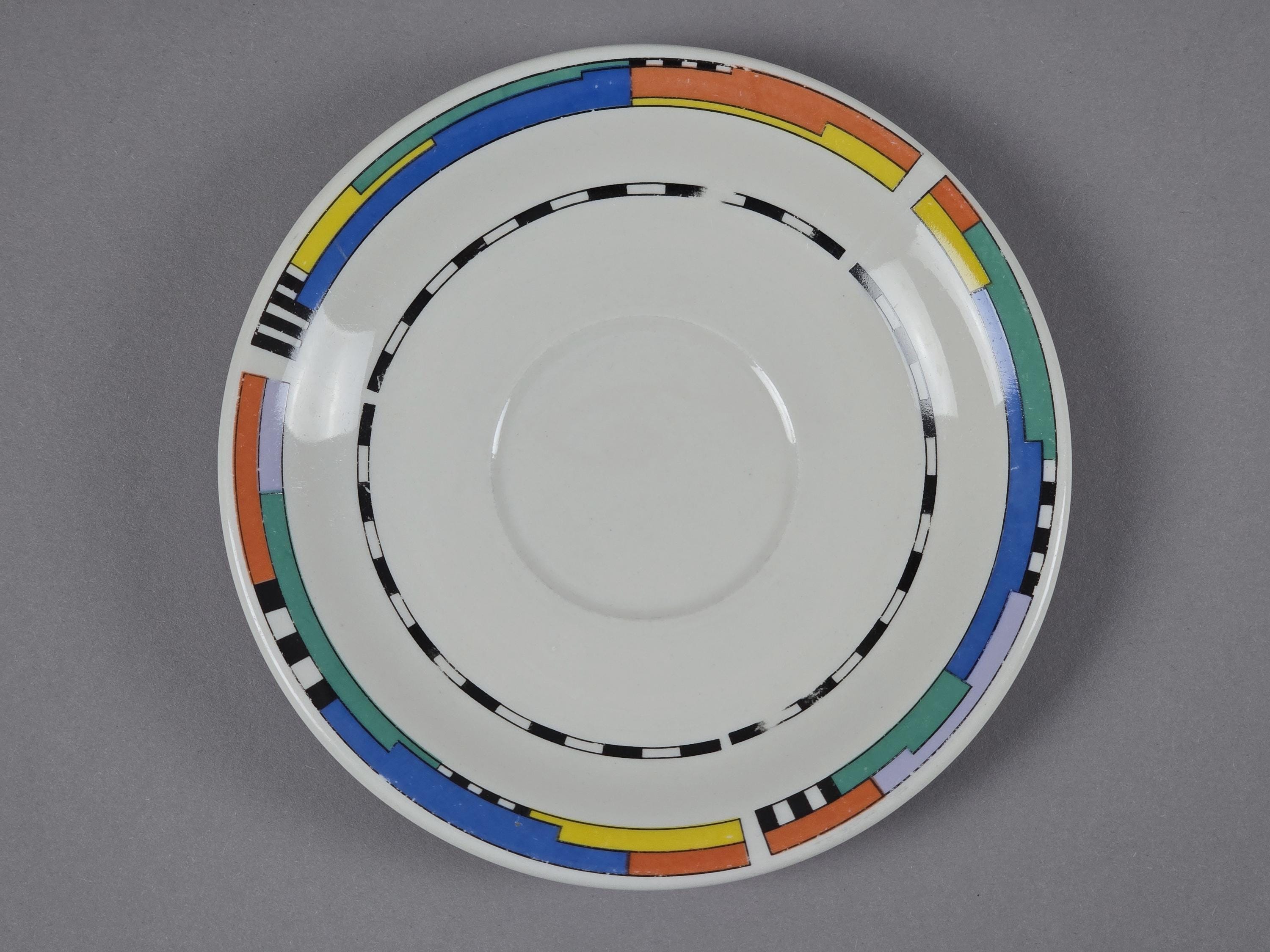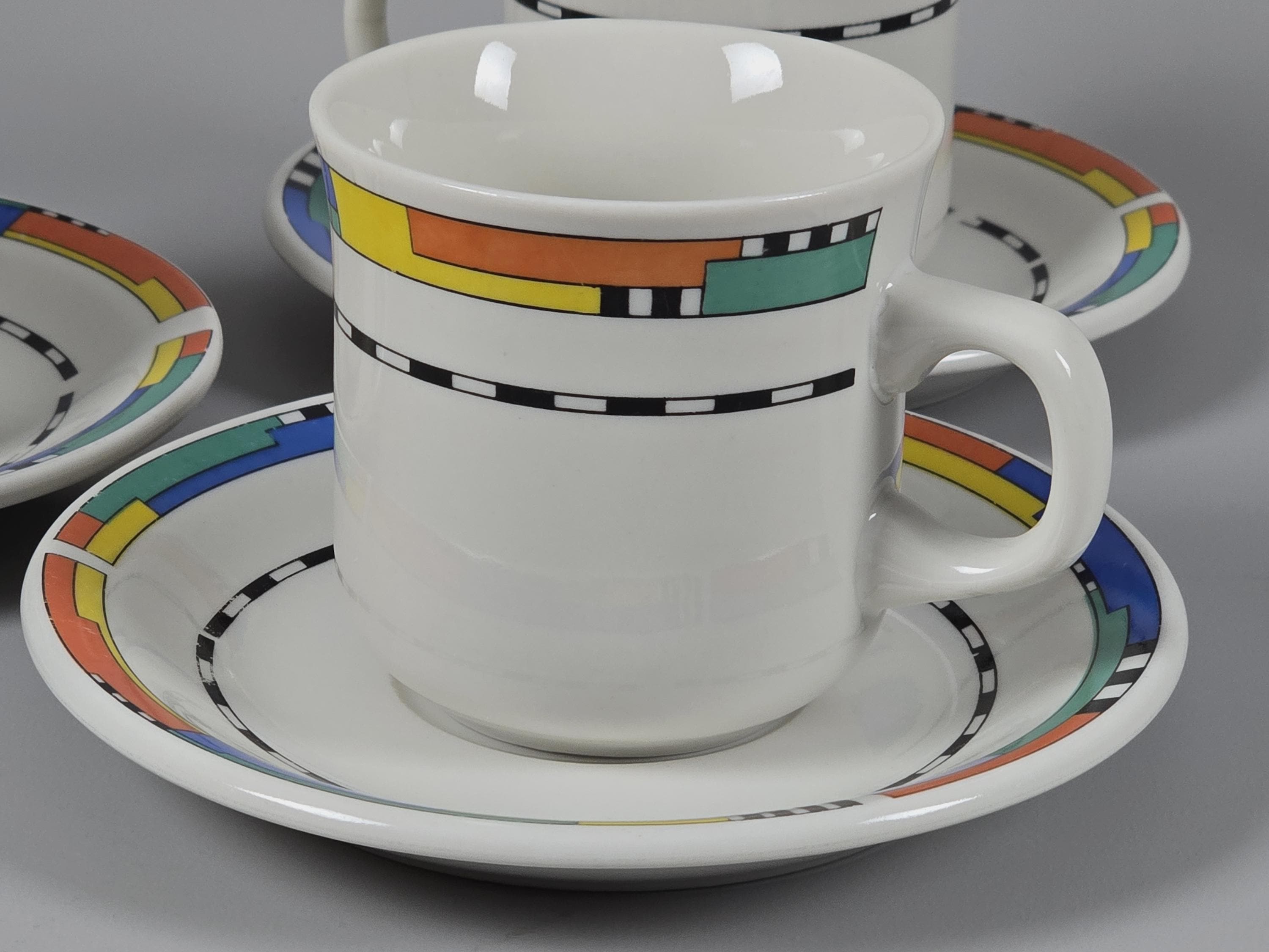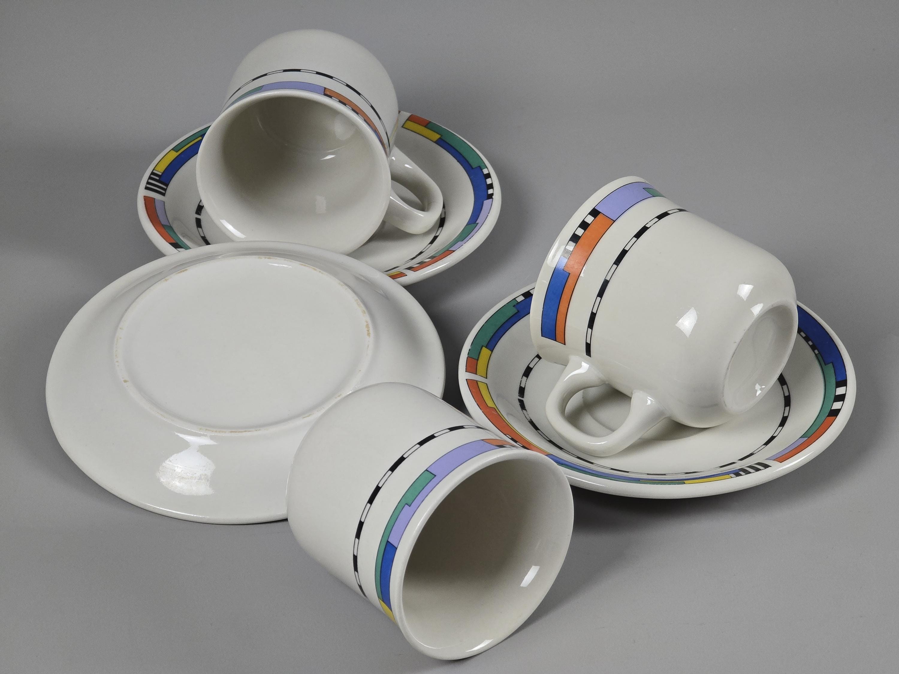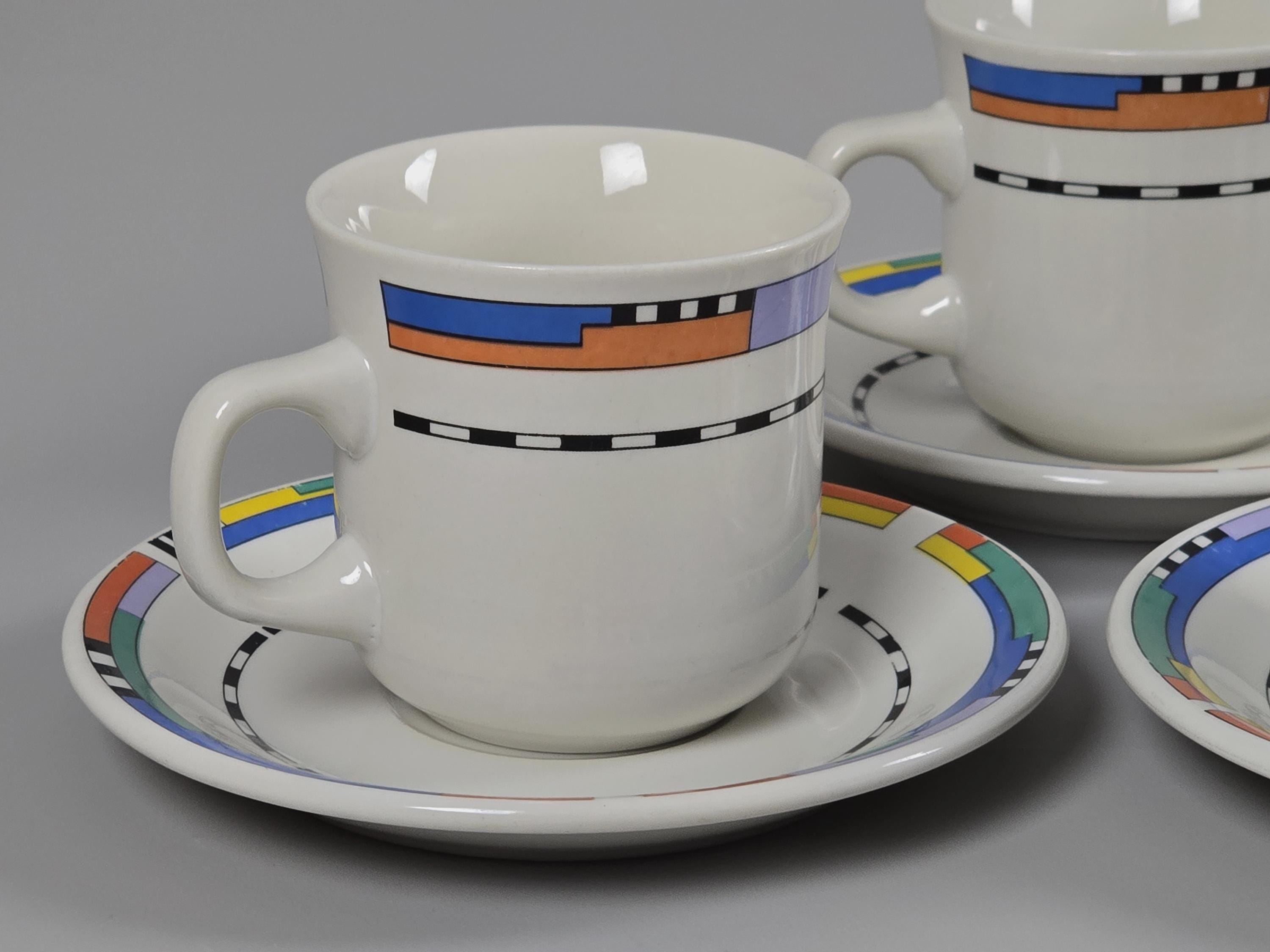 Vintage 1980s Set Of 3 Postmodern Cups With Saucers, Memphis Style.
