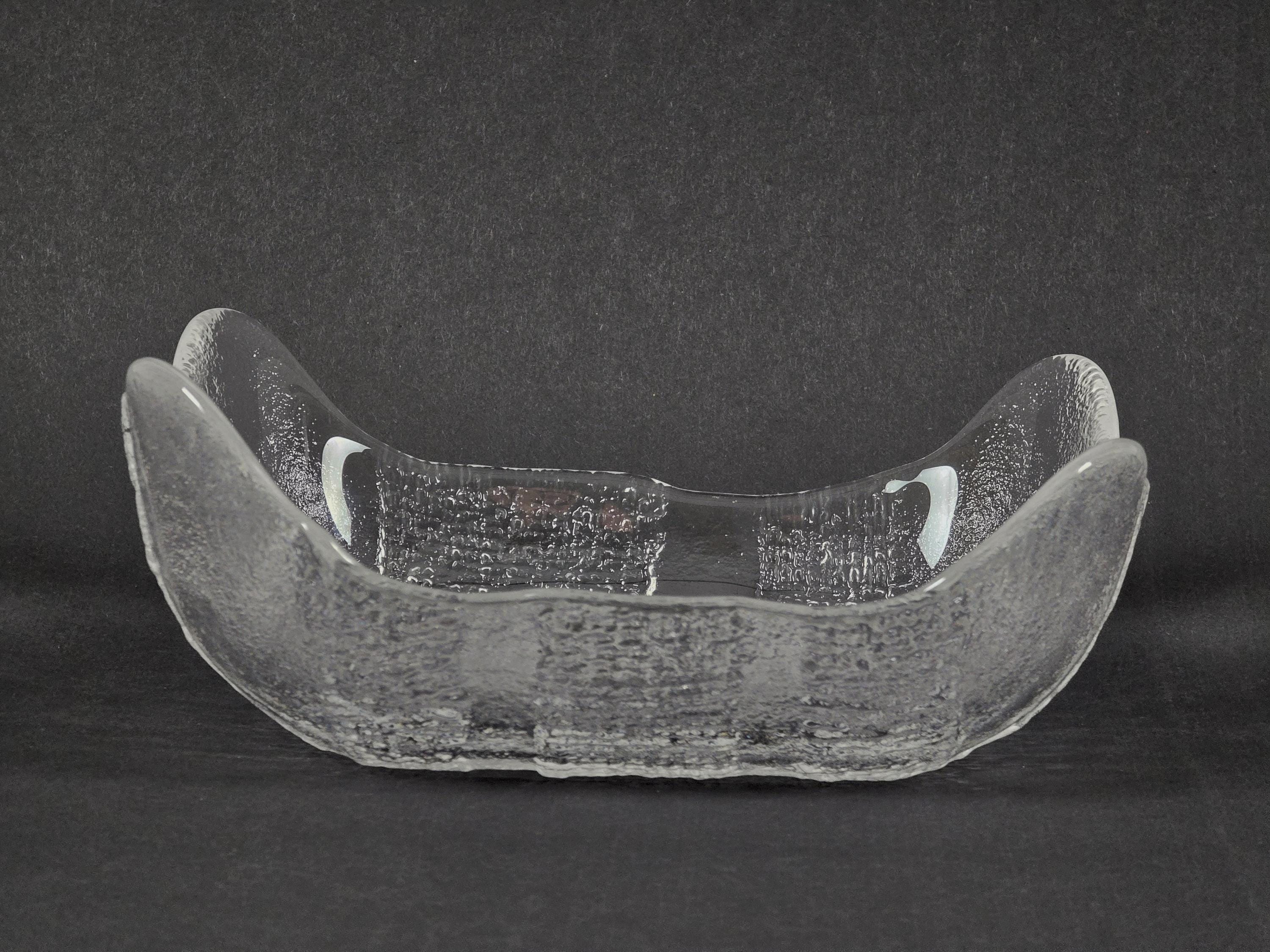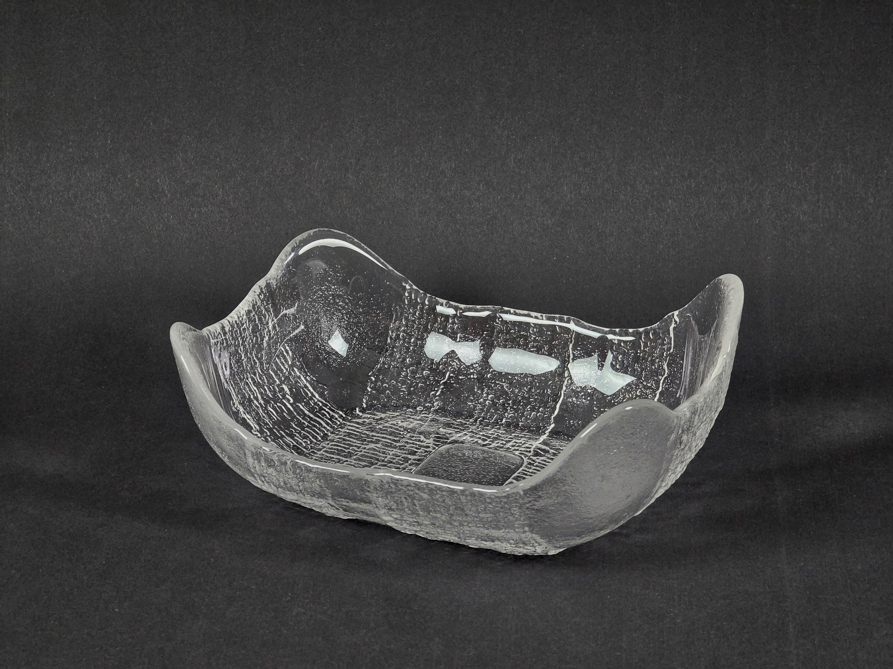 Vintage 1970s Swedish Glass Bowl By Christer Sjögren For Lindshammar Glasbruk.
