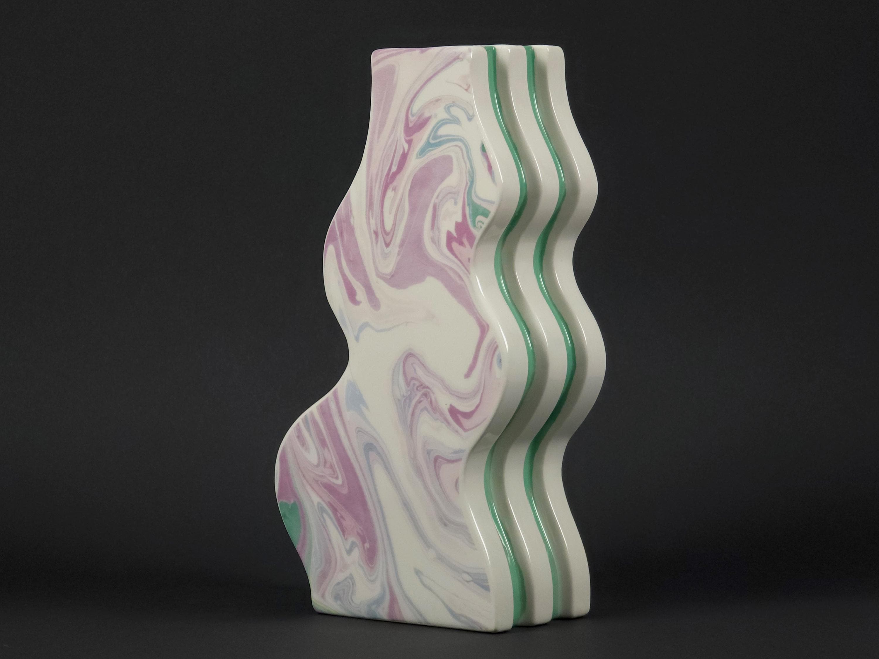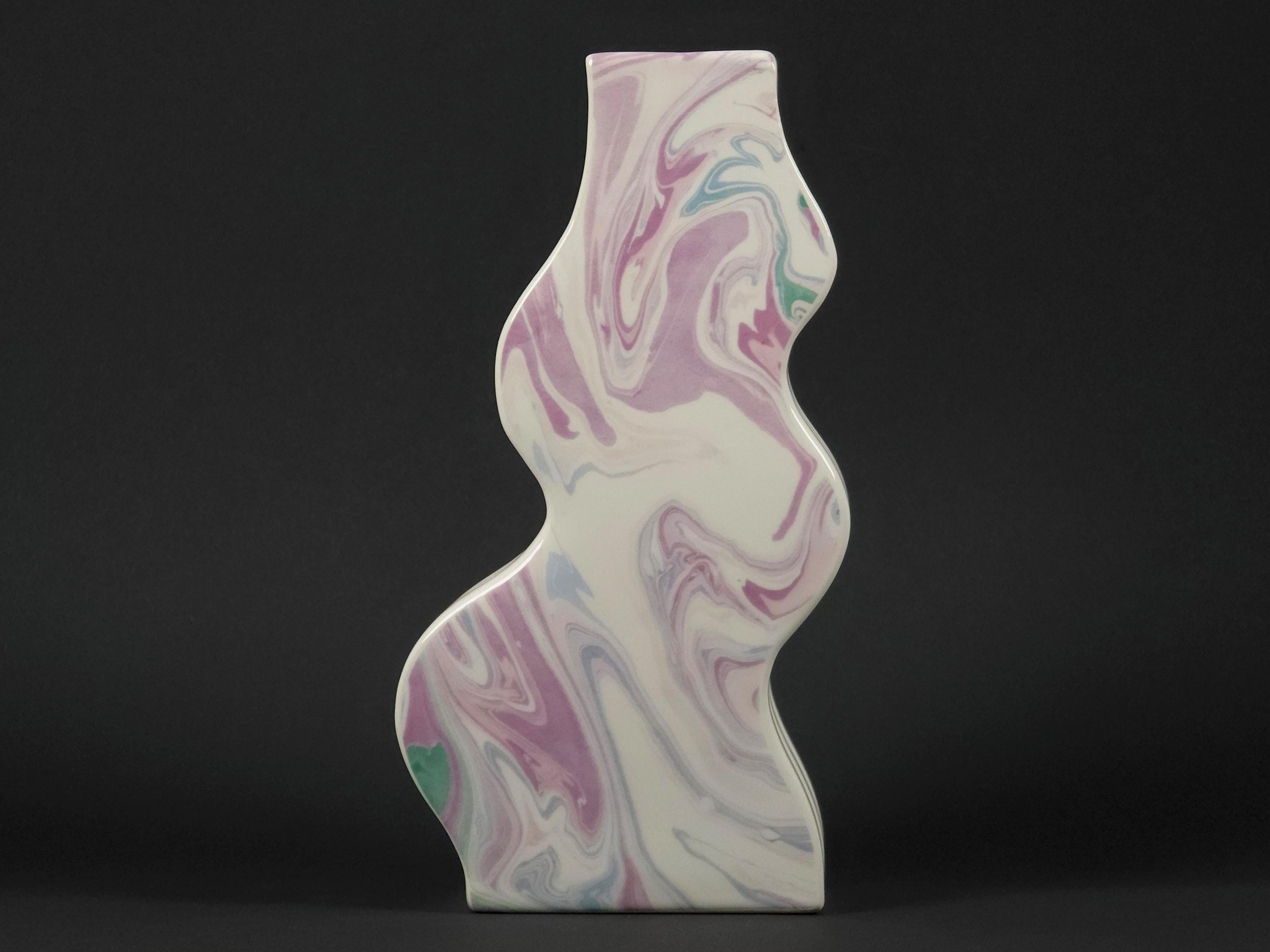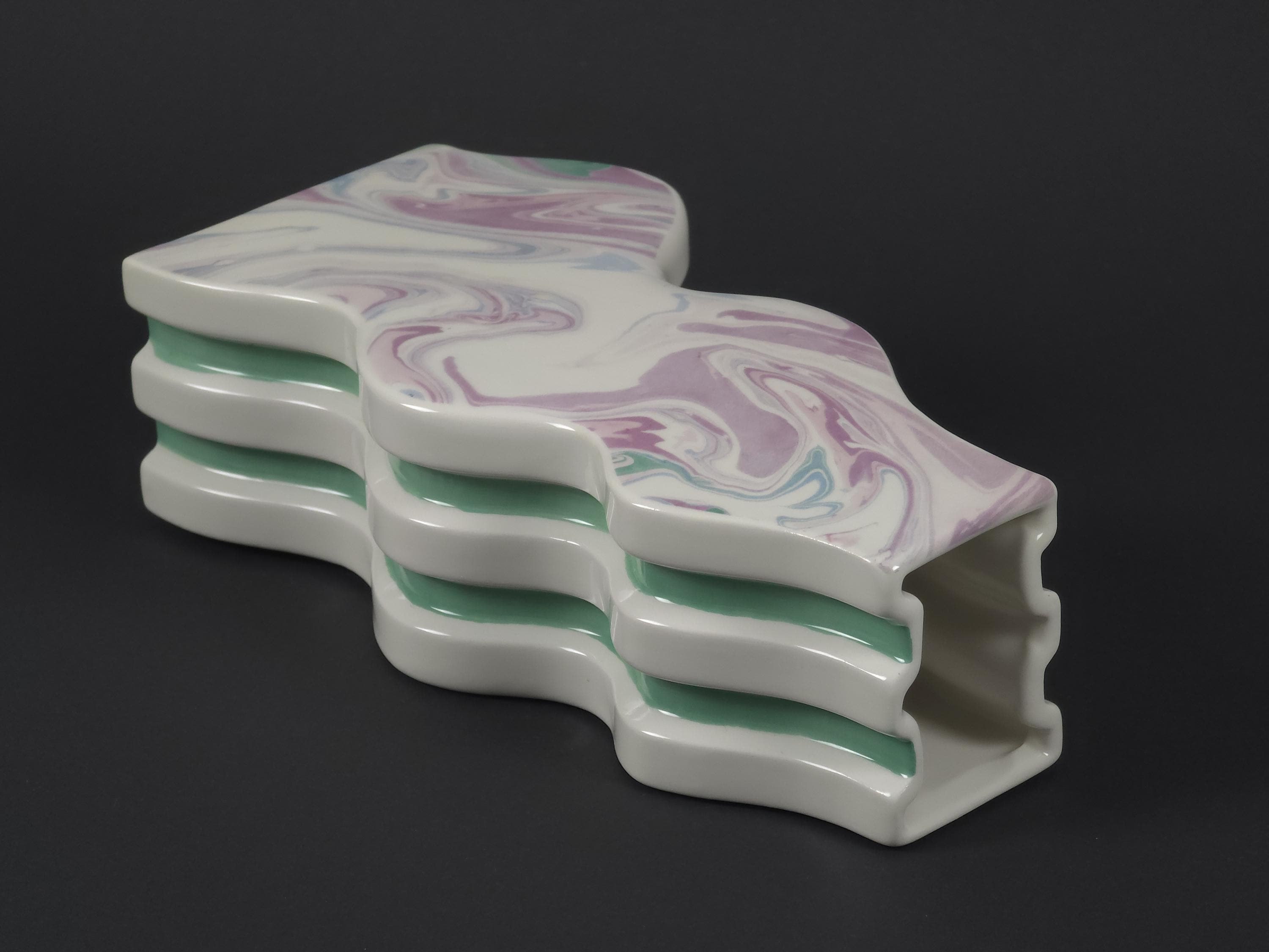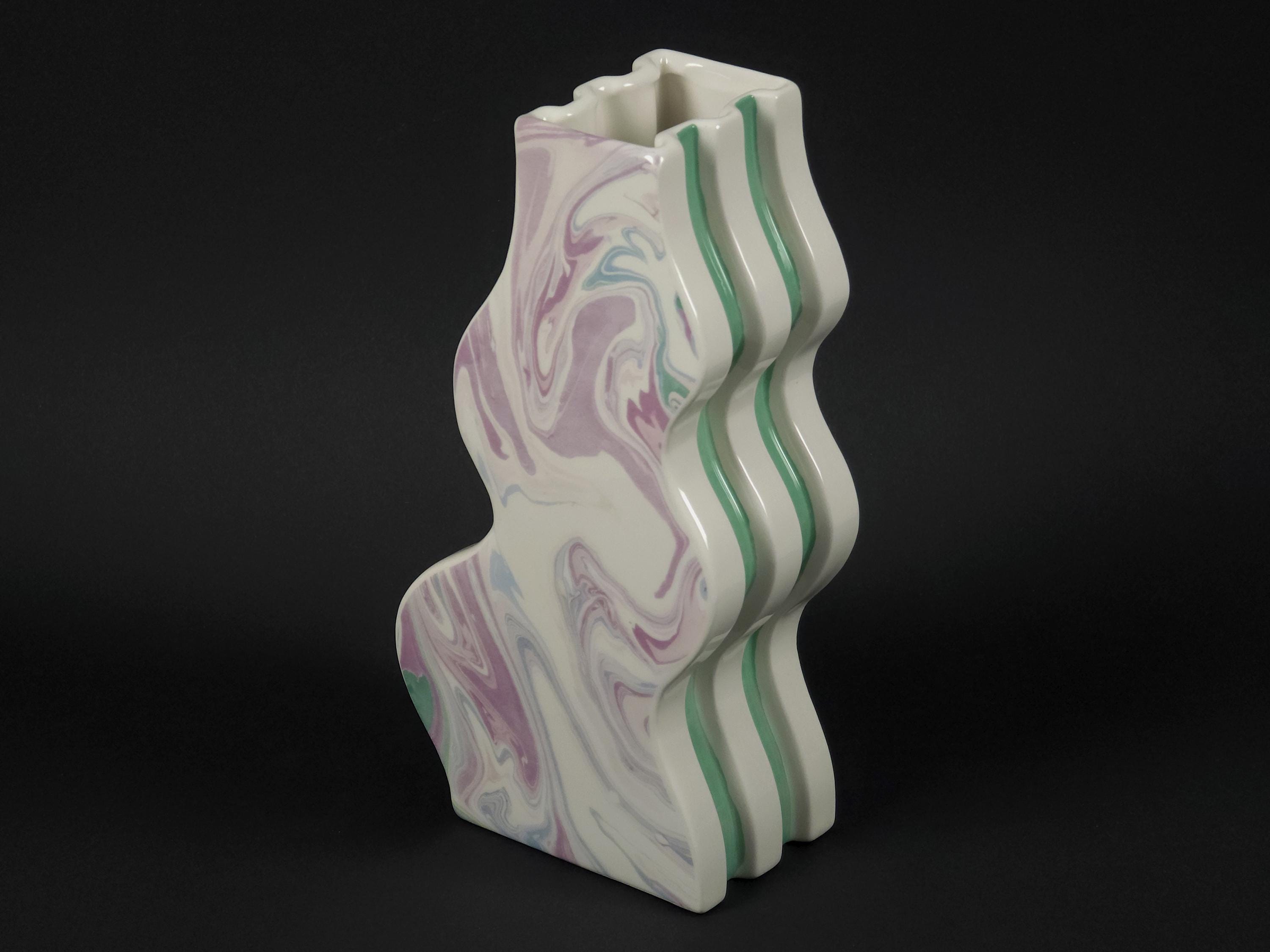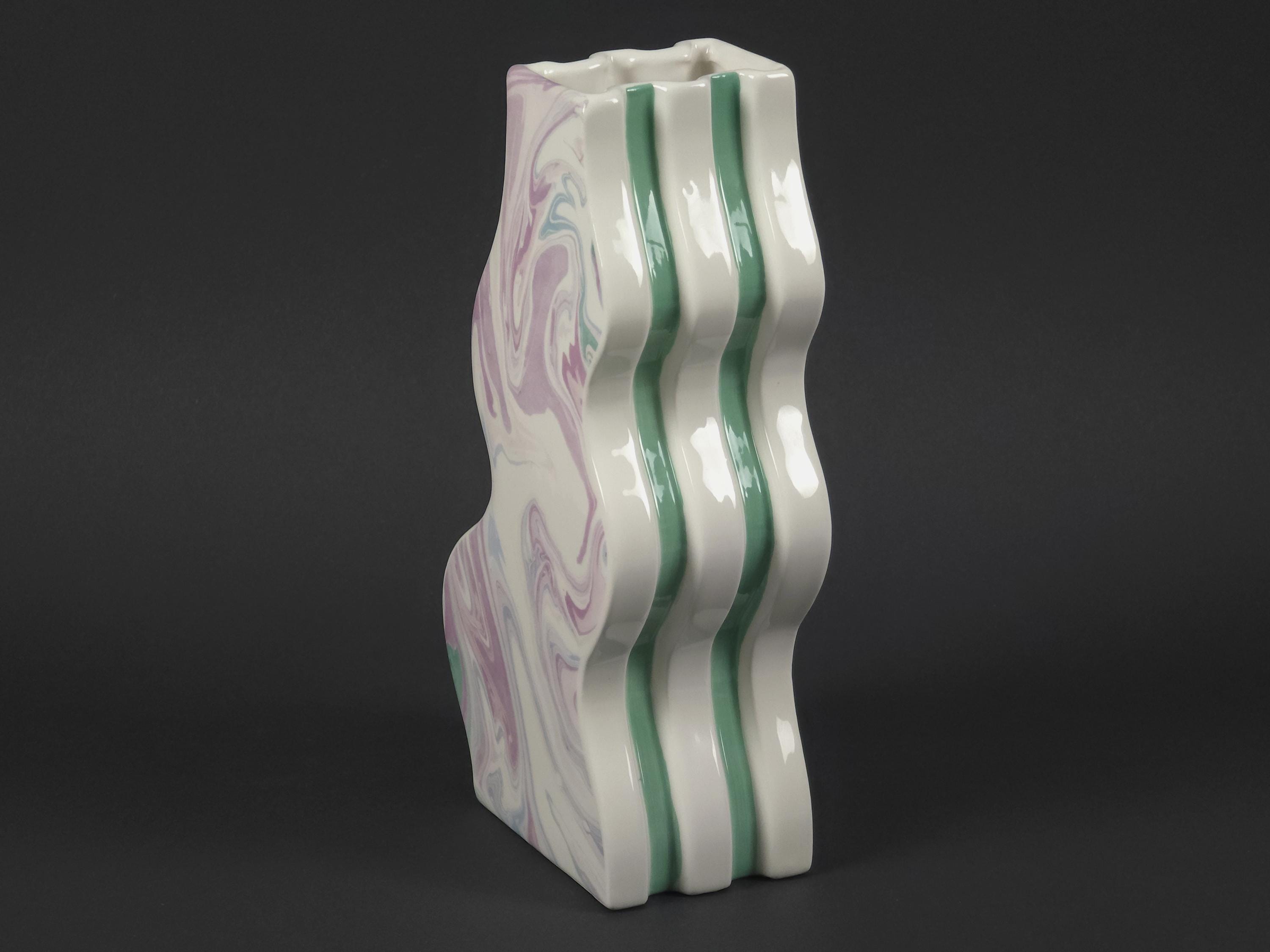 Nerikomi Style Postmodern Wiggly Sculptural Avant-Basic Ceramic Vase.