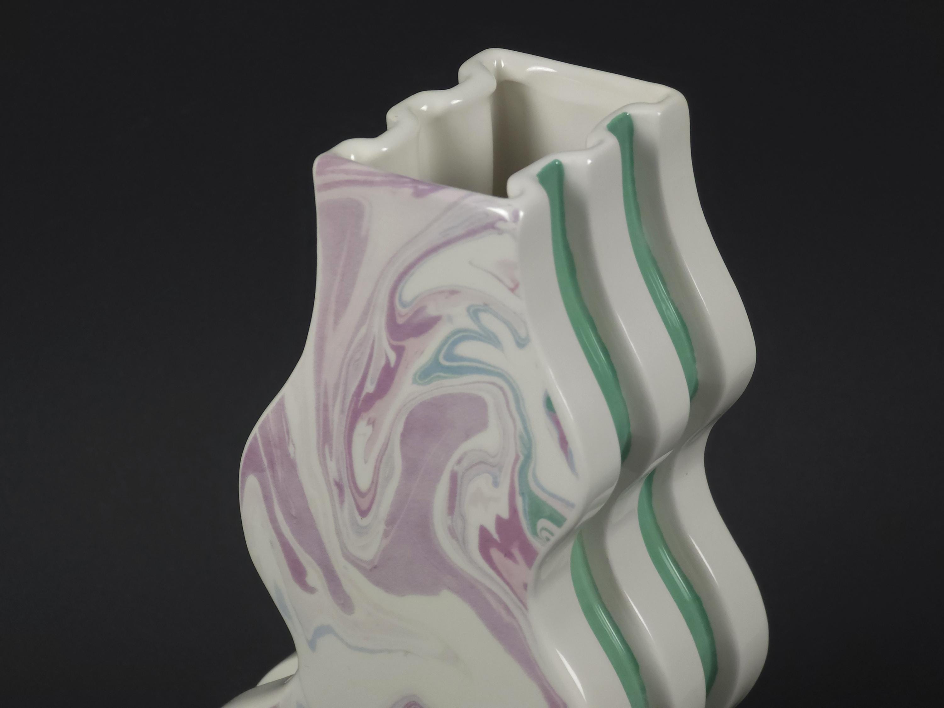 Postmodern ceramic vase featuring a highly sculptural, "wiggly" silhouette that is very much in line with Danish Pastel and Avant-Basic aesthetics.