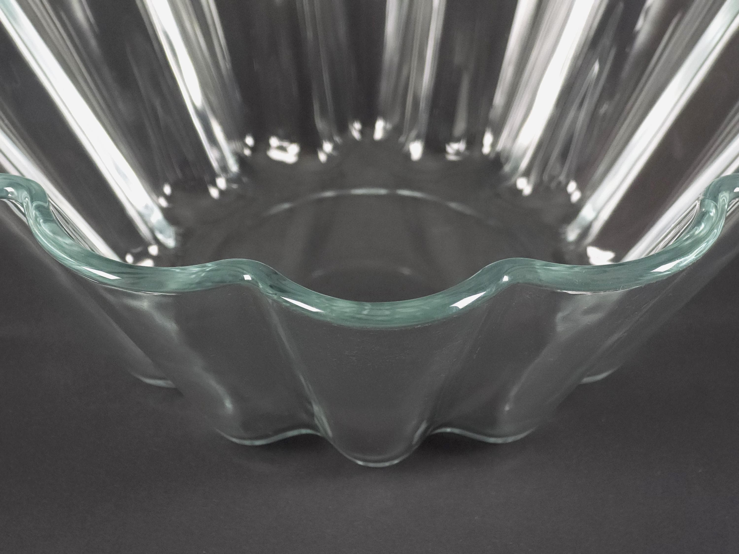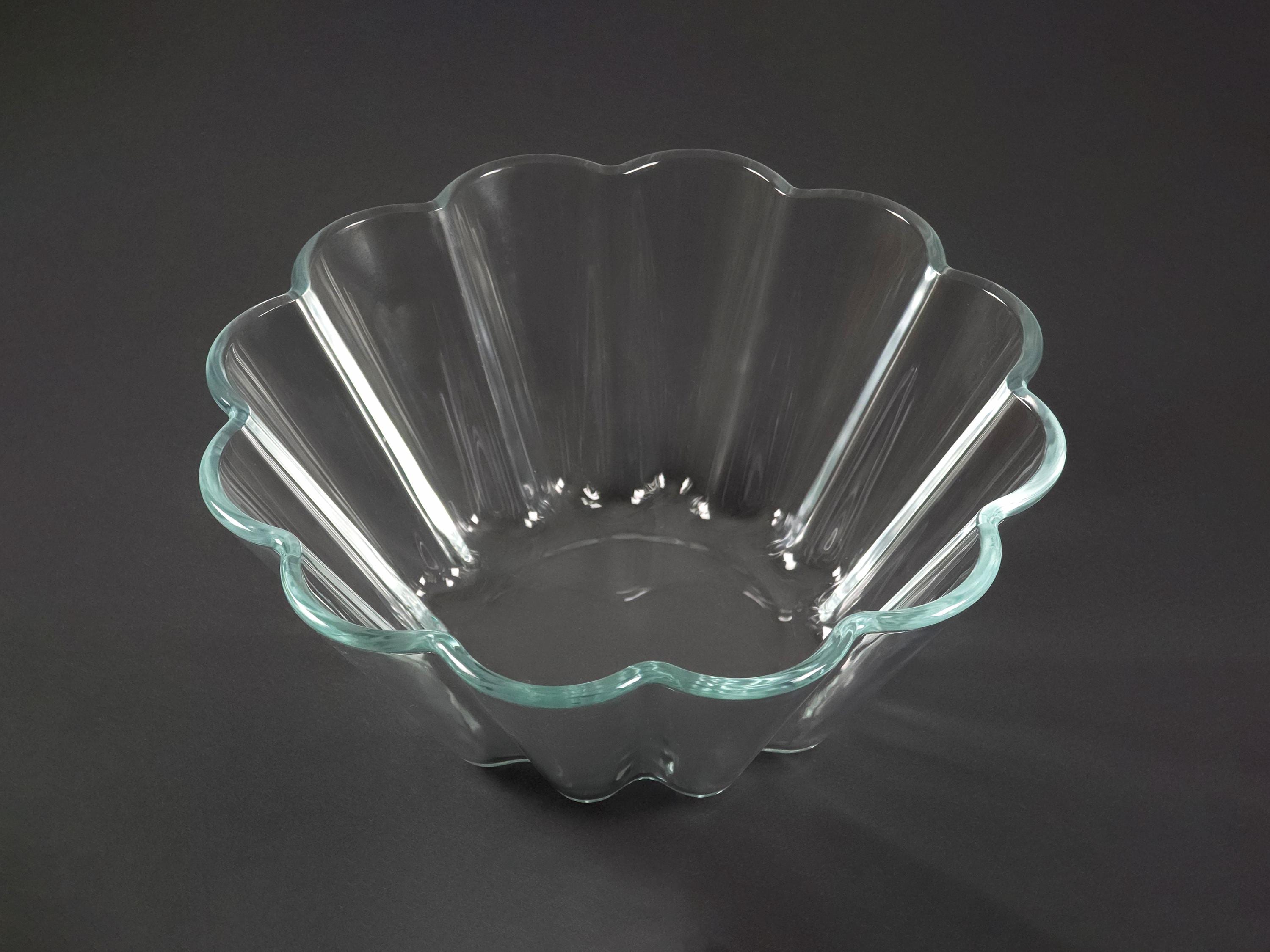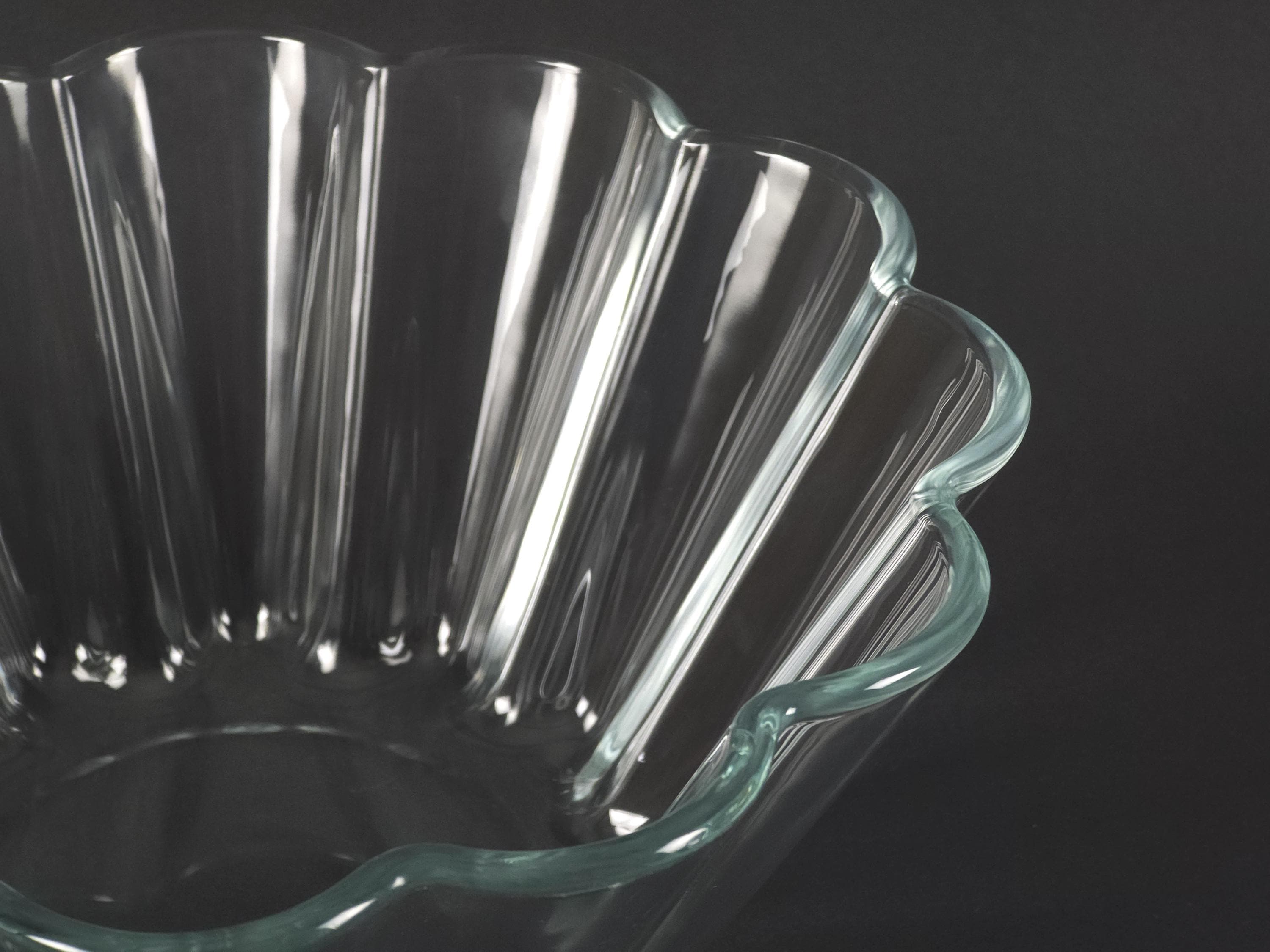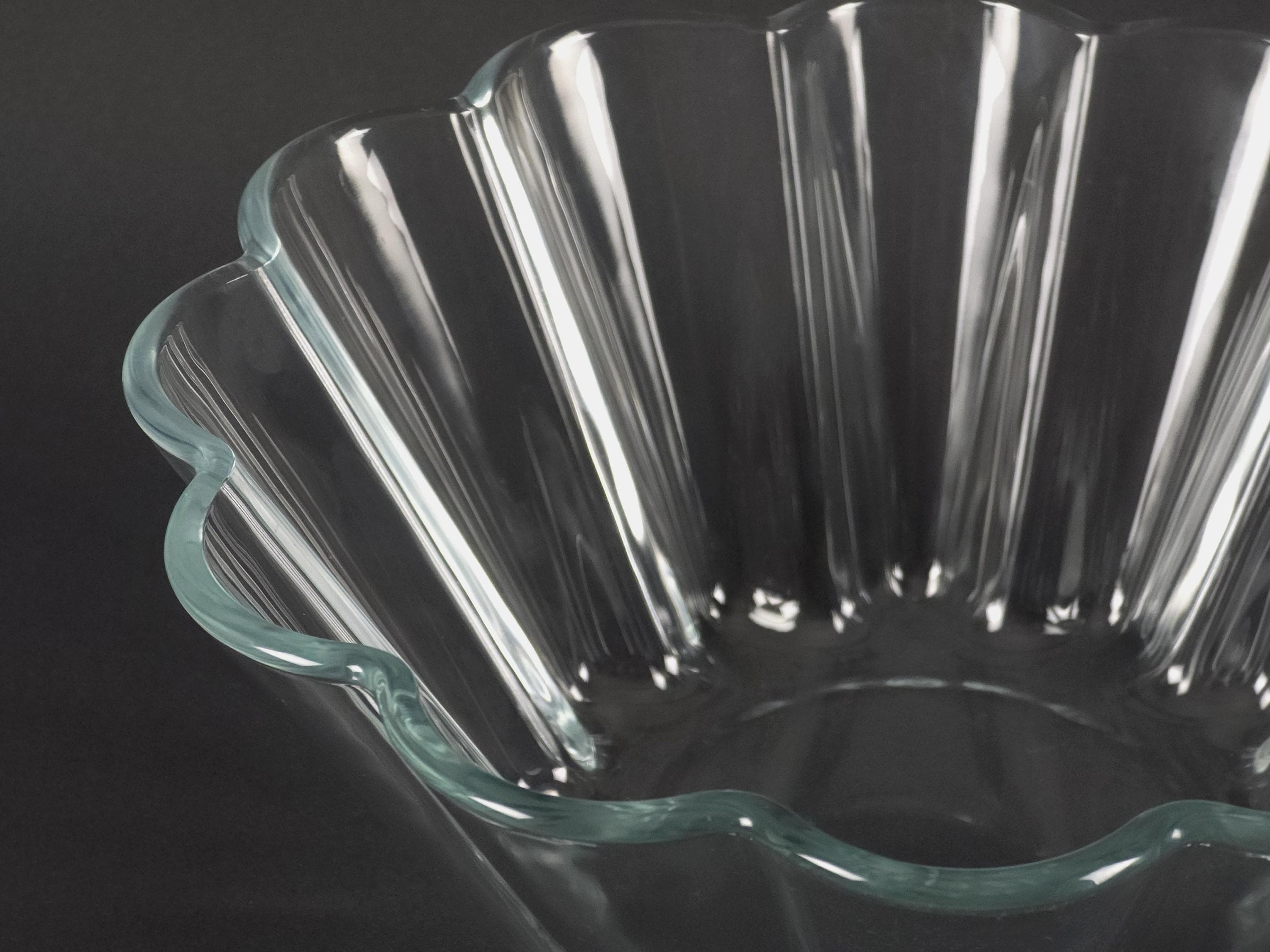 • Design: A round serving bowl with deep vertical fluting and a wide, undulating scalloped edge.