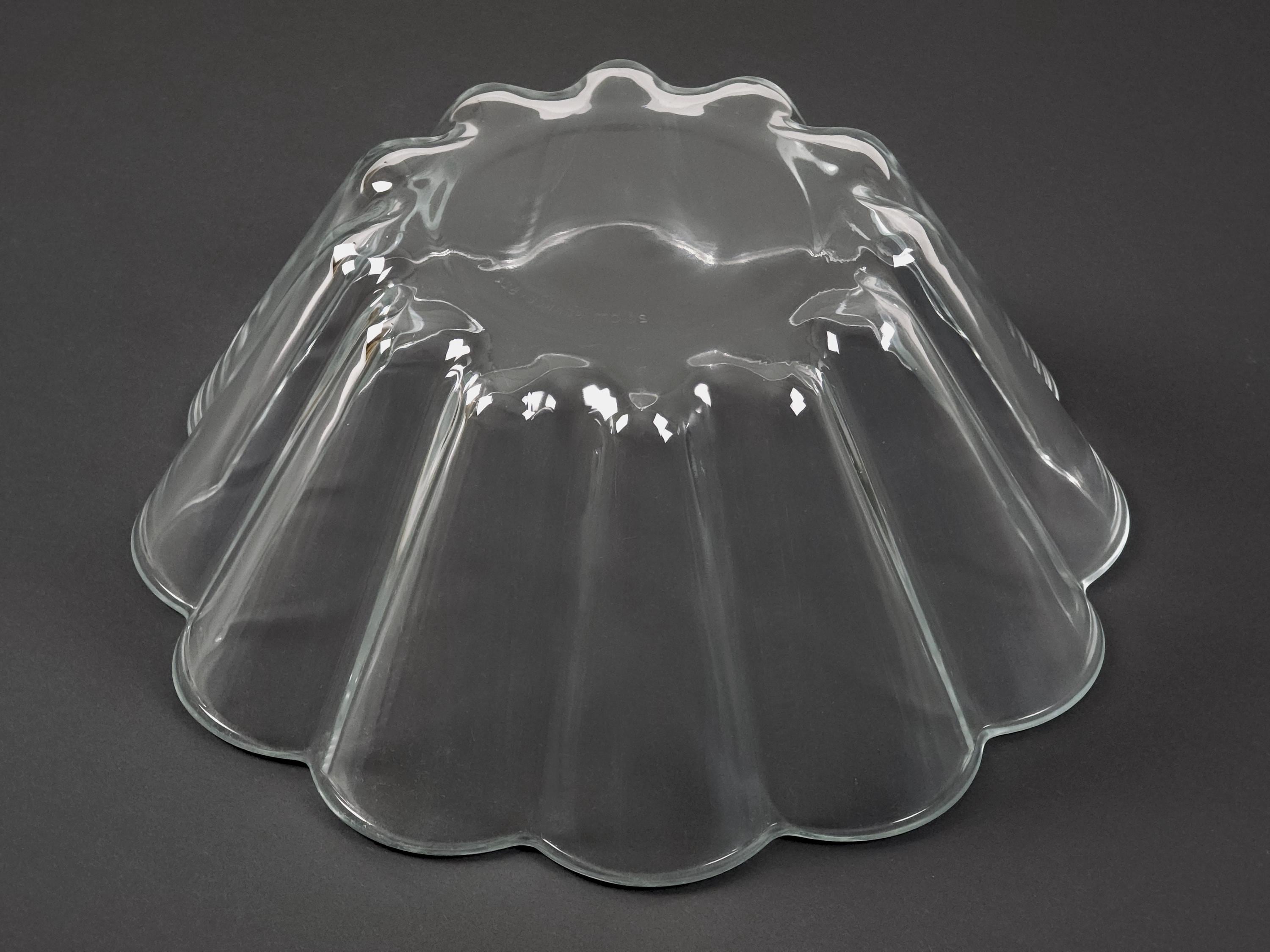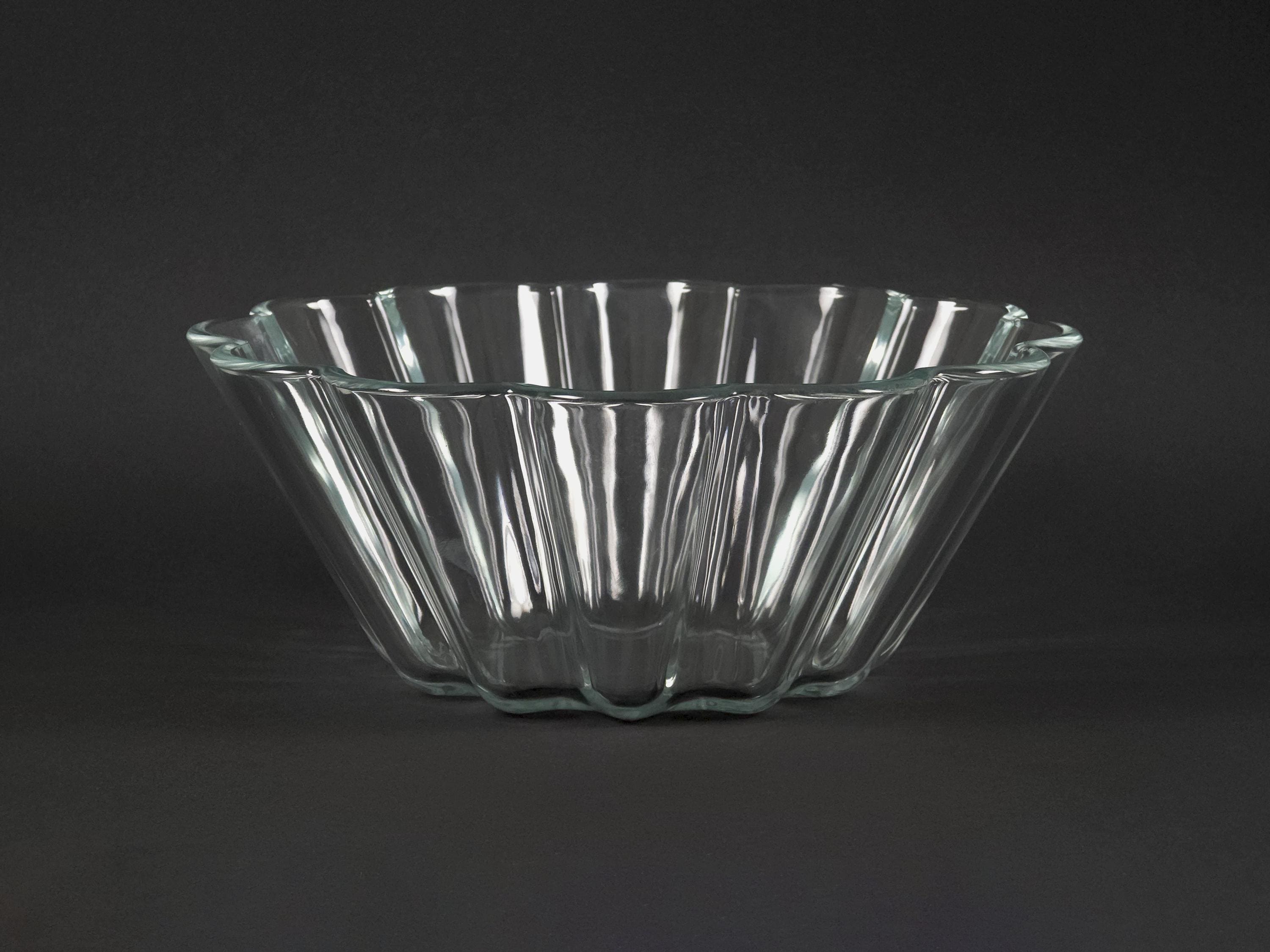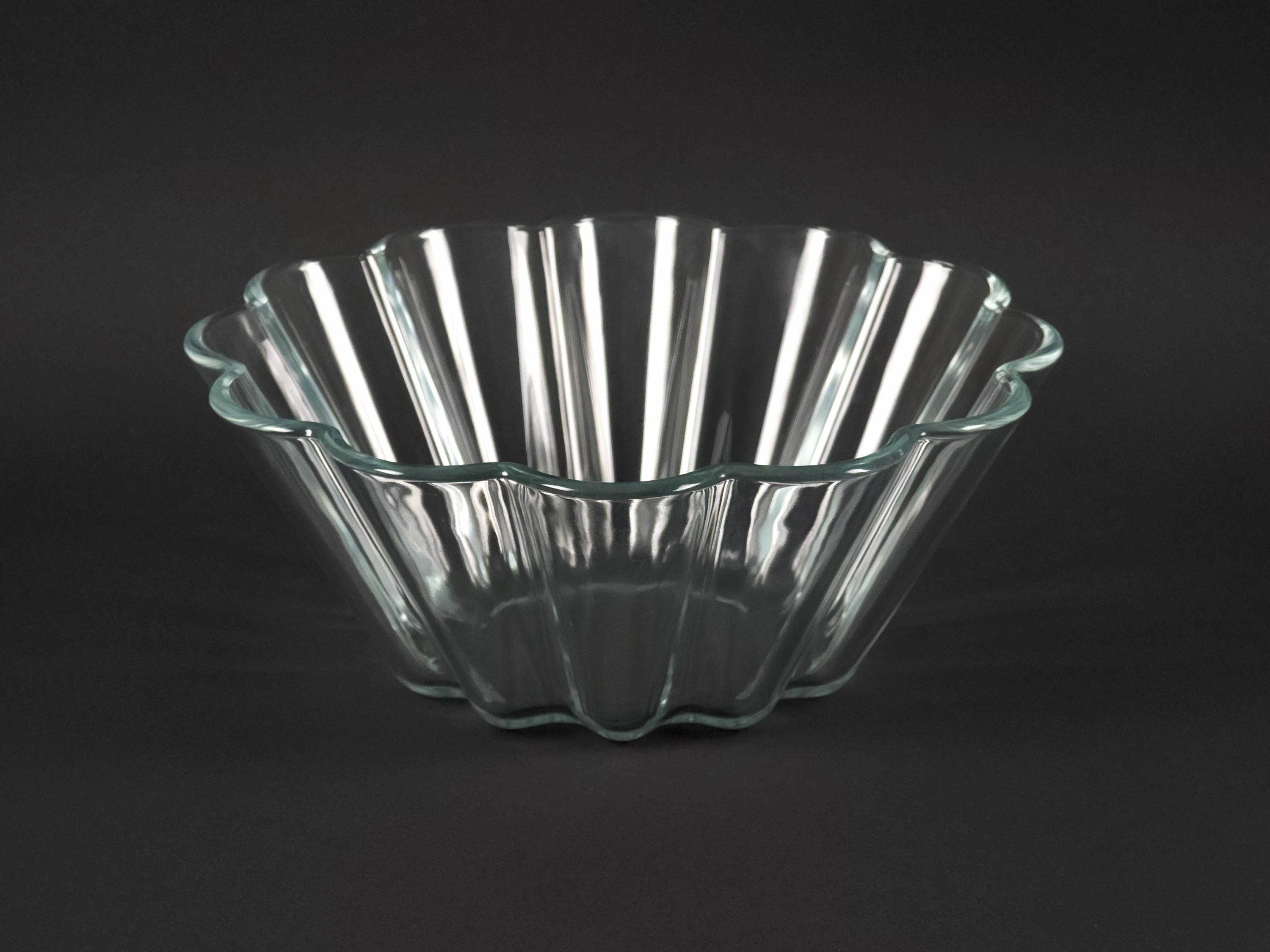 Vintage 1980s Pyrex 824 "Brioche" Fluted Glass Bowl With Scalloped Rim.