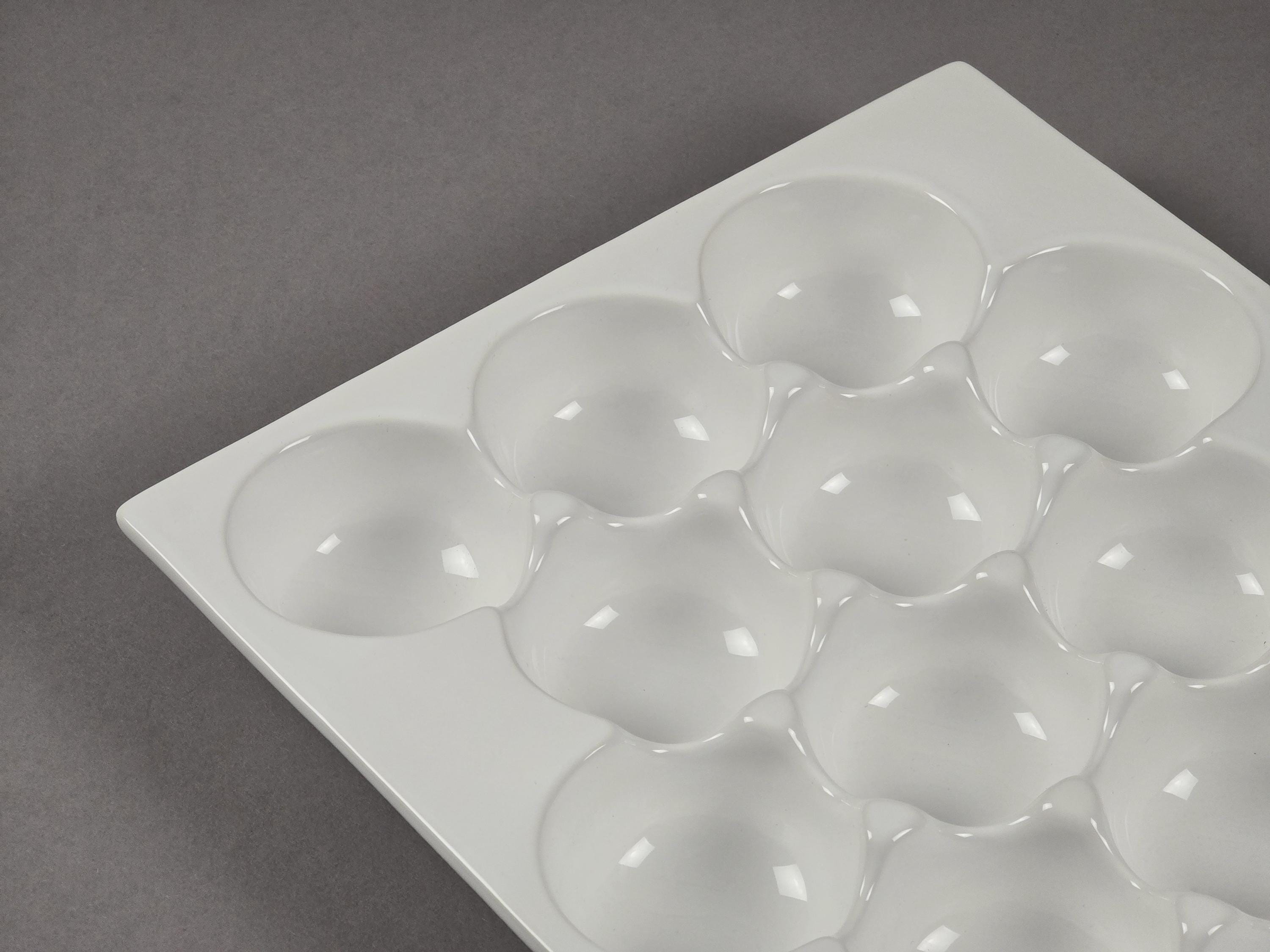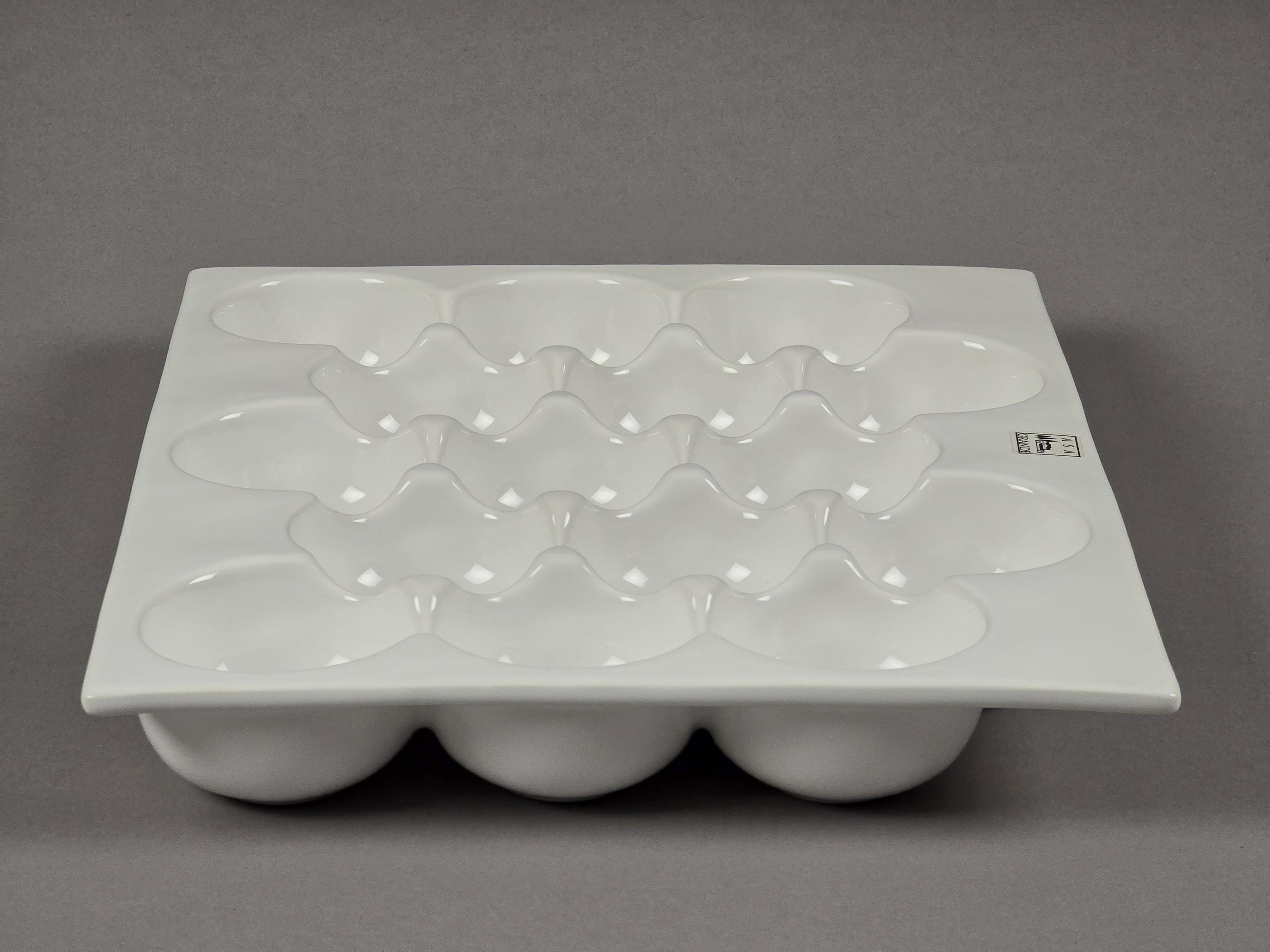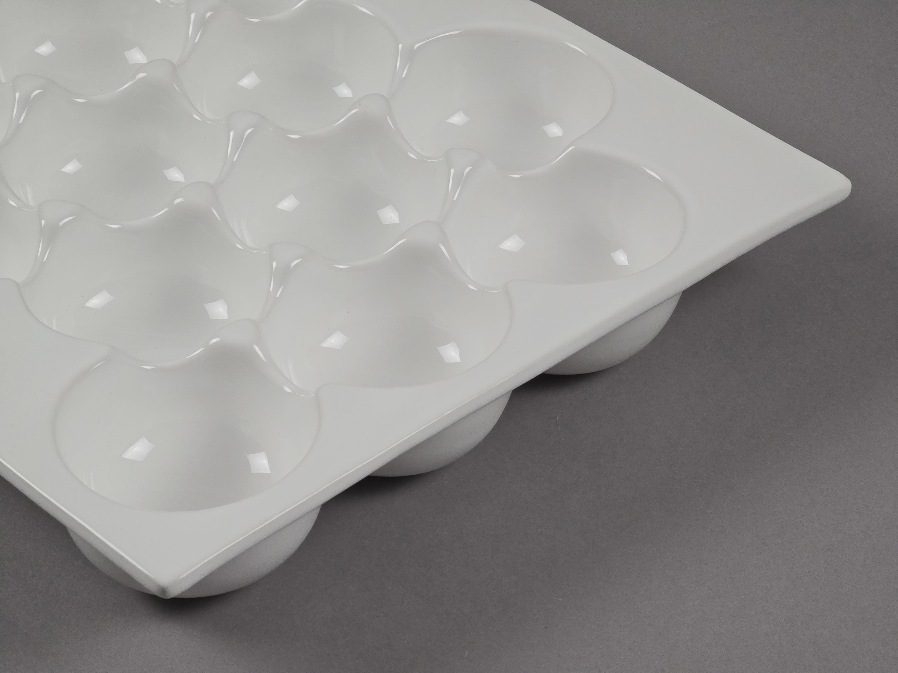 Part of the renowned "Grande" collection, this high-gloss white ceramic platter is the epitome of "Simple things are beautiful." It features 15 perfectly uniform wells designed to cradle small fruits, appetizers, or gourmet treats with architectural precision.