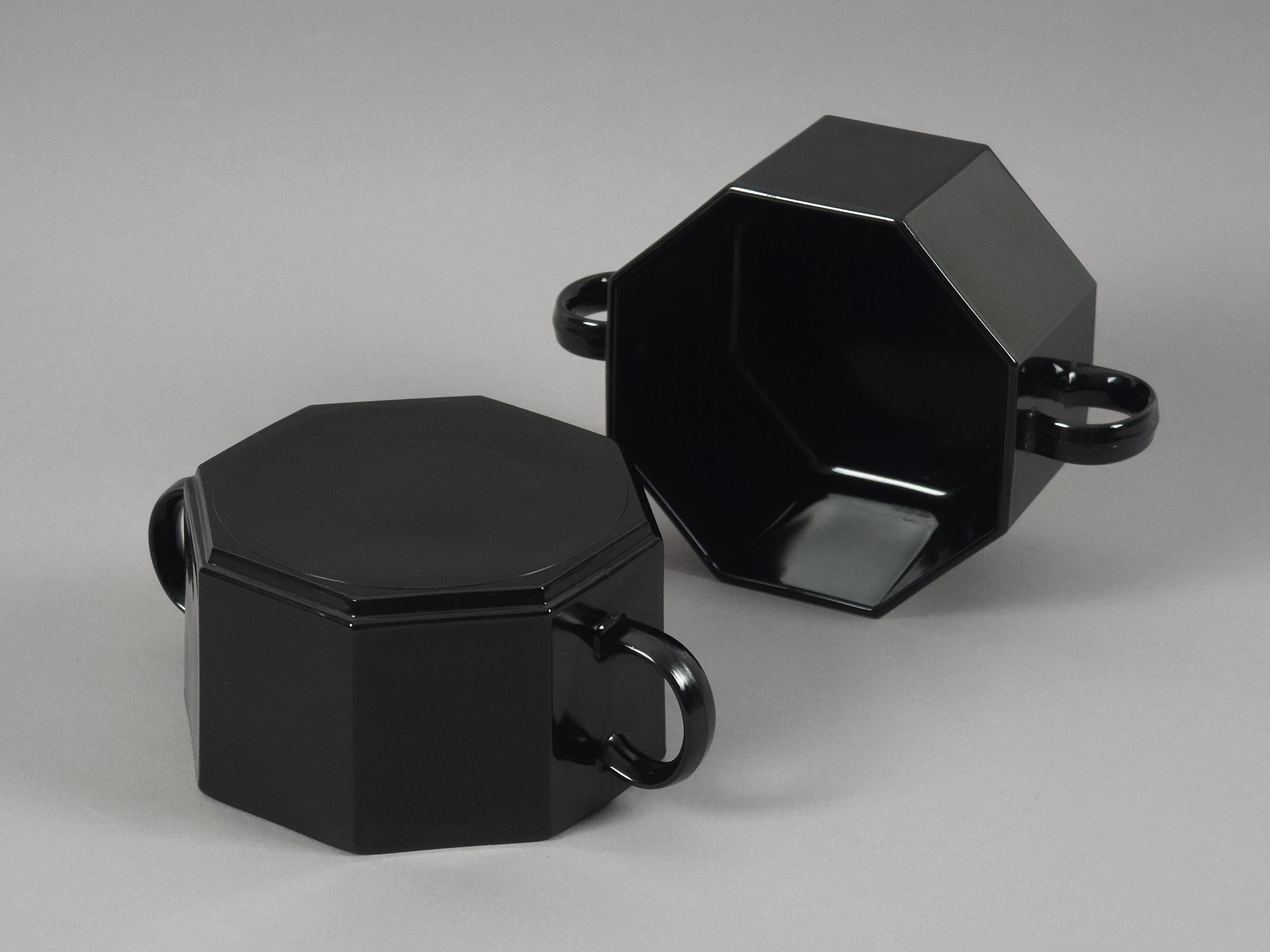 Retro 1980s Pair Of ARCOROC 'Octime' Octagonal Black Opalware Bowls, Tempered Ceramic.