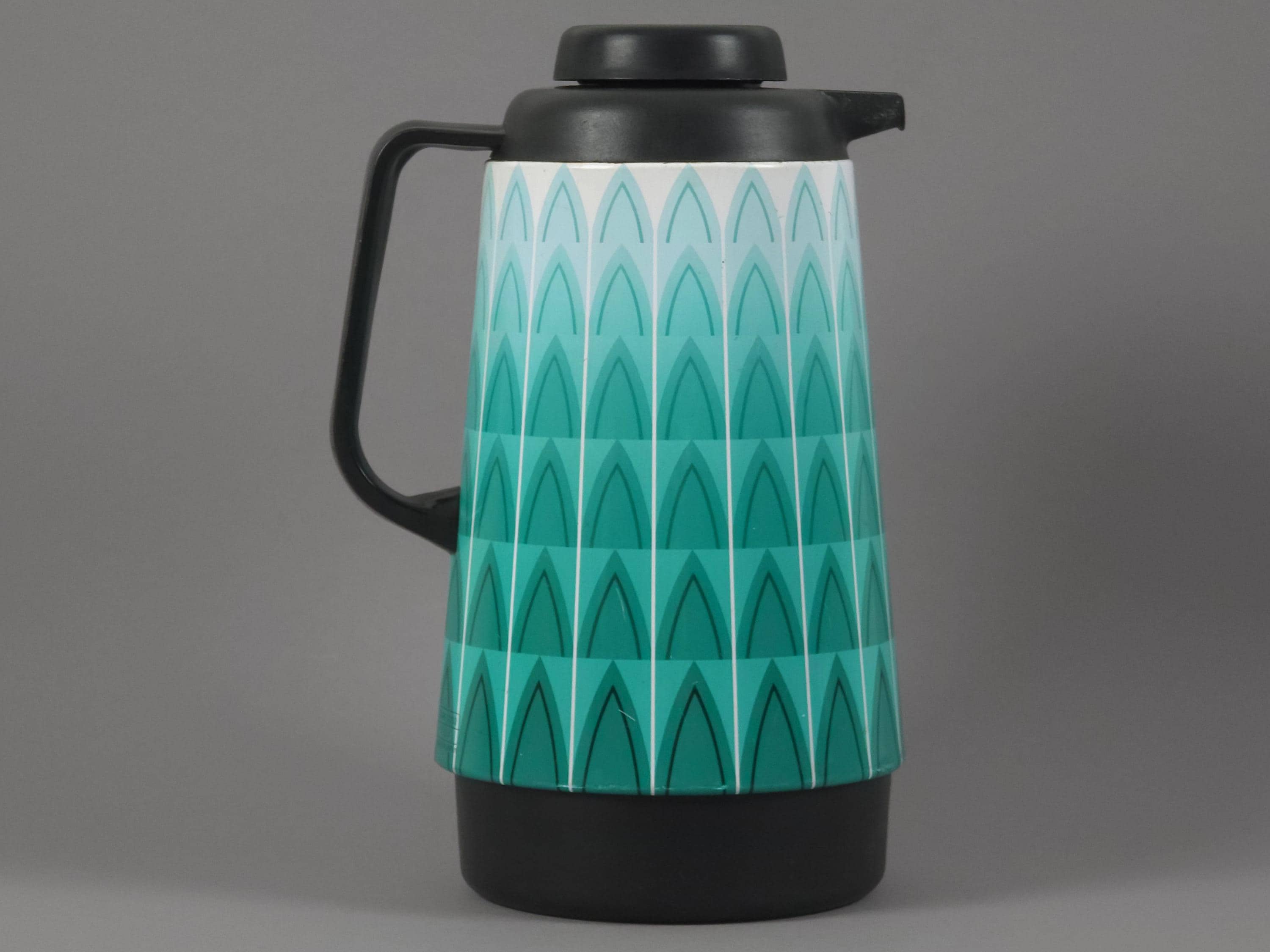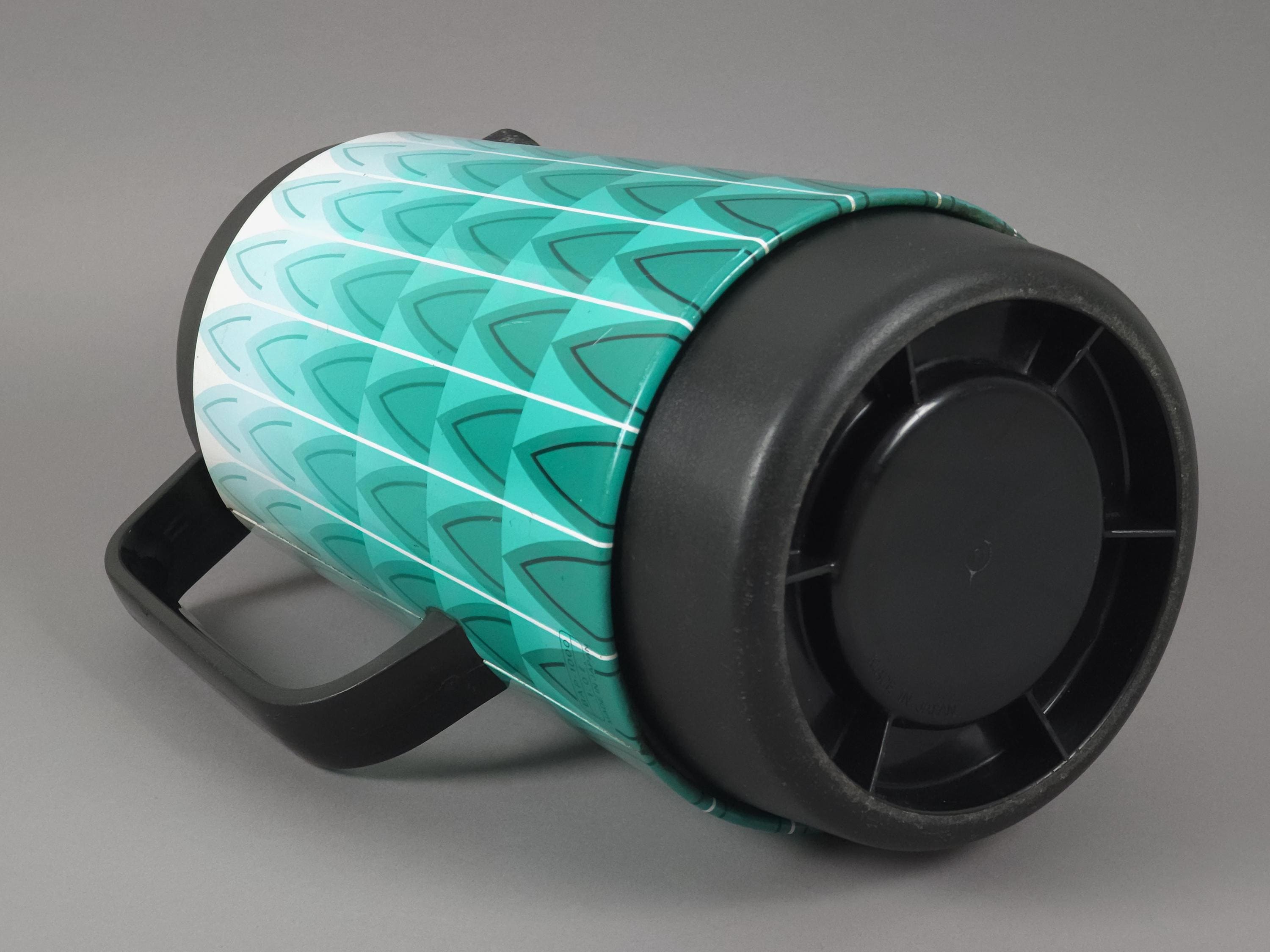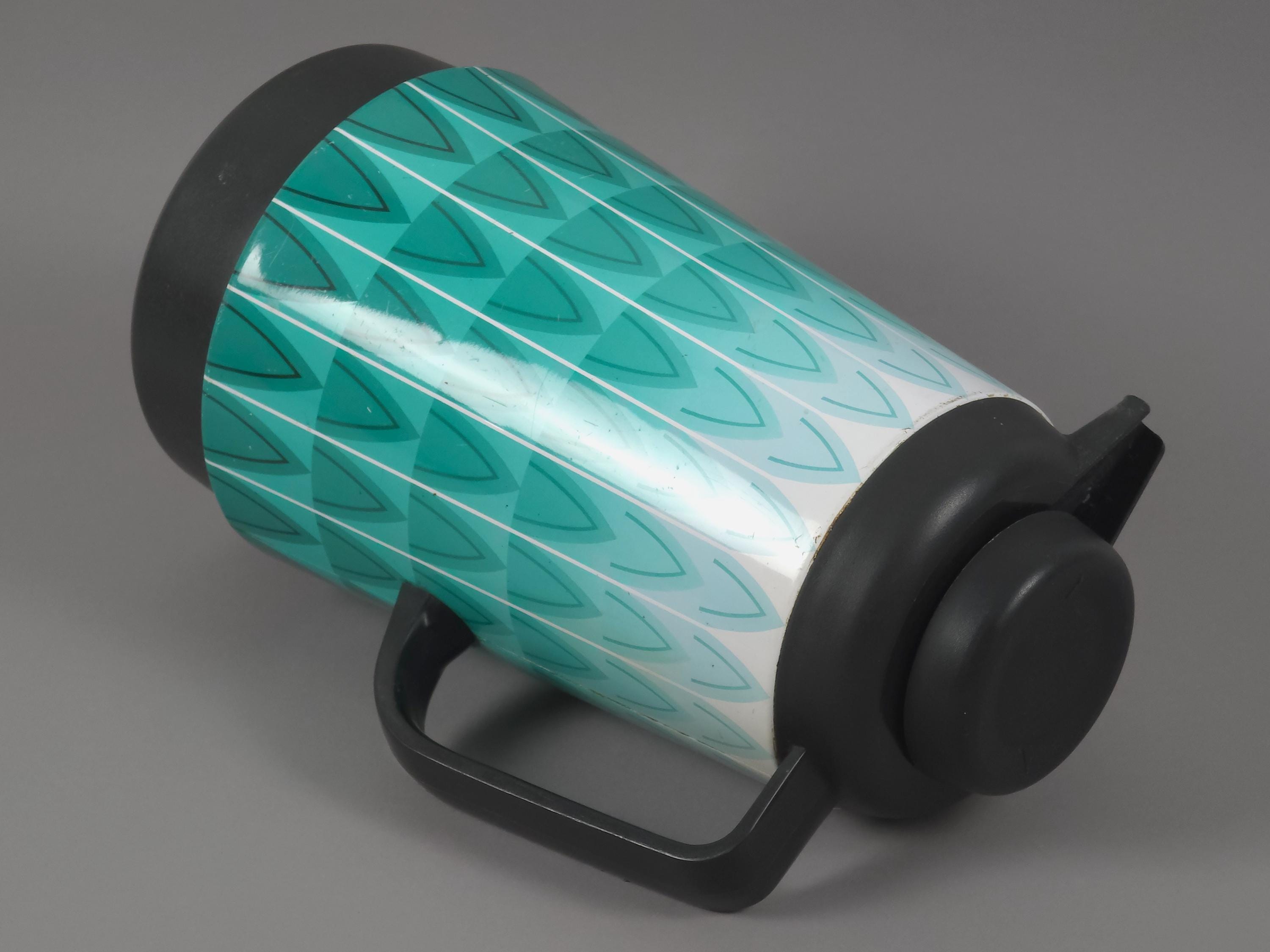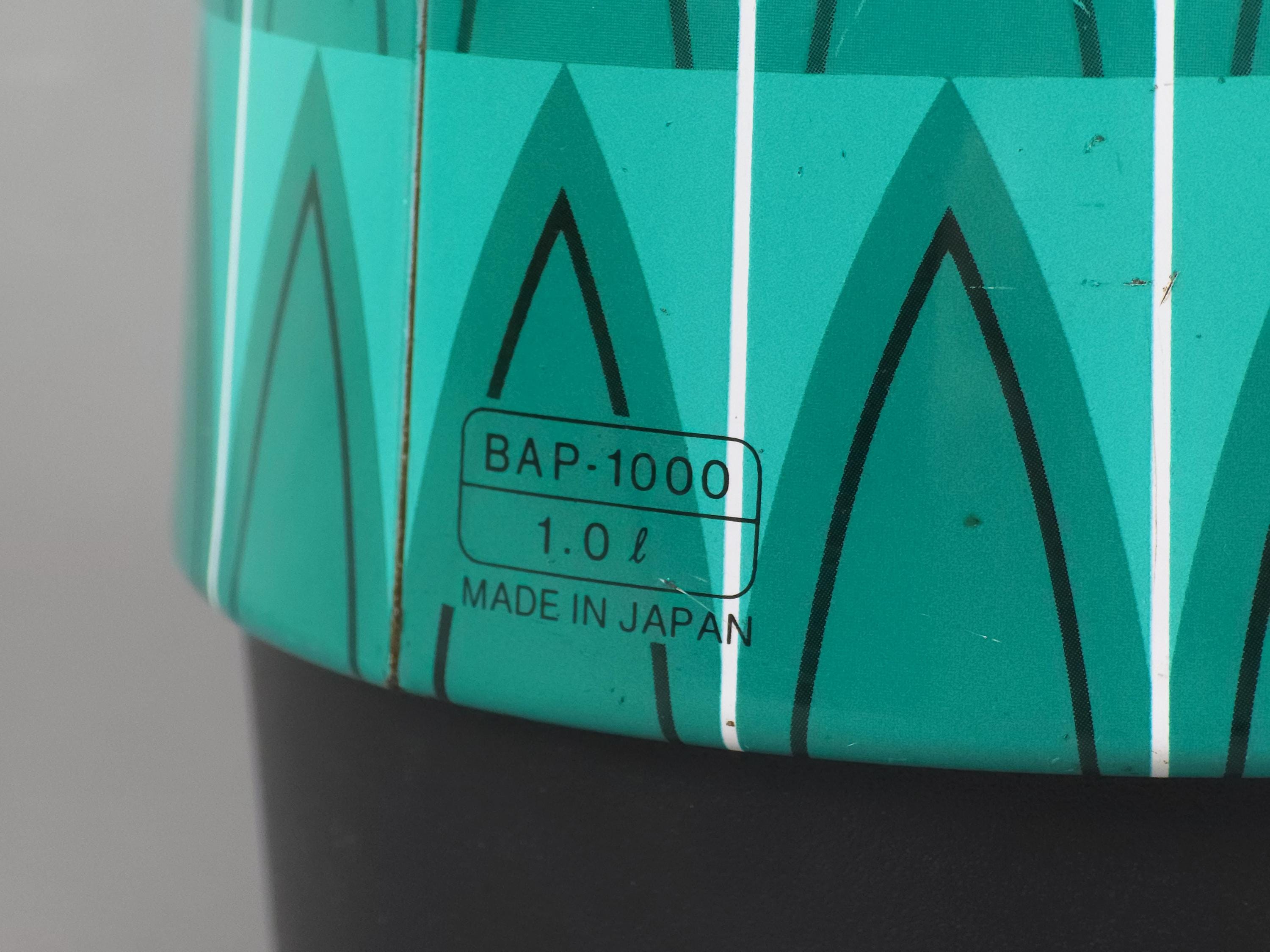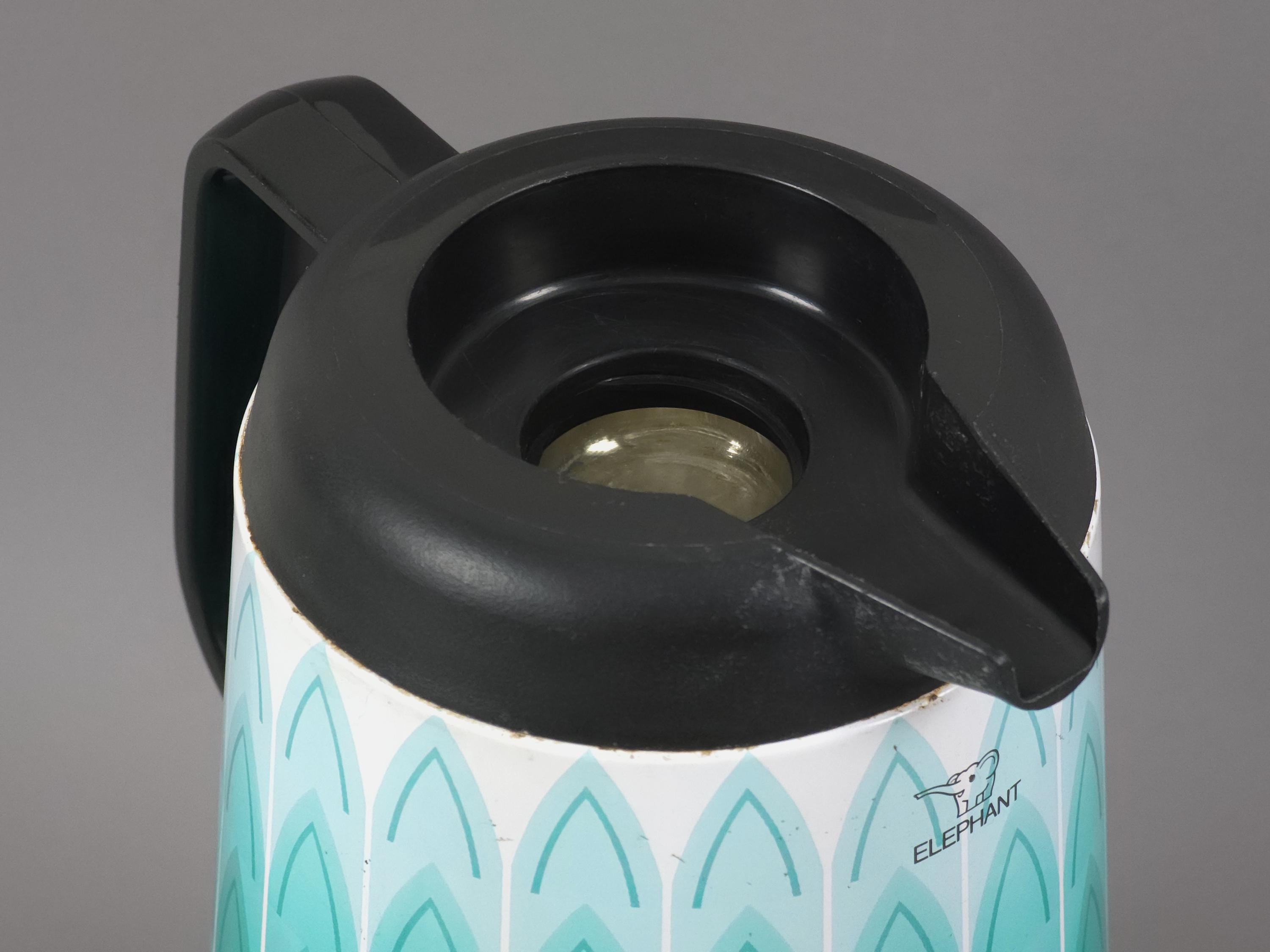 1970s Vintage Zojirushi "Elephant Brand" Vacuum Flask • Teal & White Geometric Pattern.