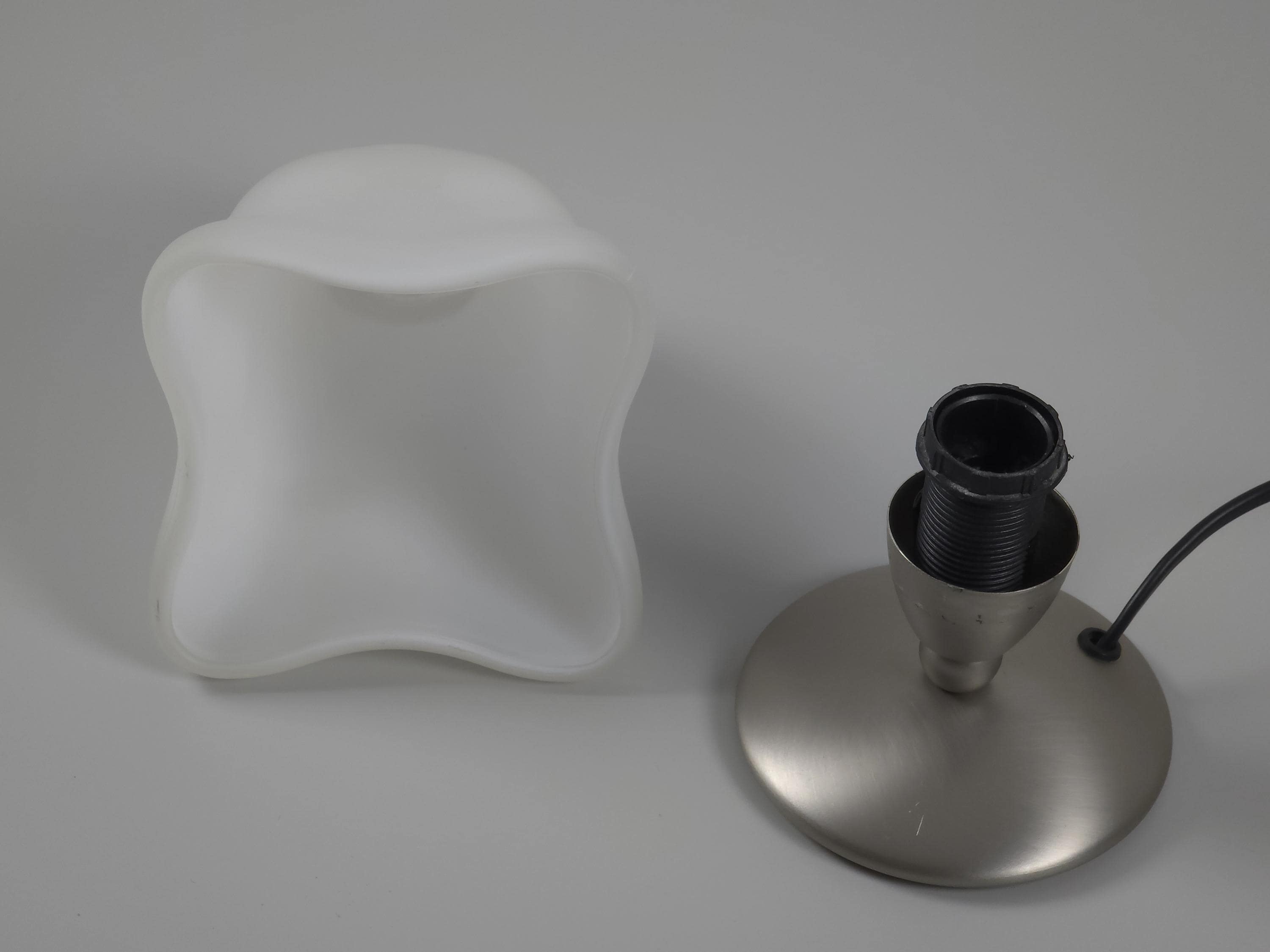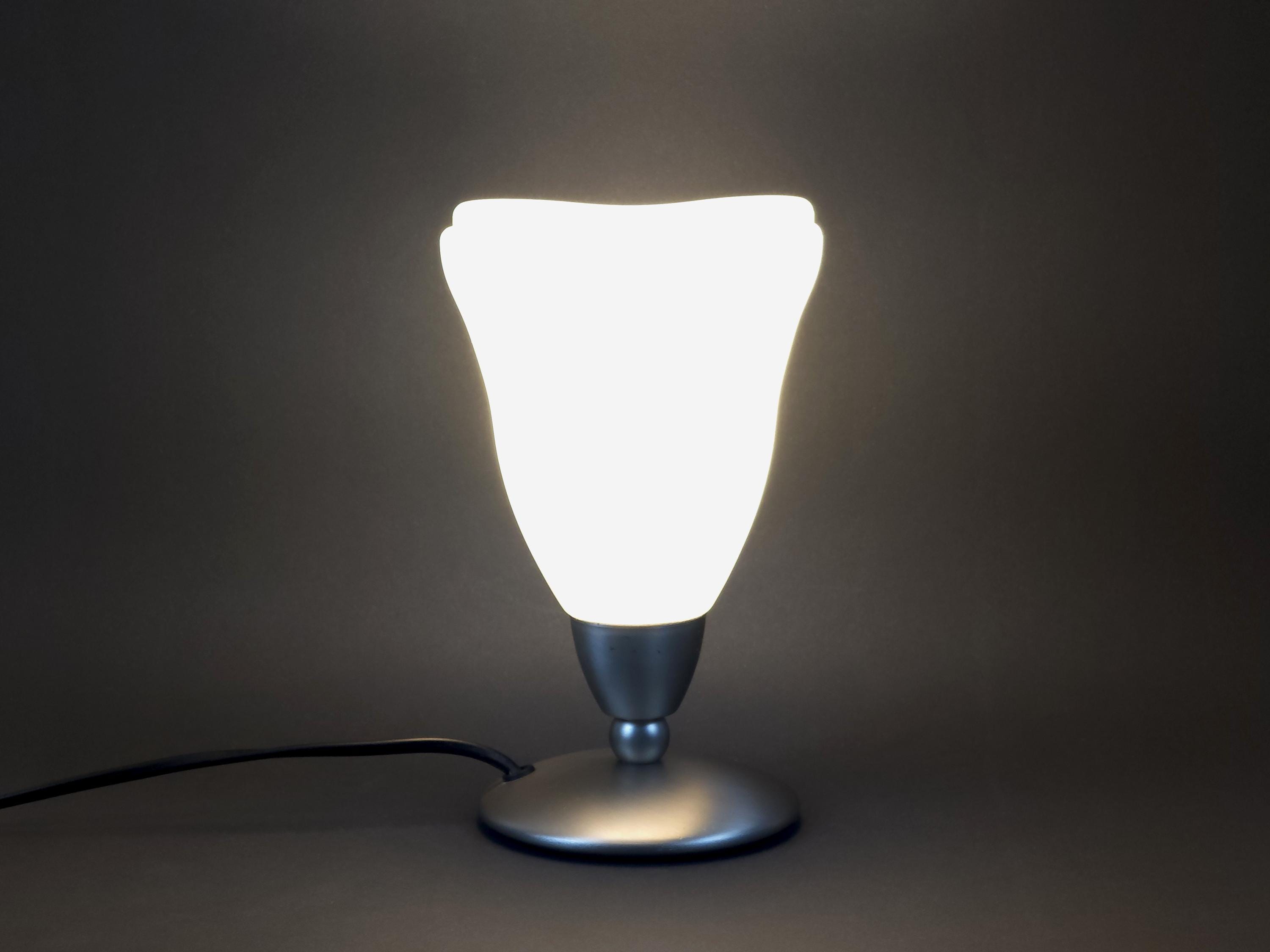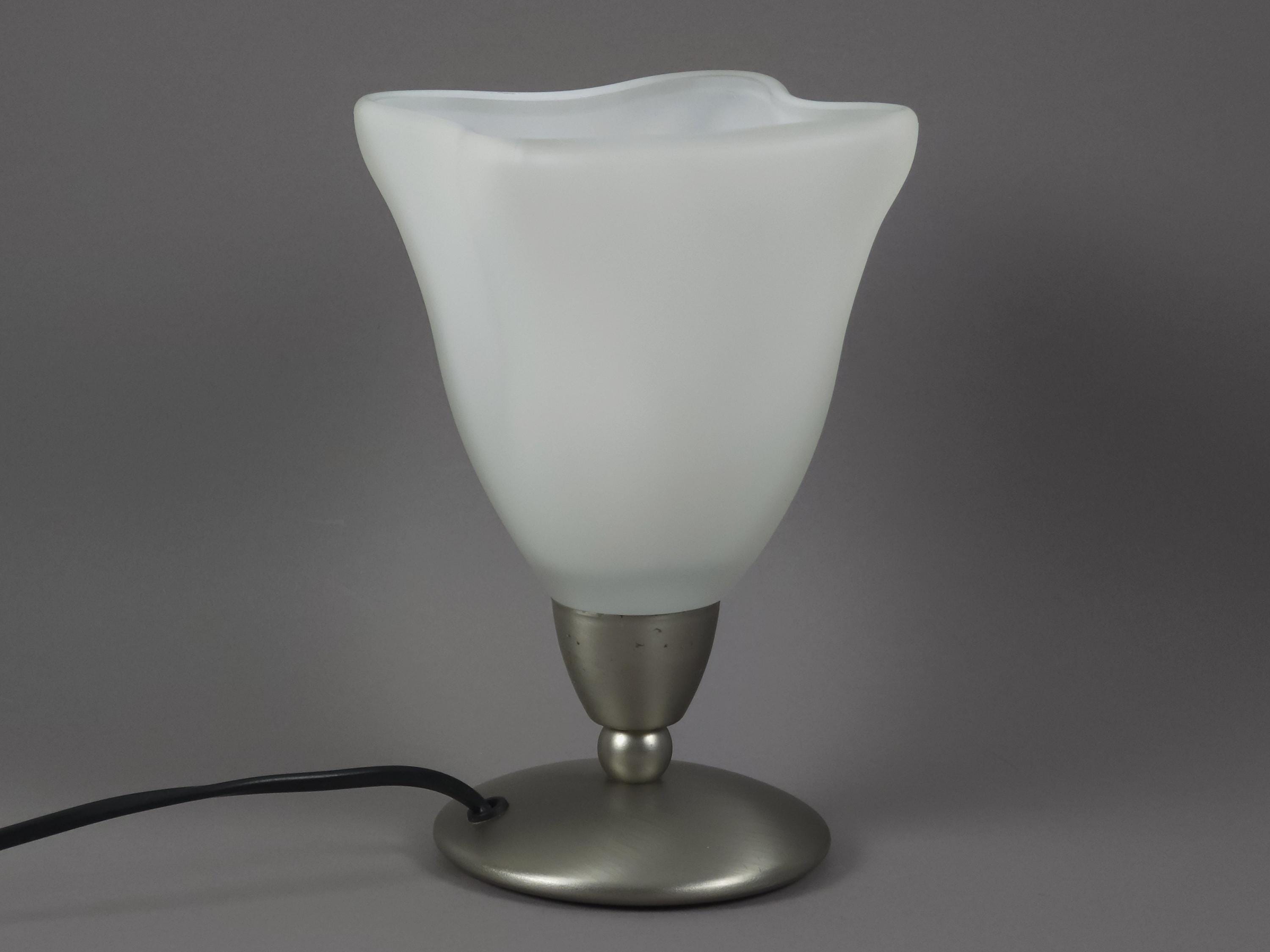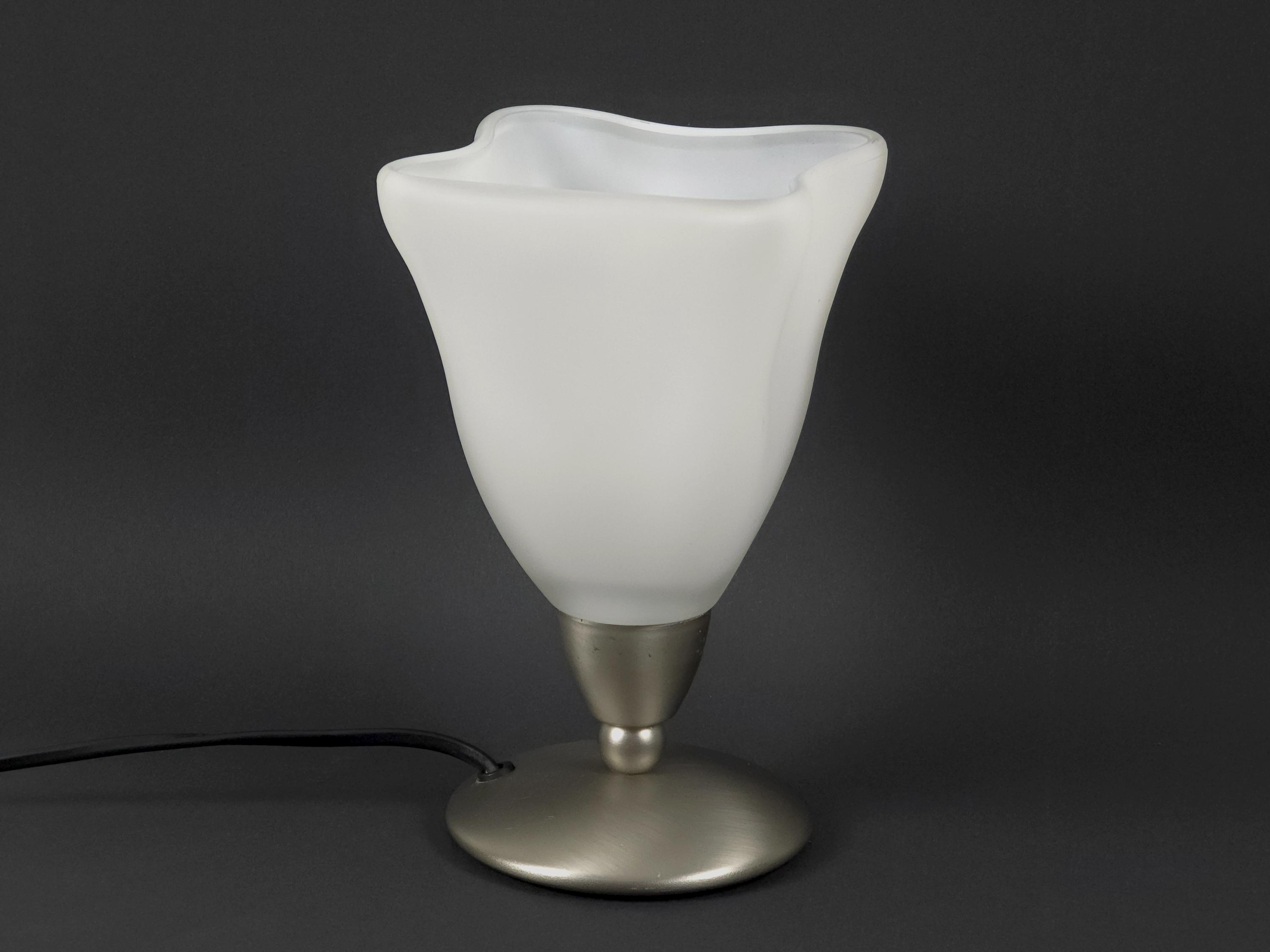 Vintage 1990s Dutch Design Table Lamp by Post Verlichting • Frosted Satin Glass Tulip Shade.