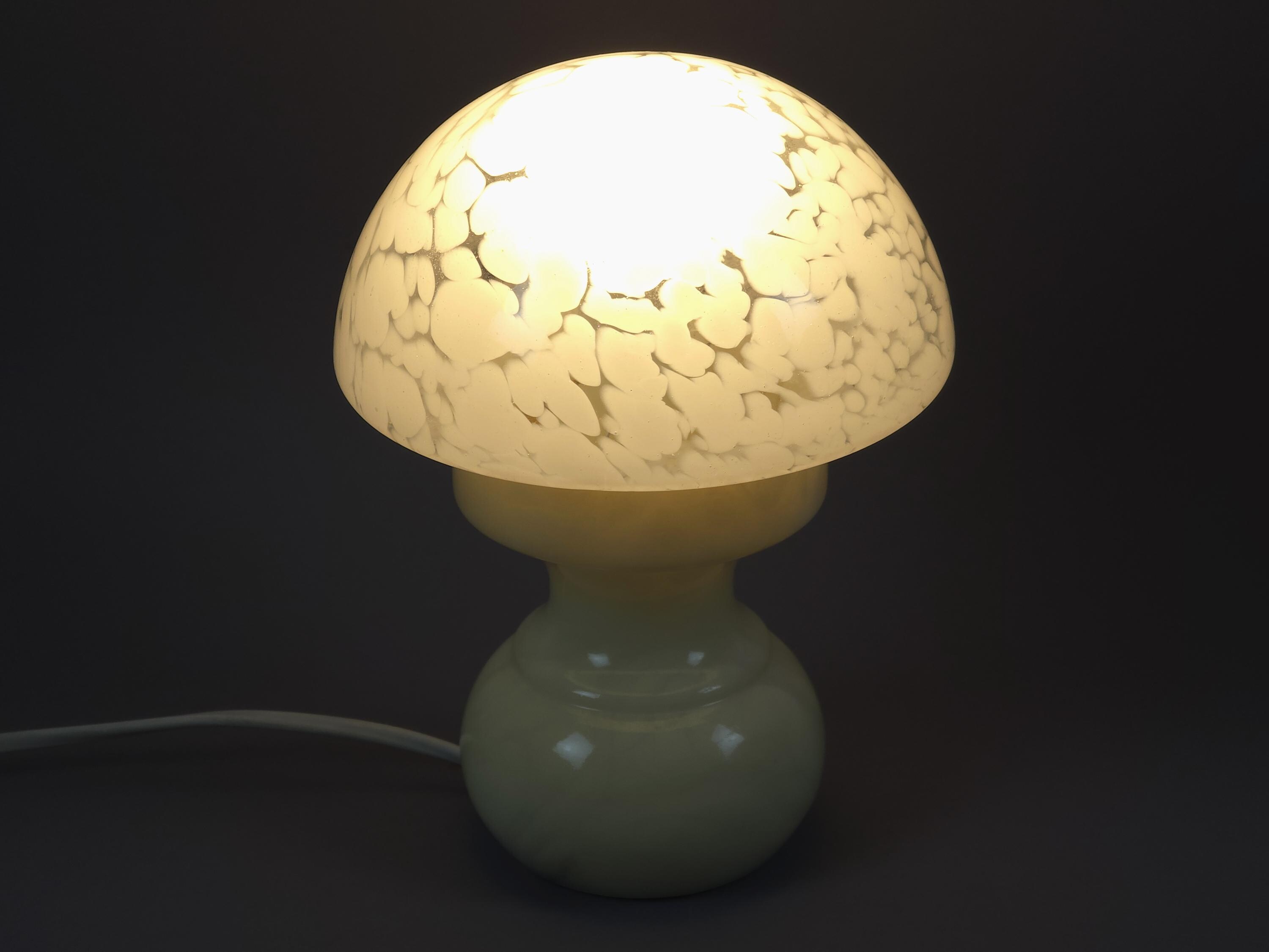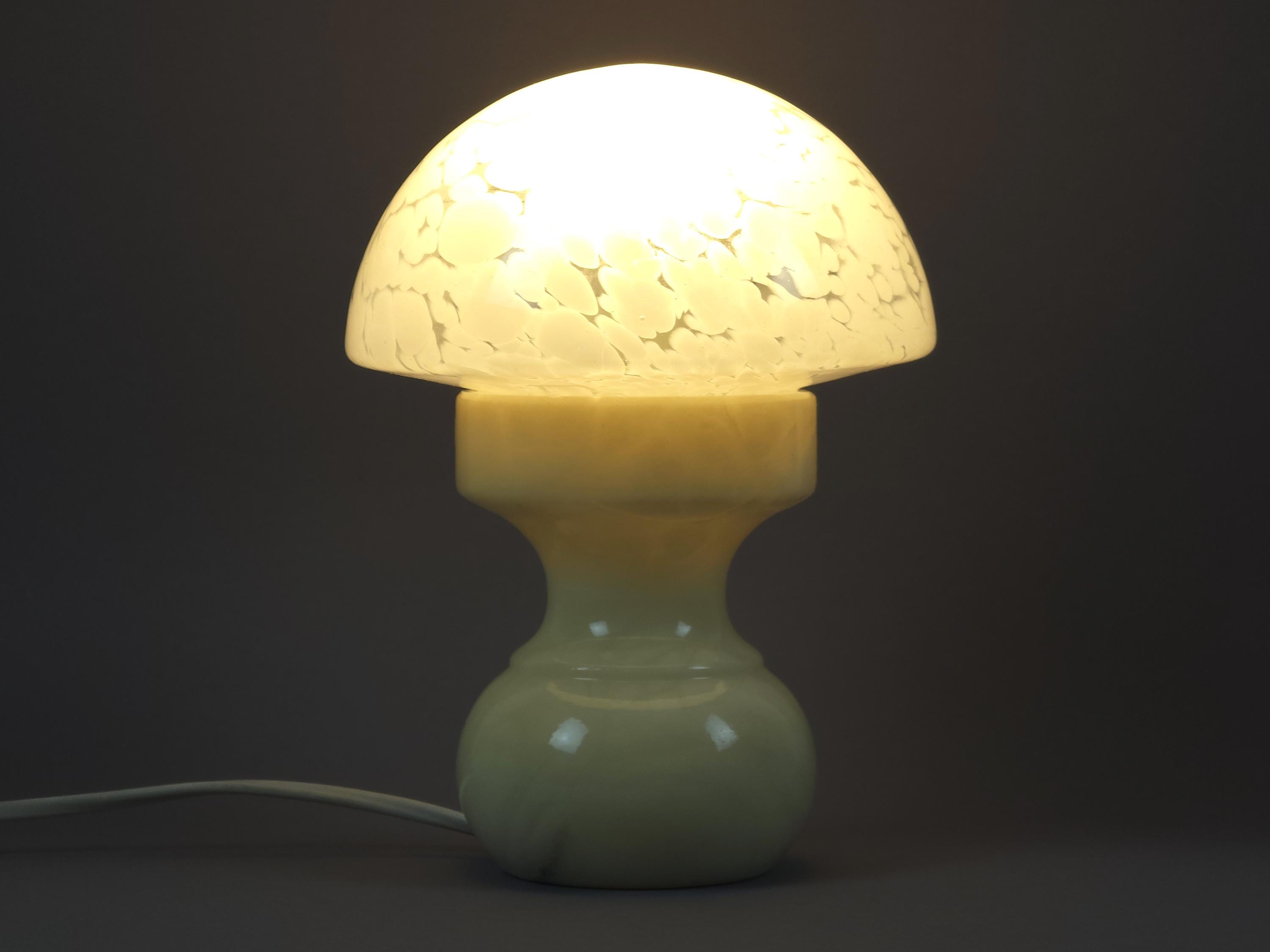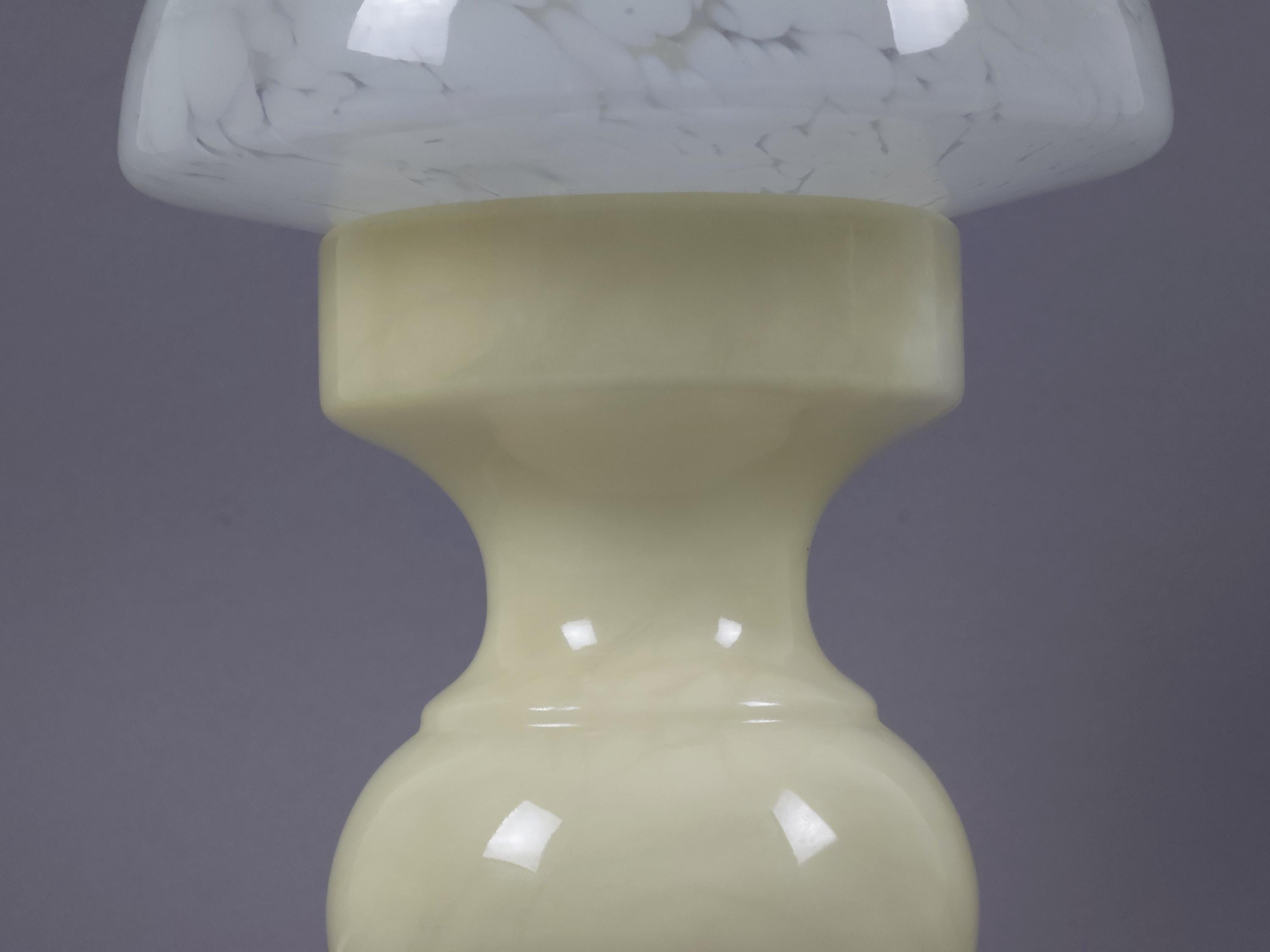 Vintage 1960s Reijmyre Armaturfabrik (RAF) Mushroom Lamp • Swedish Mottled Glass & Marble Base.