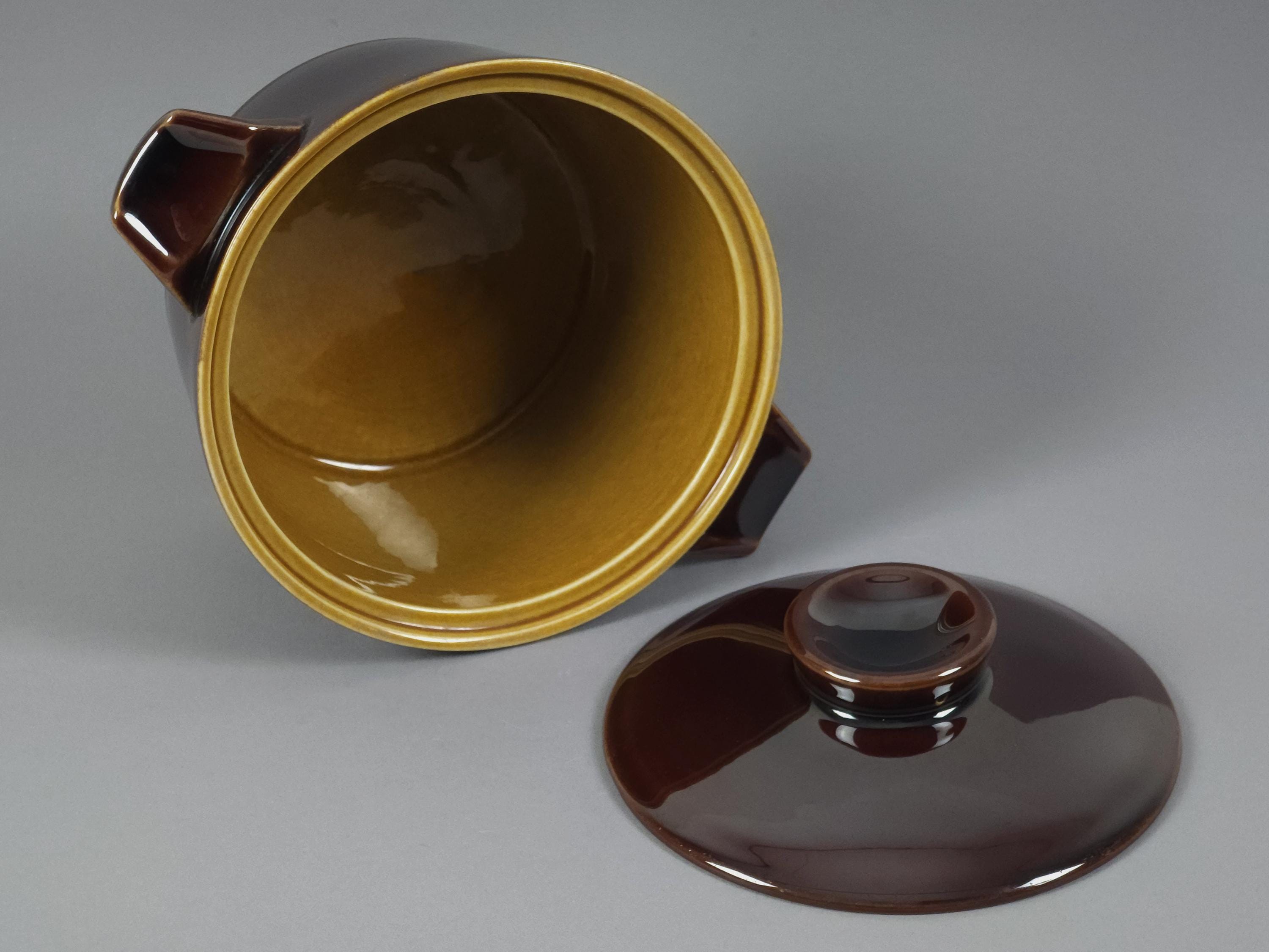 Vintage 1960s lidded oven dish tureen, soupière (serving dish) by Royal Sphinx Maastricht. This piece belongs to their durable "Ovenware" line, designed for both cooking and tabletop serving.