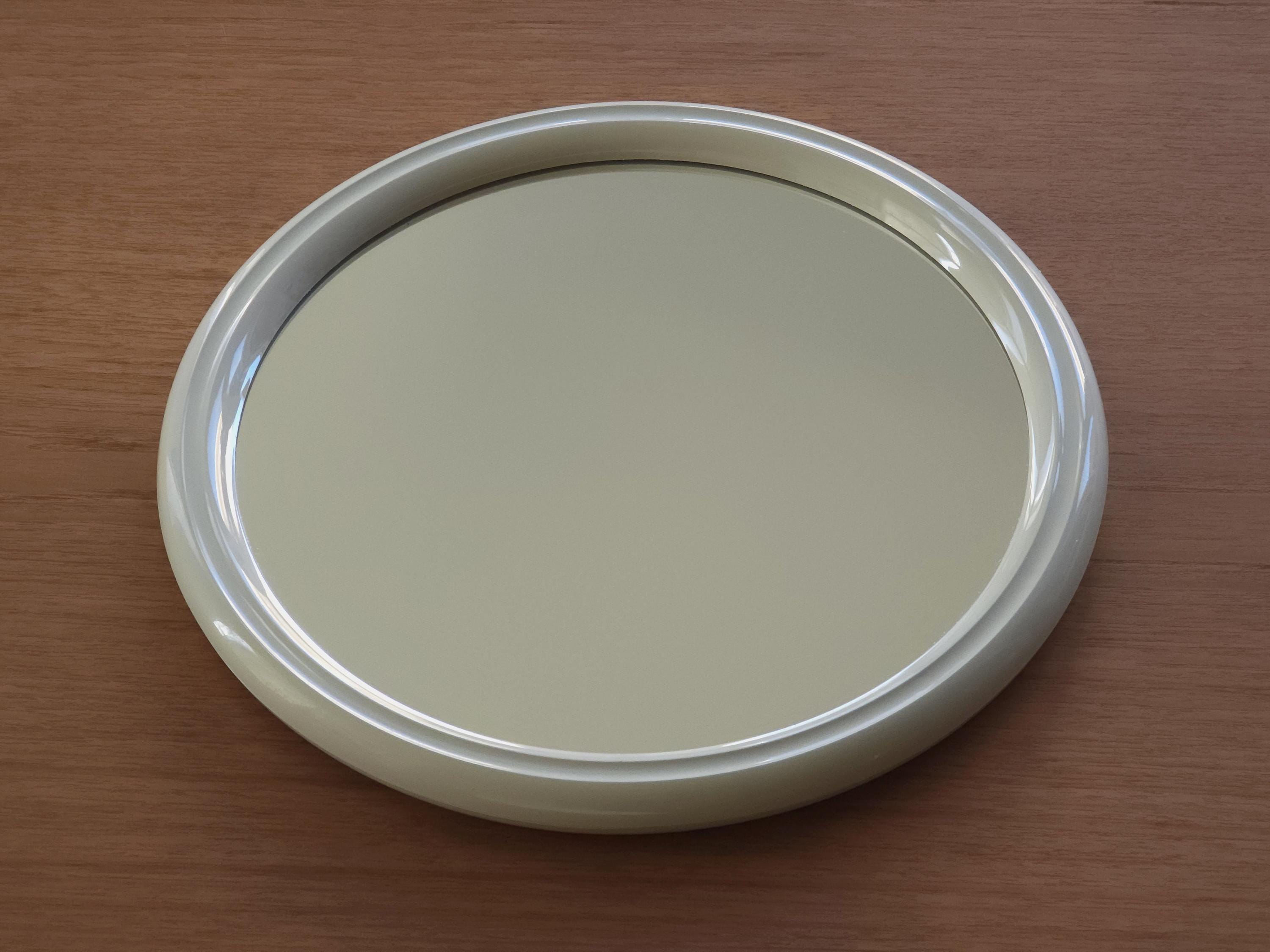 1970s Space Age Design Tiger Plastics Round Wall Mirror • Grey Plastic Frame Mirror.