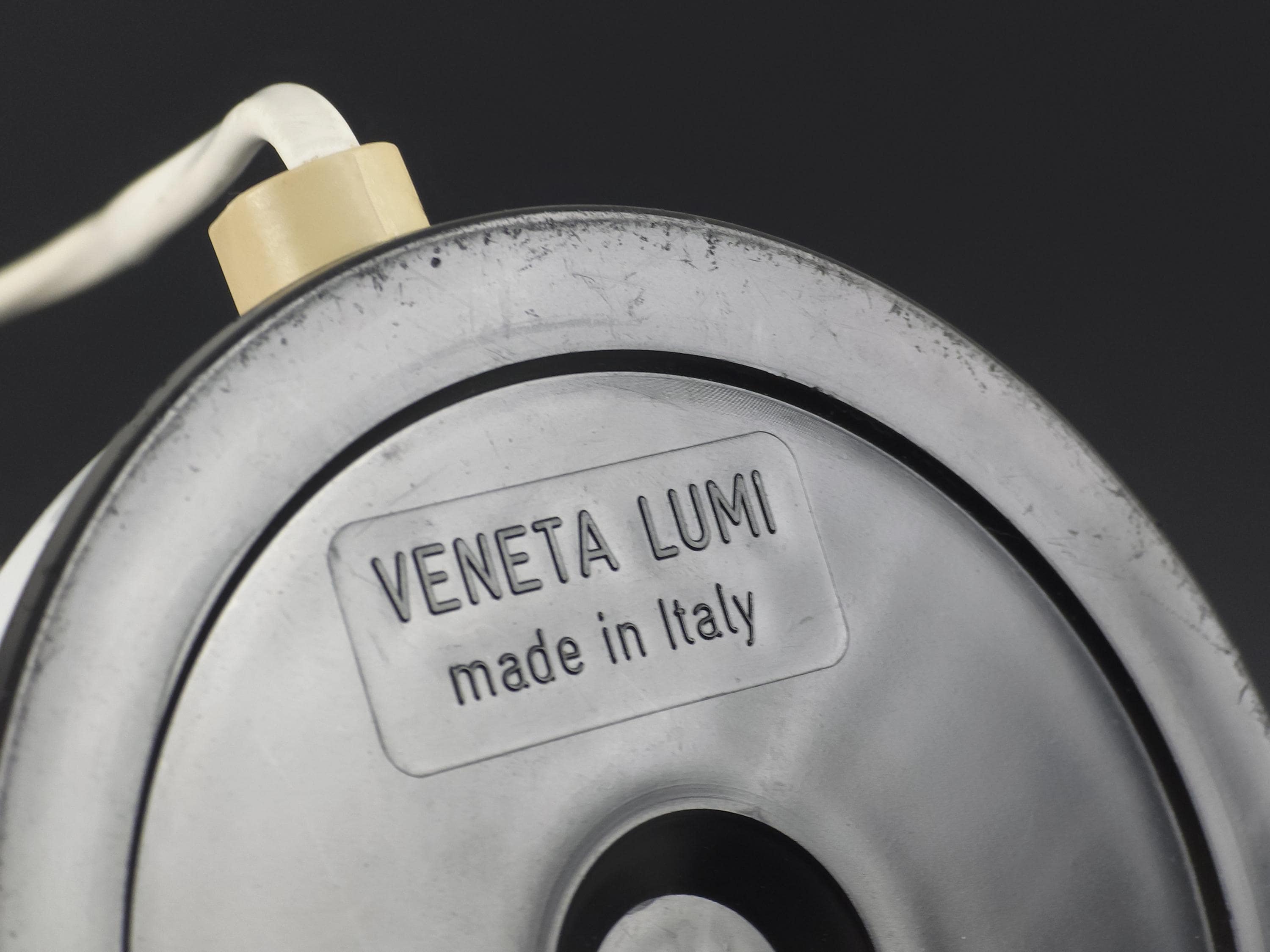 Vintage industrial-postmodern gooseneck desk lamp from the 1980s by Veneta Lumi, Italy.