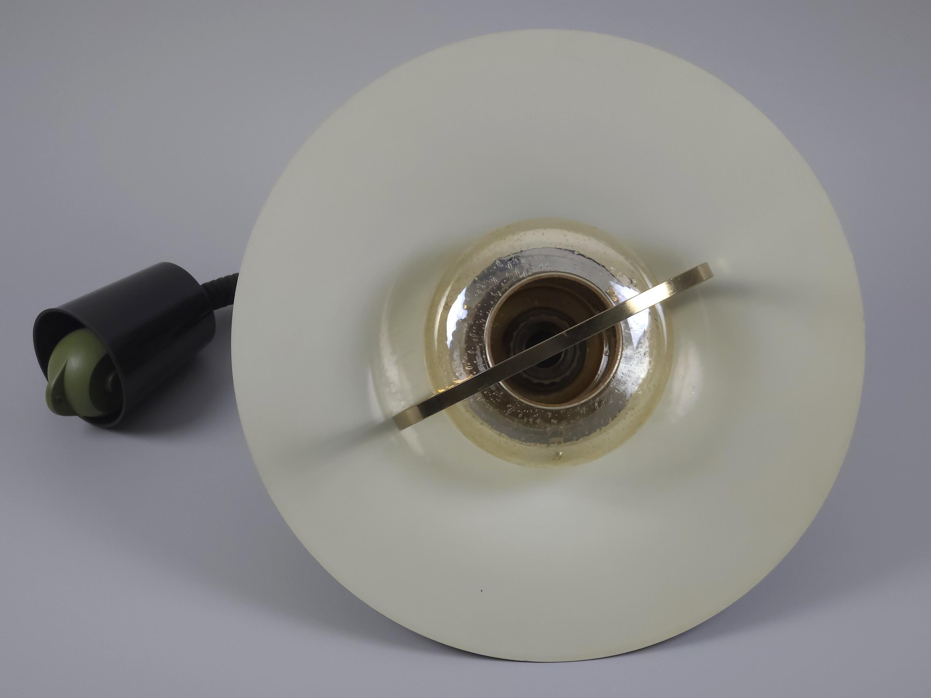• Condition: Excellent vintage state; the enamel is glossy, the brass is bright, and the seeded glass globe is perfect with no cracks.