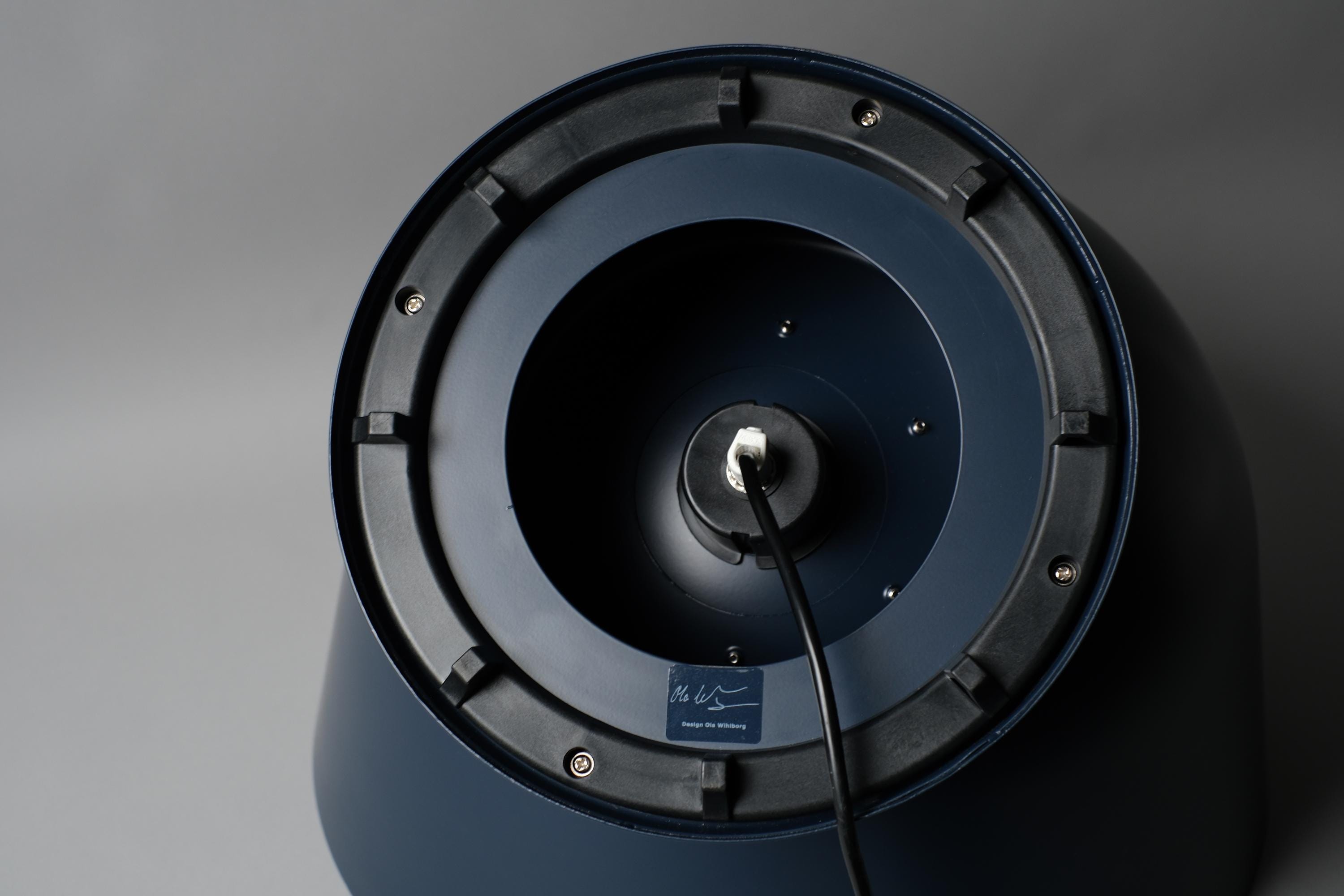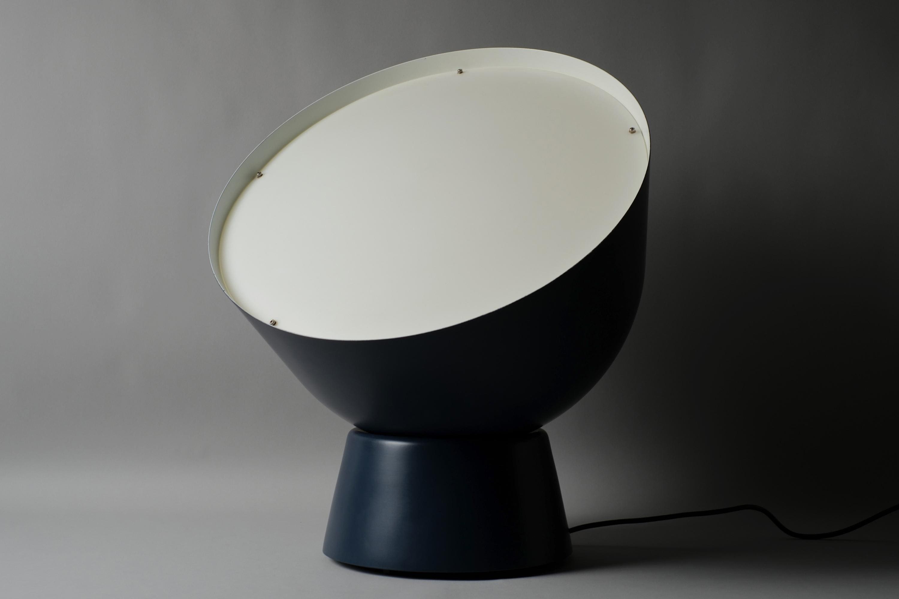 The PS 2017 collection was designed as a showcase of experimental Scandinavian design, and Wihlborg's floor lamp is one of its most resolved pieces, the oversized domed shade balanced on a compact truncated cone base creating a form that reads as both playful and architectural. The navy blue finish, rarer than the white and yellow versions, gives this large format lamp a weight and seriousness that sits naturally in contemporary interiors.