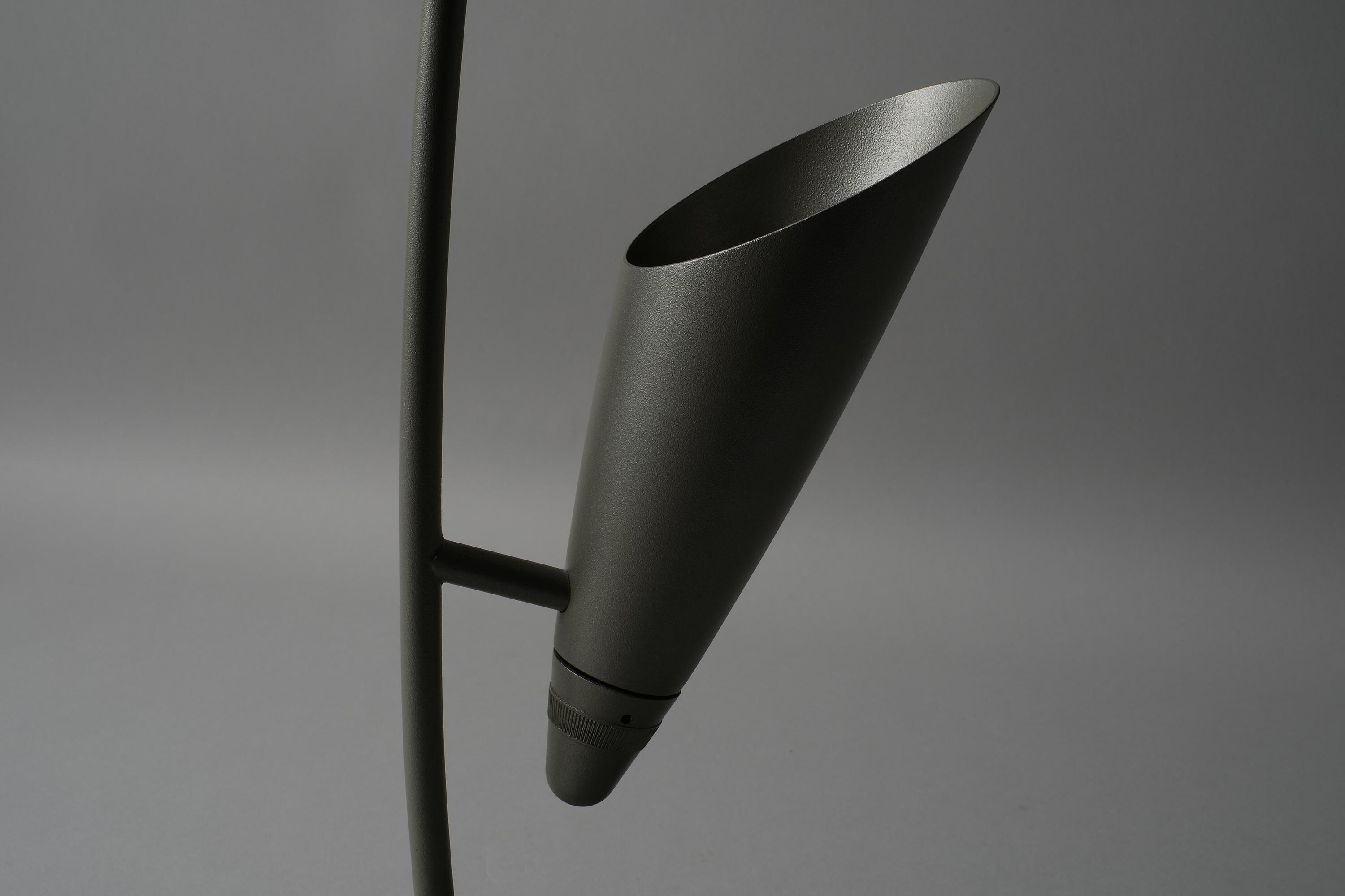 By day the form holds its own without any electricity involved. The curved leaf diffuser, the arched stem and the weighted dome base form a resolved sculptural object that sits equally well on a desk, console or sideboard.