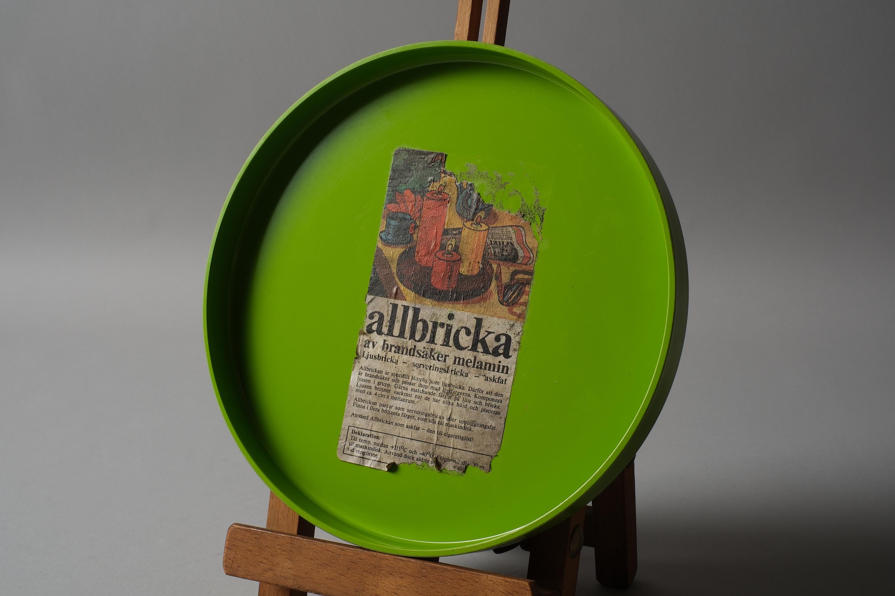 The green melamine tray is new old stock, unused, Made in Sweden on the base.