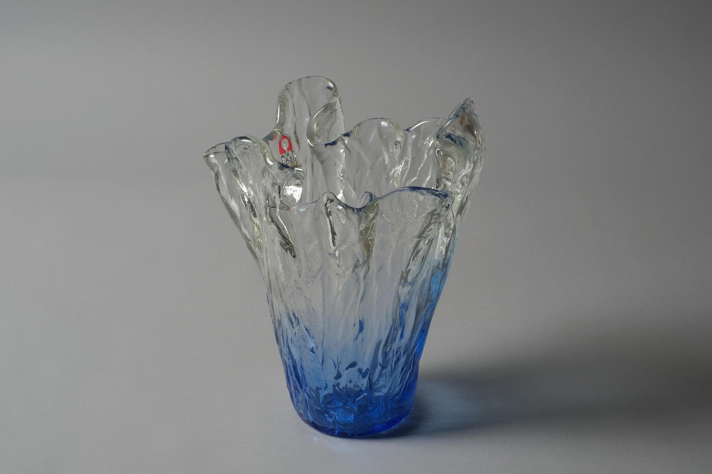 • Material: Free-blown clear and blue glass.