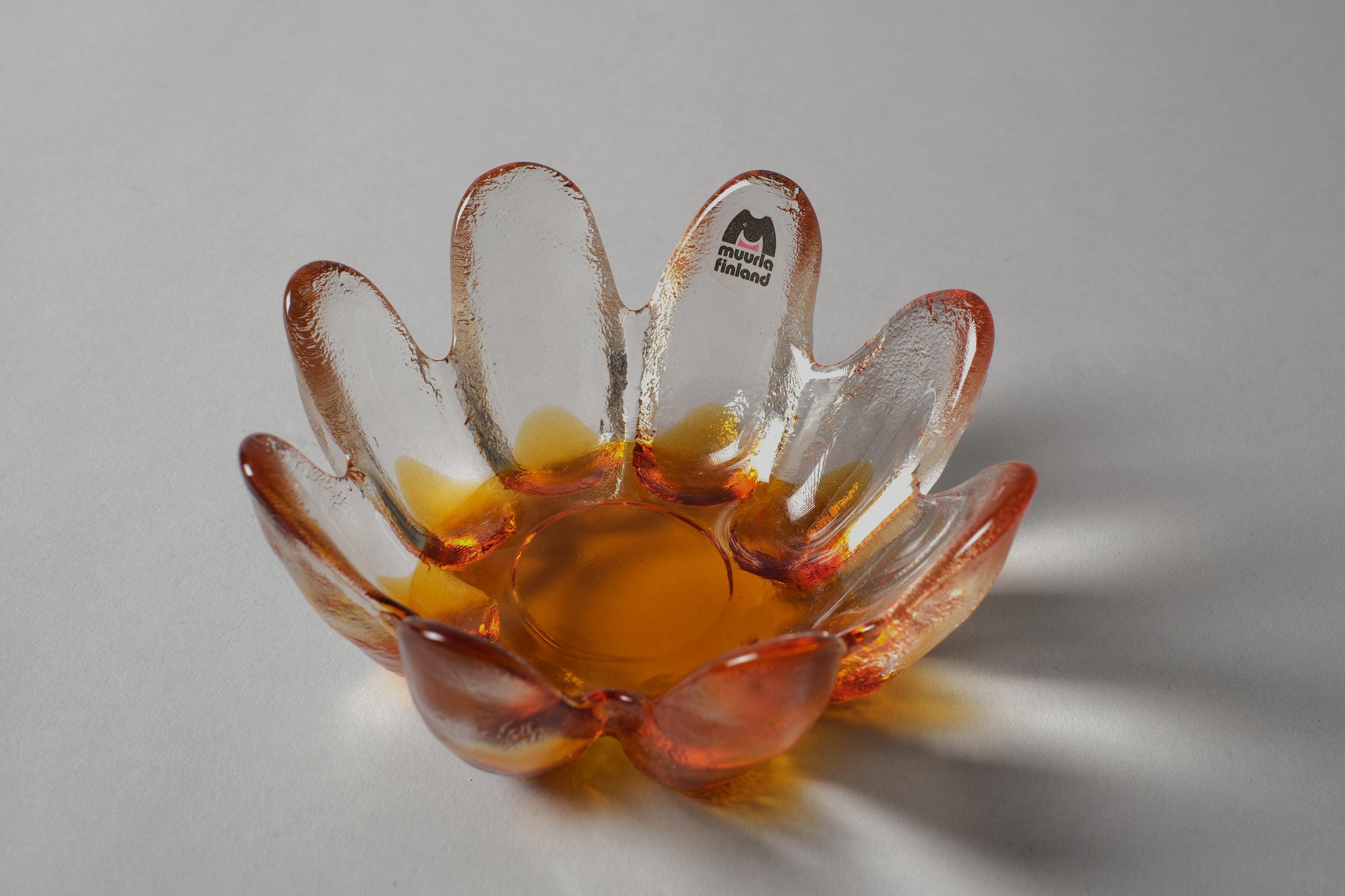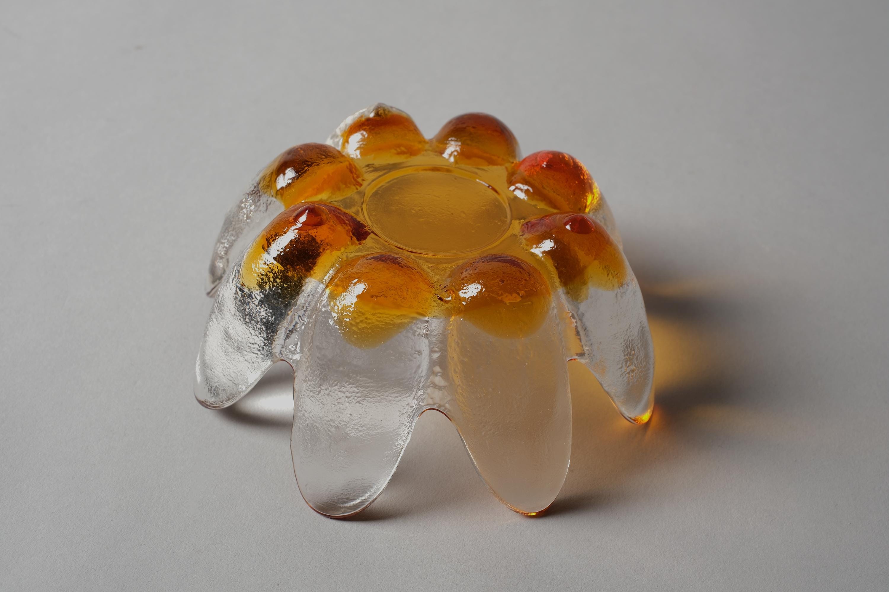 Finland, 1970s. Someone shaped molten glass into flower petals and called it a candle holder. They weren't wrong.