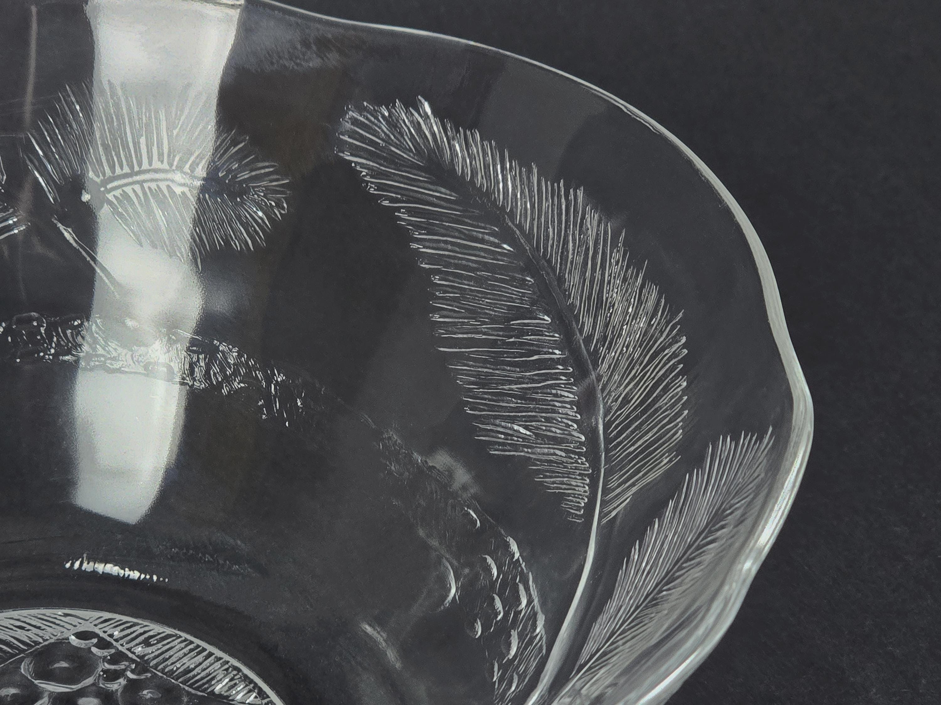 • Material: Clear mould-pressed glass with botanical relief.