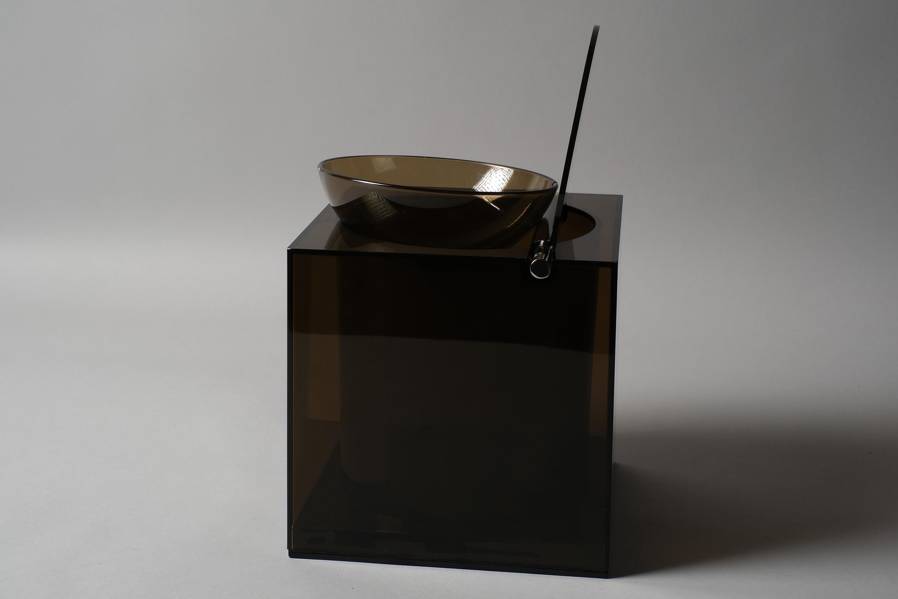 A cube of smoked acrylic. A flip lid. The most serious ice bucket ever made.