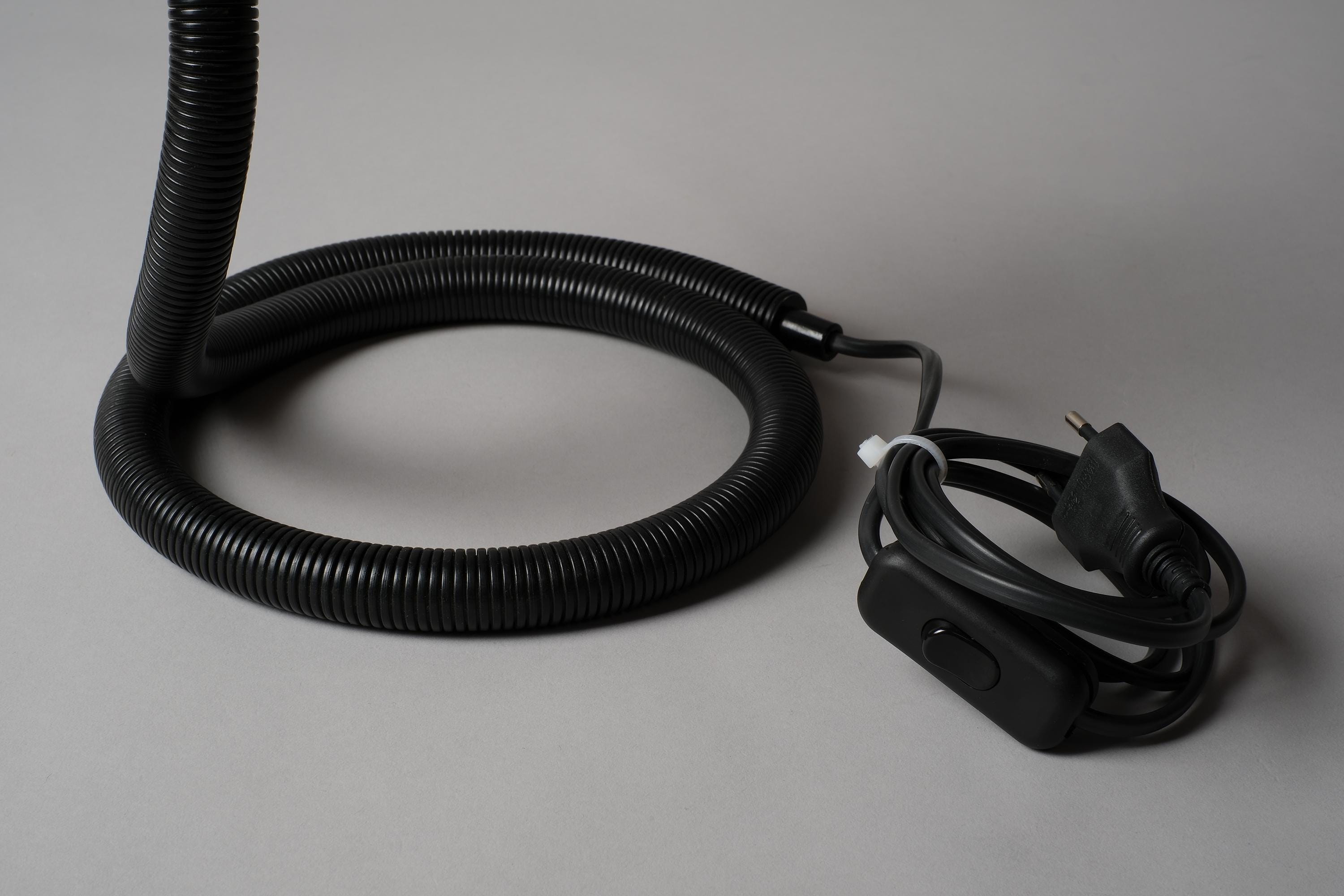 • Material: Yellow lacquered metal dome head, black corrugated PVC gooseneck arm.